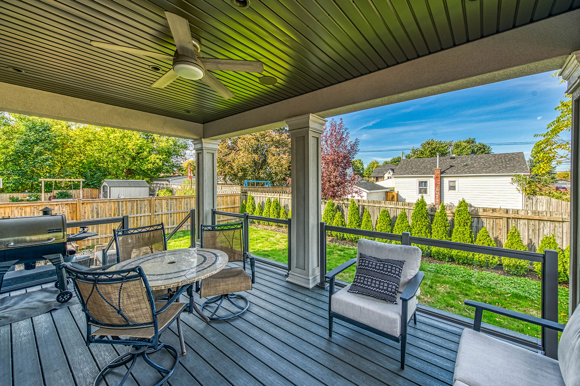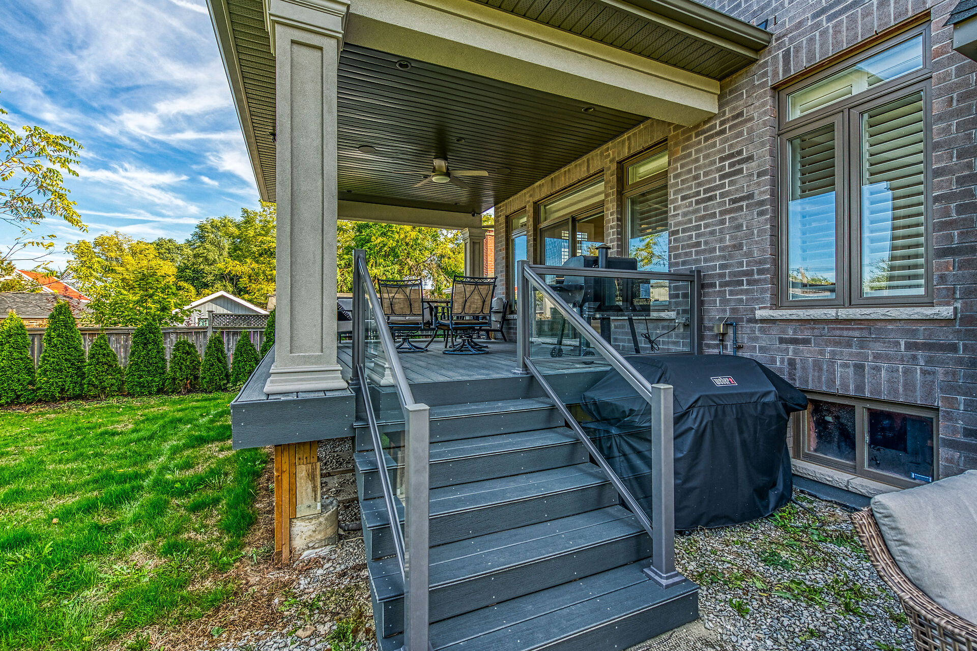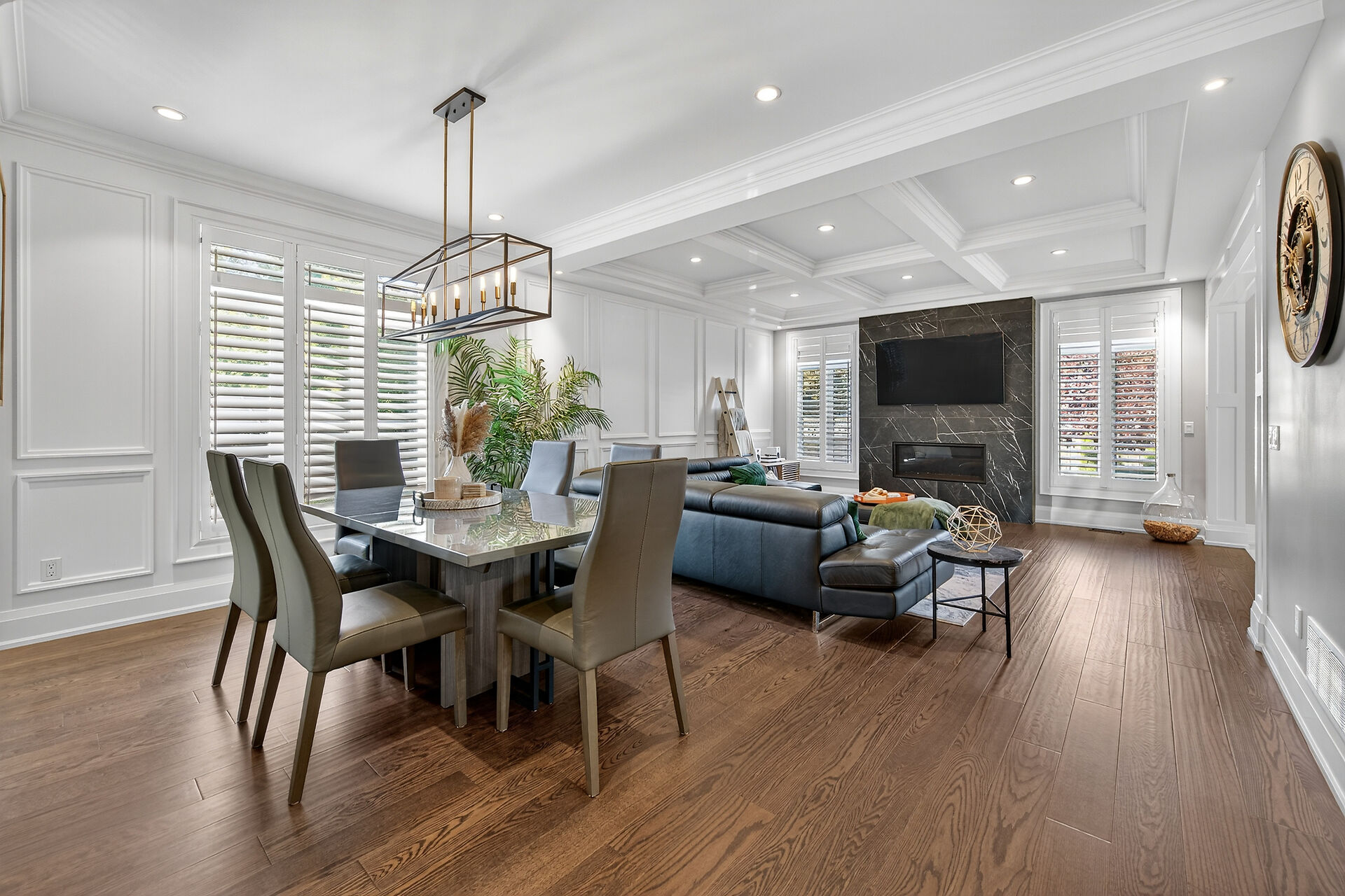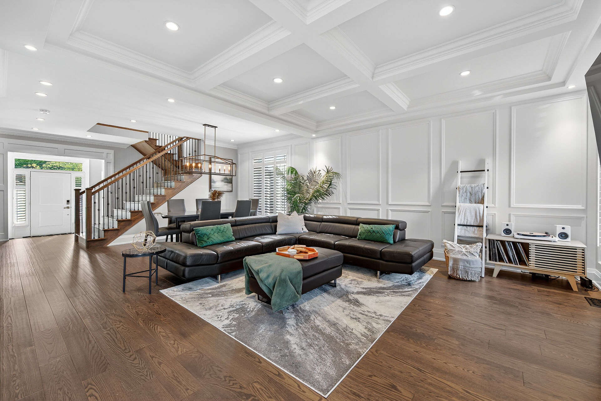 Every inch of this 2,531 sq ft custom-built home has been thoughtfully designed. Featuring 3 spacious bedrooms and 2.5 luxurious baths, this home offers quartz countertops in all bathrooms, kitchen, laundry, and wet bar. Enjoy engineered hardwood throughout, solid wood doors, custom cabinetry in every room, built-in ceiling speakers, wide staircase, and a private side entrance to the insulated, unfinished basement. Coffered ceilings, California shutters, and pot lights elevate every room. The fenced backyard with newly planted cedar trees offers growing privacy. Double garage + 4-car drive. A truly turnkey luxury home!