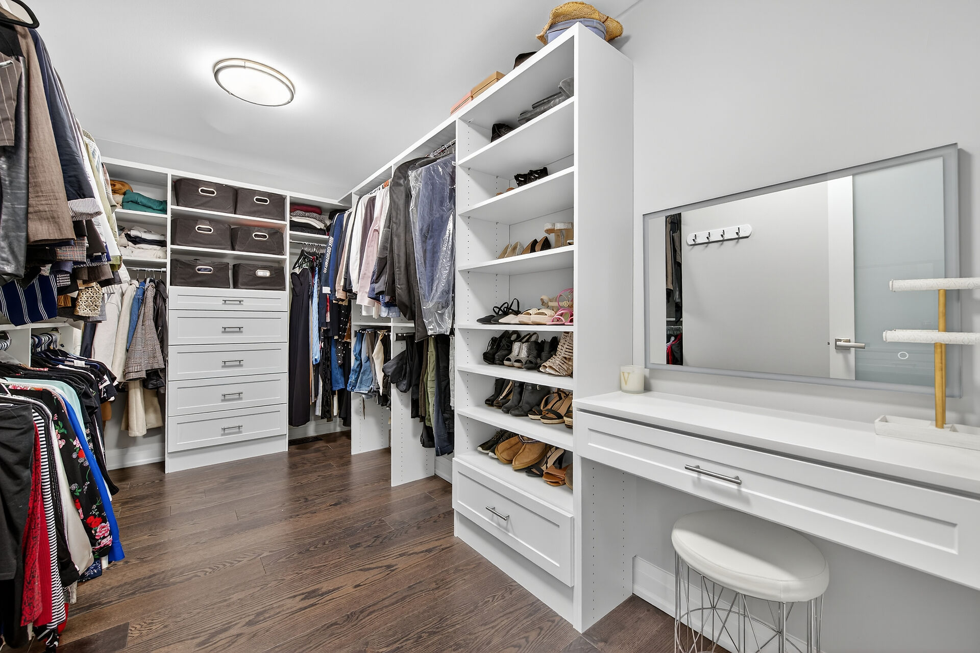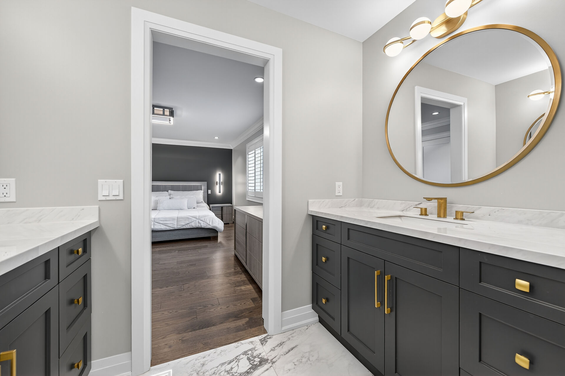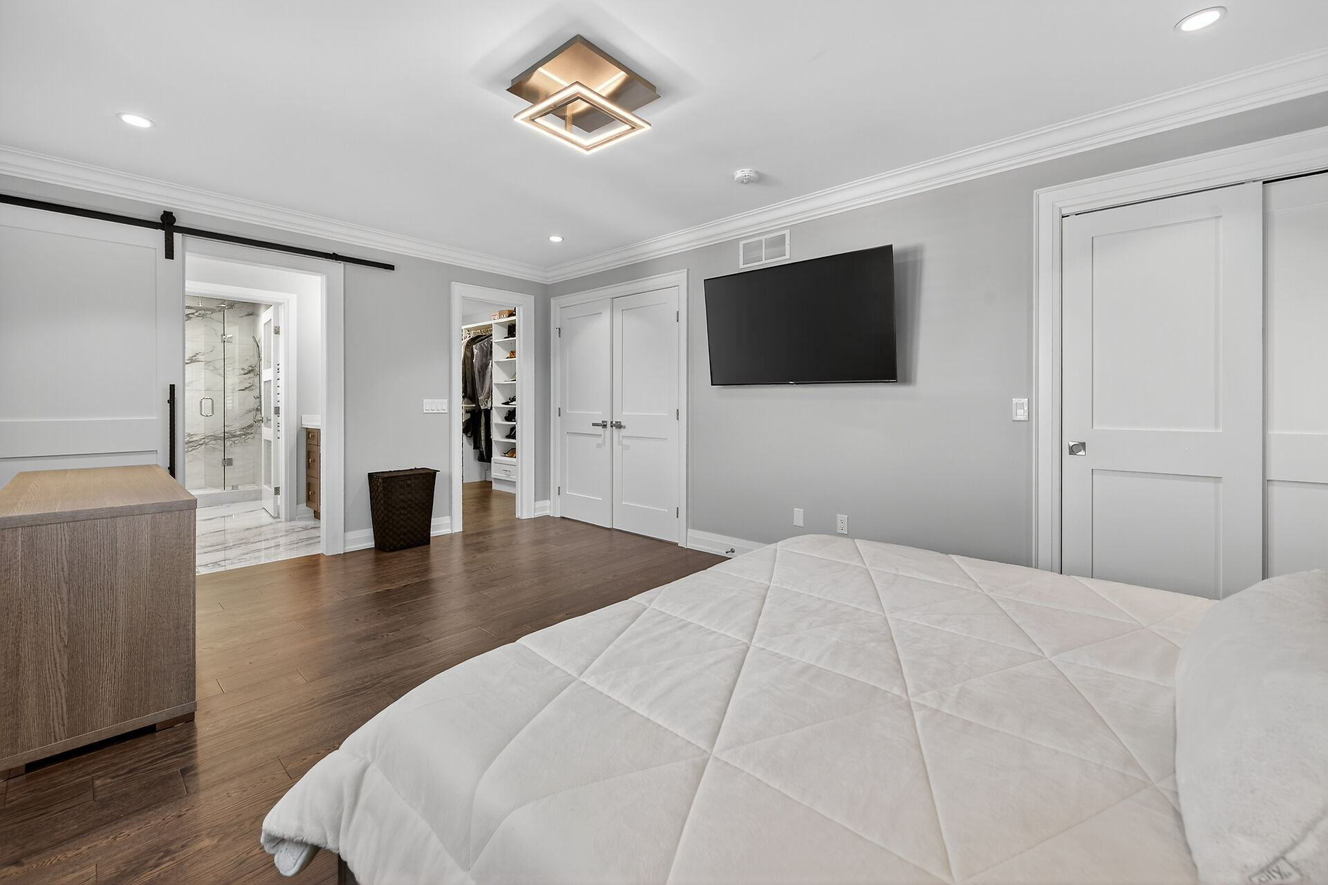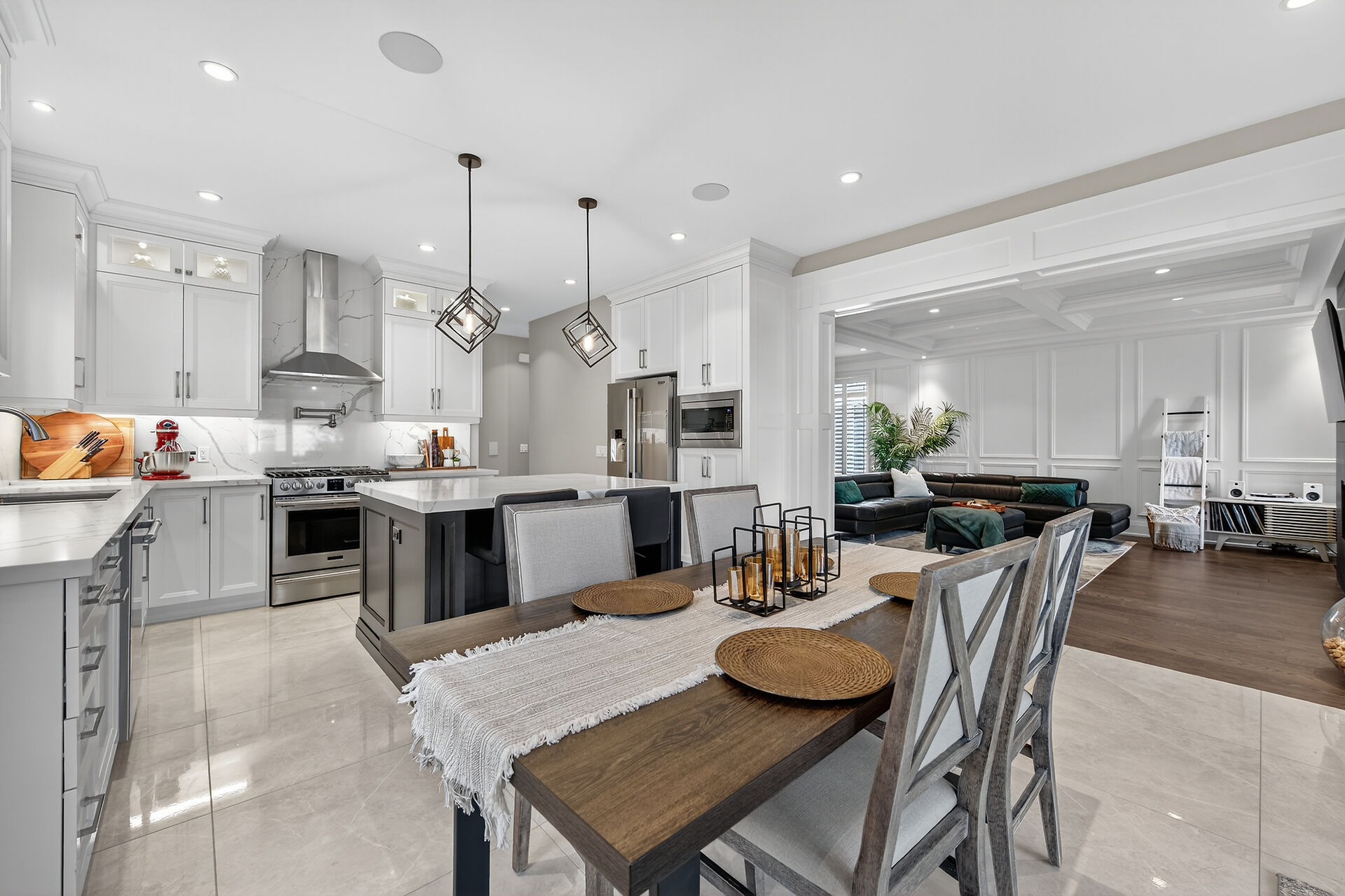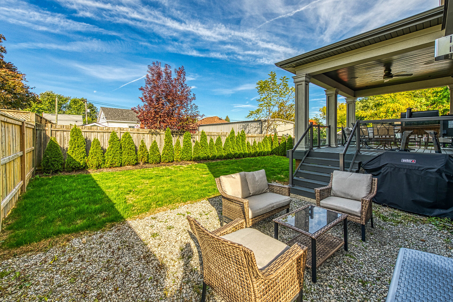 Every inch of this 2,531 sq ft custom-built home has been thoughtfully designed. Featuring 3 spacious bedrooms and 2.5 luxurious baths, this home offers quartz countertops in all bathrooms, kitchen, laundry, and wet bar. Enjoy engineered hardwood throughout, solid wood doors, custom cabinetry in every room, built-in ceiling speakers, wide staircase, and a private side entrance to the insulated, unfinished basement. Coffered ceilings, California shutters, and pot lights elevate every room. The fenced backyard with newly planted cedar trees offers growing privacy. Double garage + 4-car drive. A truly turnkey luxury home!
