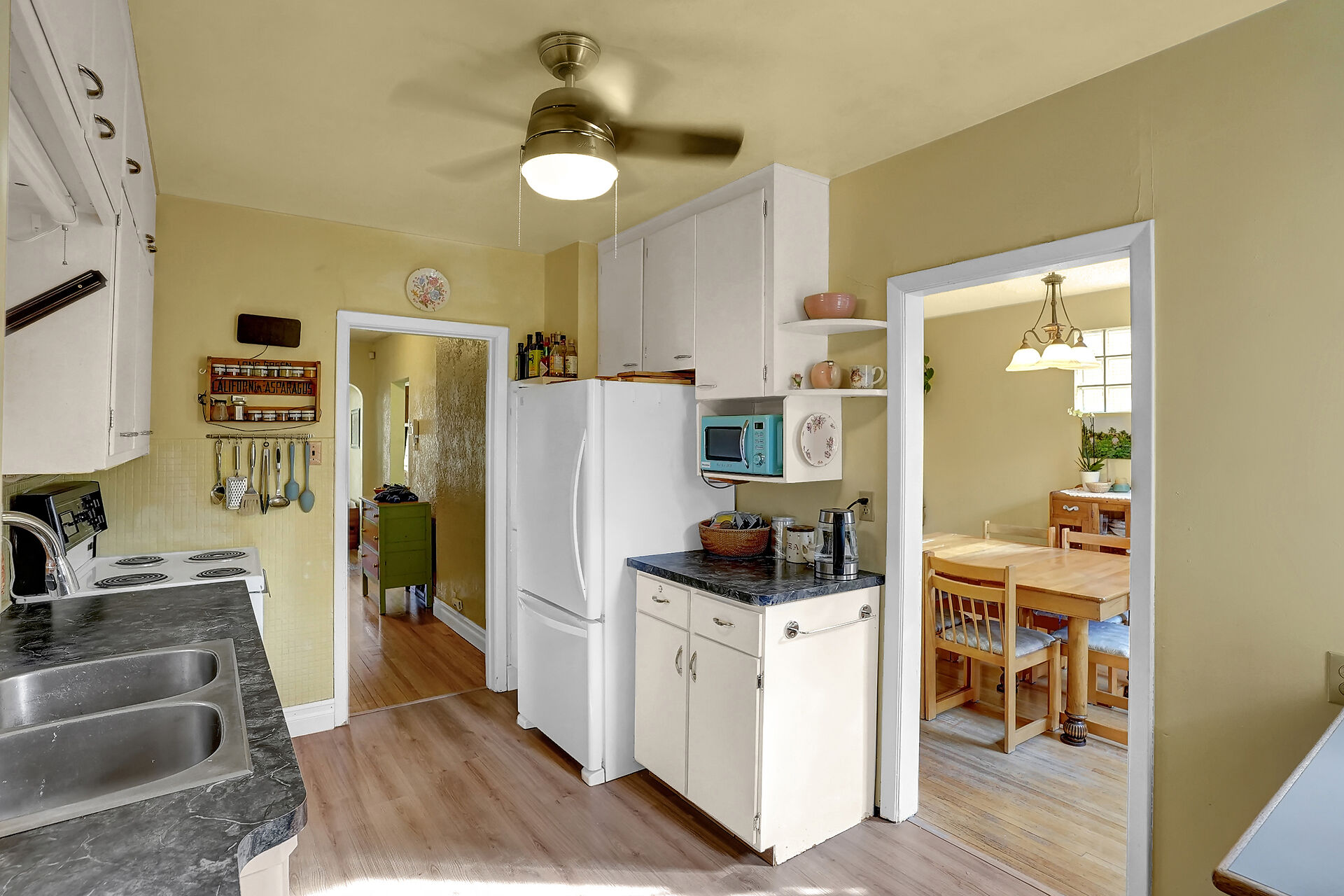 This charming character home, ideally located on one of the most sought-after blocks in the General Hospital area, has seen numerous updates and offers the perfect blend of classic appeal and modern comfort. From the moment you enter, you're greeted by an abundance of natural light and rich hardwood flooring that flows seamlessly through the open living and dining areas. The bright kitchen features white cabinetry, laminate flooring, and access to a cozy back porch—ideal for morning coffee or additional storage. Upstairs, the home offers a spacious primary bedroom, two additional bedrooms, and a beautifully updated four-piece bathroom.