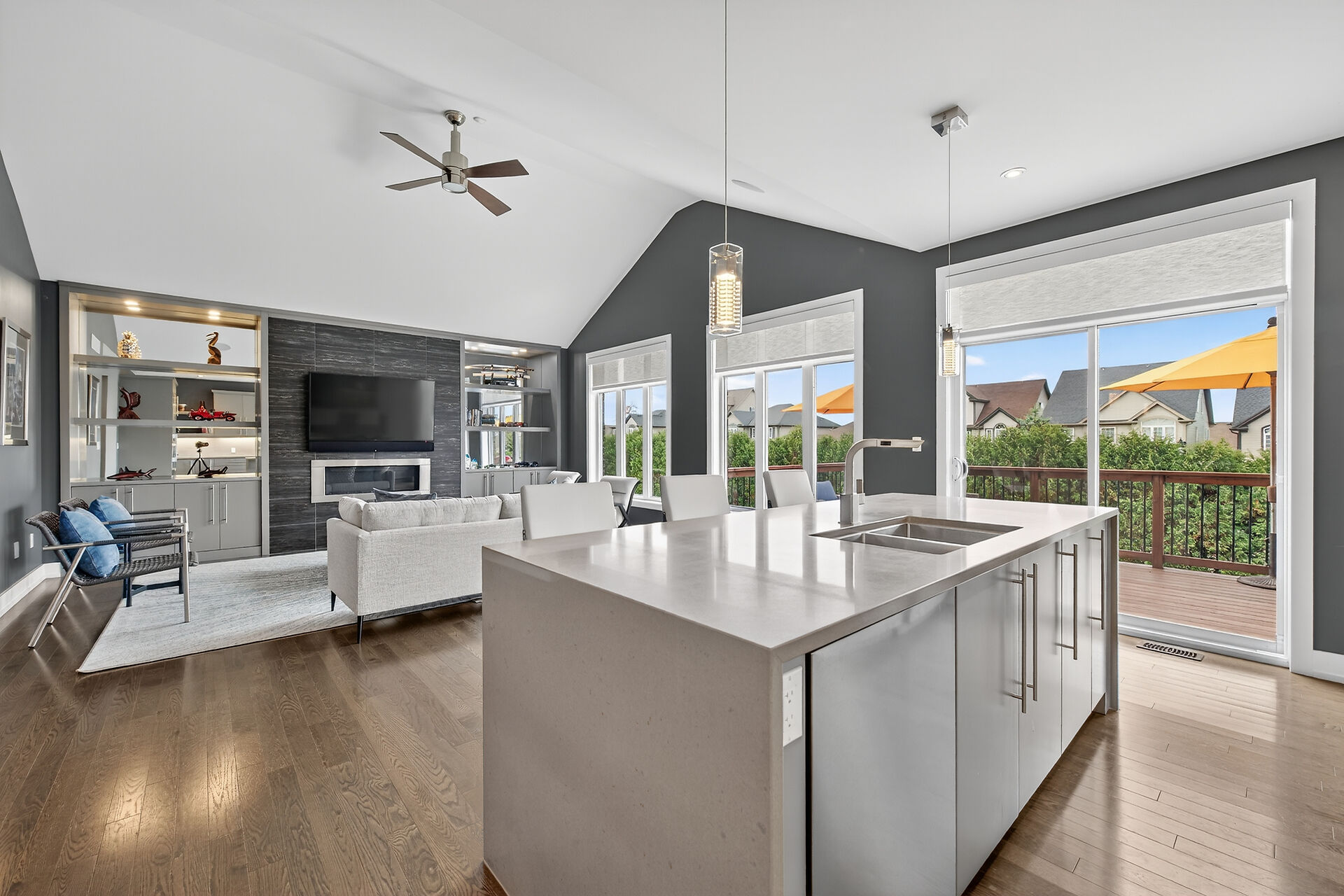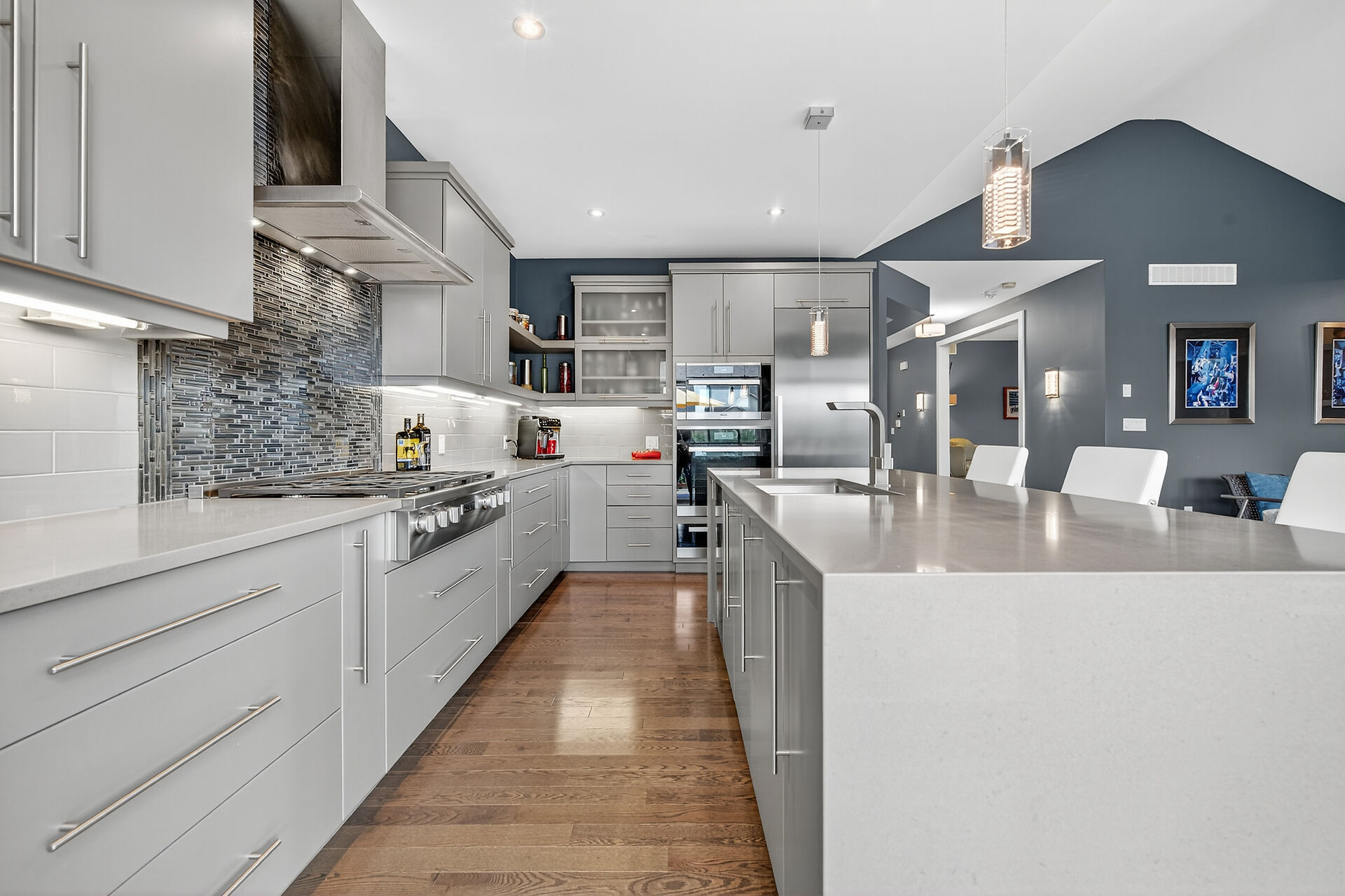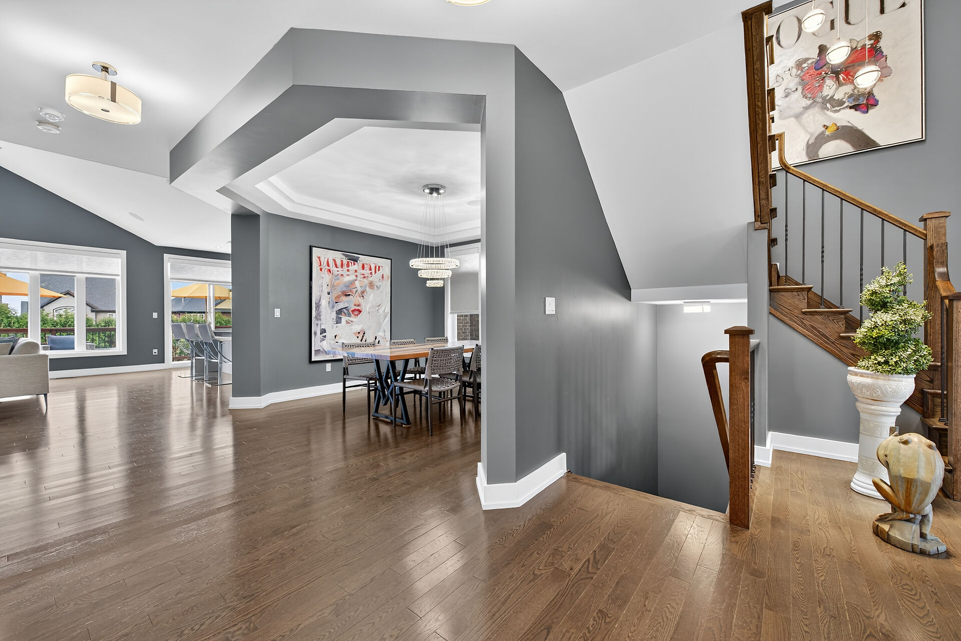 Bristol model by Charleston Homes with $300,000 of upgrades and over 3,300 sq. ft. of finished space. The show-stopping kitchen features upgraded Barzotti cabinetry, Silestone Counters, a double waterfall island and premium Miele appliances. The open-concept great room offers a cathedral ceiling, custom built-ins, linear gas fireplace and integrated surround sound system. The main level is complete with an office, dining room, powder room and mudroom with laundry. The primary retreat includes an oversize walk-in closet and 5 pc ensuite. The second bedroom also features a 4 pc ensuite. Fully finished walkout basement offers a second great room, an additional bedroom, wet bar and a 3 piece bath.