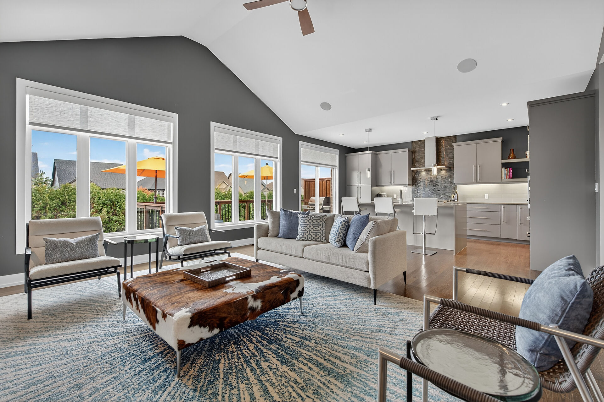 Bristol model by Charleston Homes with $300,000 of upgrades and over 3,300 sq. ft. of finished space. The show-stopping kitchen features upgraded Barzotti cabinetry, Silestone Counters, a double waterfall island and premium Miele appliances. The open-concept great room offers a cathedral ceiling, custom built-ins, linear gas fireplace and integrated surround sound system. The main level is complete with an office, dining room, powder room and mudroom with laundry. The primary retreat includes an oversize walk-in closet and 5 pc ensuite. The second bedroom also features a 4 pc ensuite. Fully finished walkout basement offers a second great room, an additional bedroom, wet bar and a 3 piece bath.