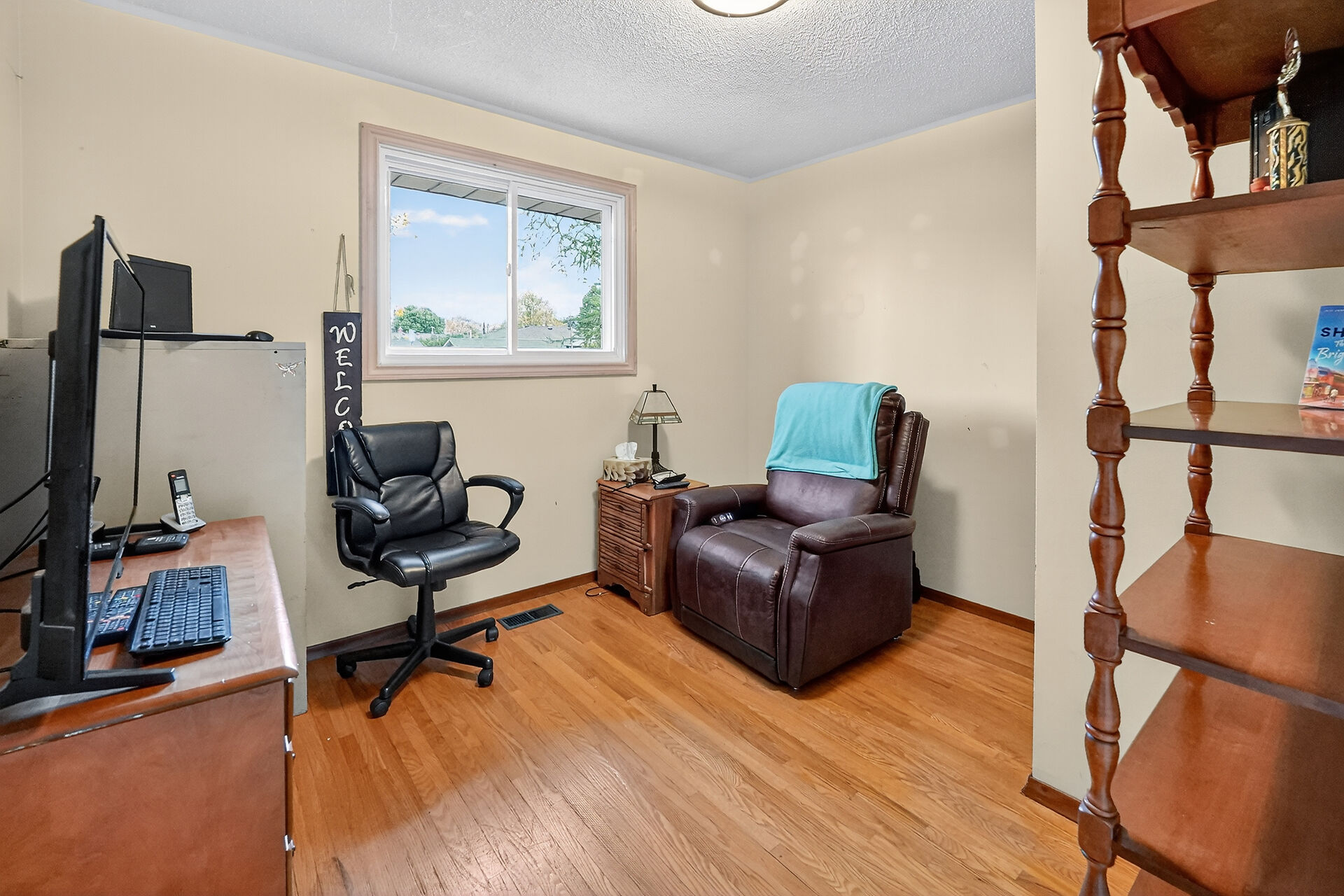 Pride of ownership shines in this beautifully maintained home! The updated kitchen boasts ample cabinetry, a central island, and elegant granite countertops, flowing into a bright open-concept living room with gleaming hardwood floors. Enjoy three spacious bedrooms and a stylish 4-piece bath. The lower level offers a large family room with a cozy gas fireplace, a versatile flex space, fourth bedroom, and laundry area. Outside, the private fenced yard features a patio and storage shed—perfect for relaxing or entertaining. This move-in ready home combines space, style, and comfort!