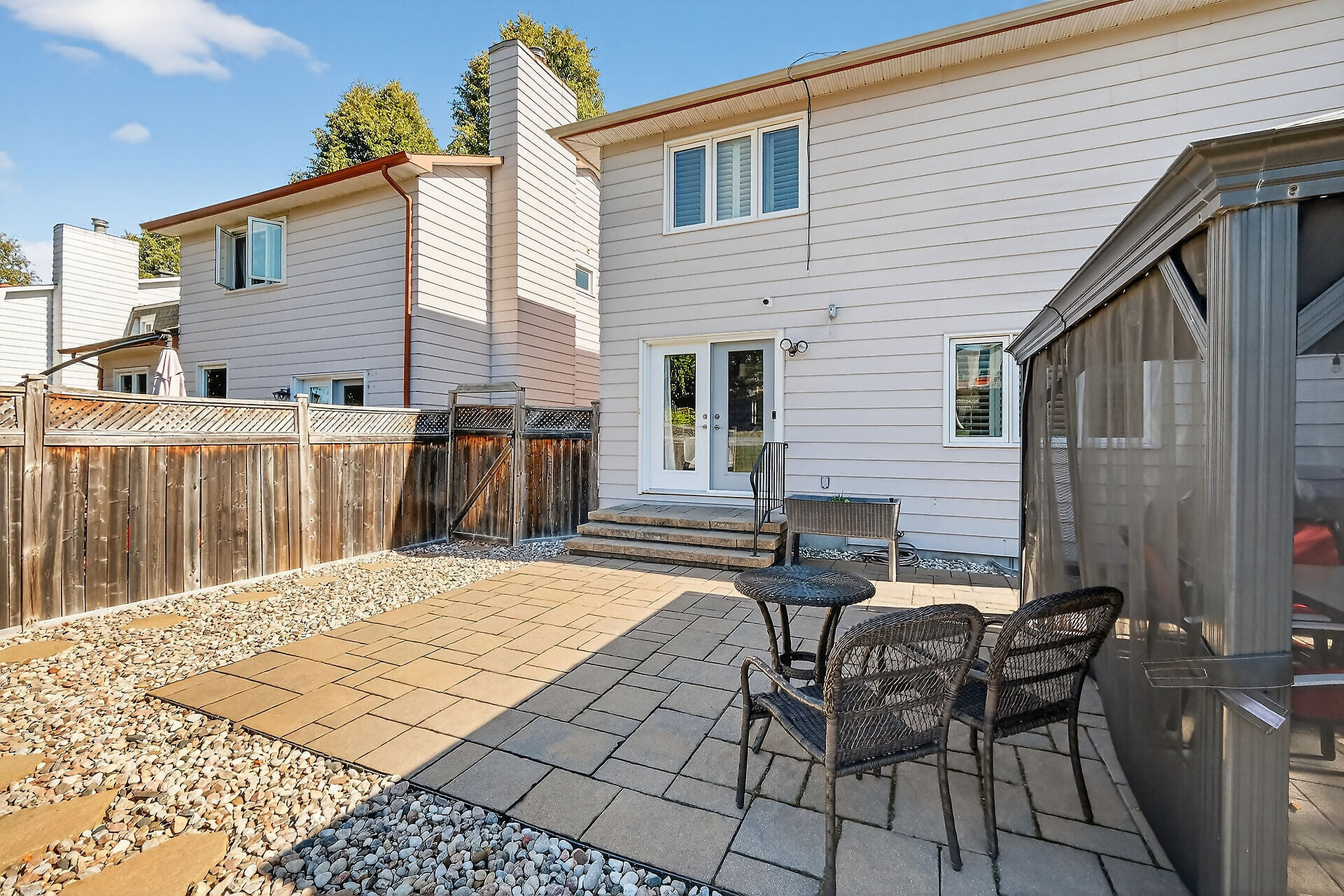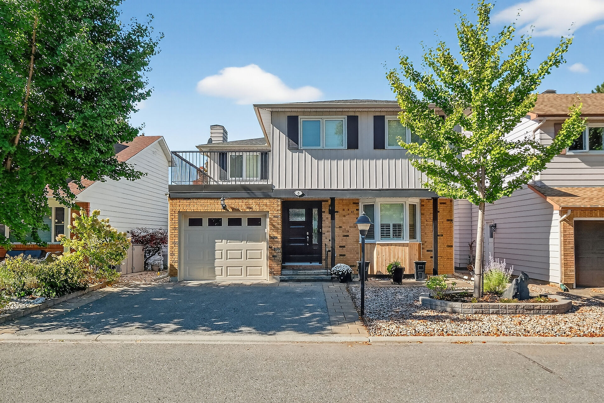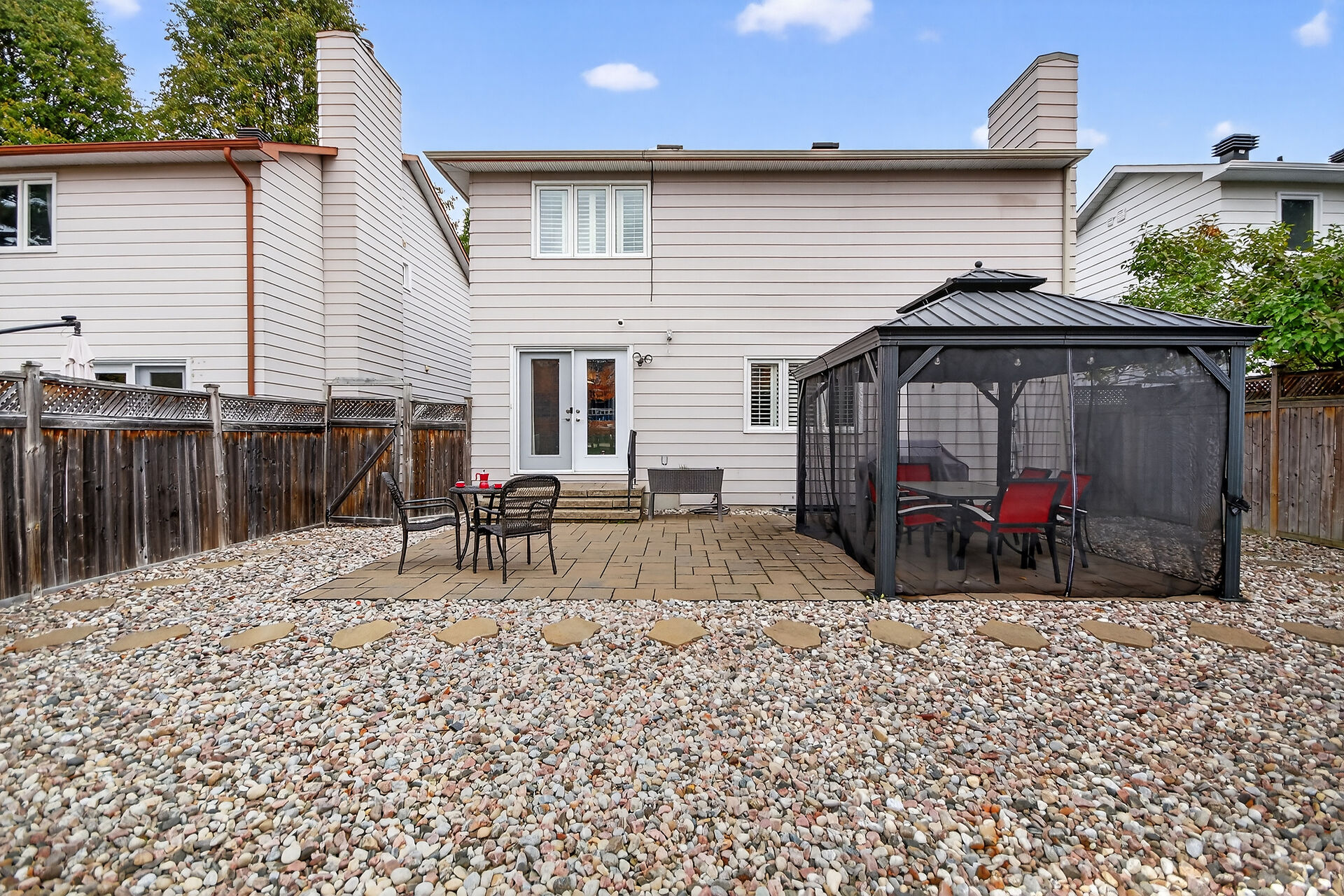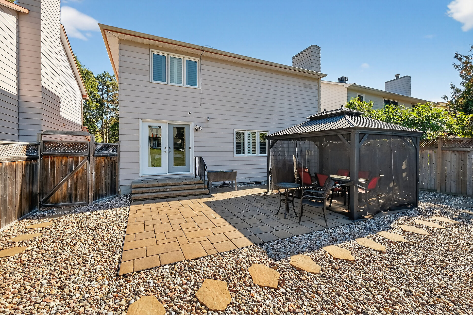 Enjoy an unparalleled location with no rear neighbours, offering both privacy & convenience. Close to Mooney's Bay, Hog's Back Falls, & Rideau Canal. The main level has pristine Bird's Eye maple flrs, custom cherry wood cabinetry in the kitchen, maple banister, & gas fireplace accented w Carrara marble. The dining room opens directly to a landscaped / private backyard, w custom Shed & gazebo. The 2nd level has maple floors,3 bedrooms, a 4pce bath and 4 pce ensuite. A large rooftop patio to relax and unwind. The lower level features an updated recreation rm & den + storage/laundry room .Welcome Home where comfort, sophistication, & location come together beautifully