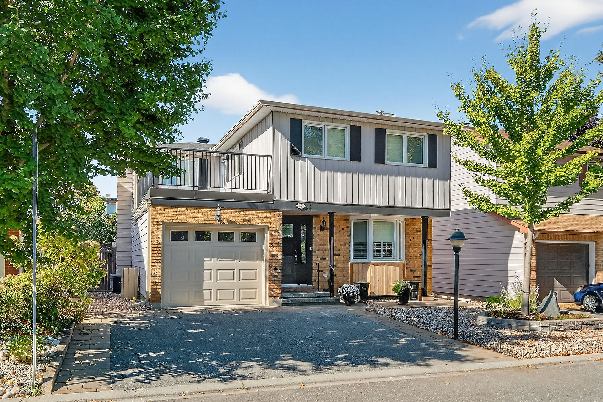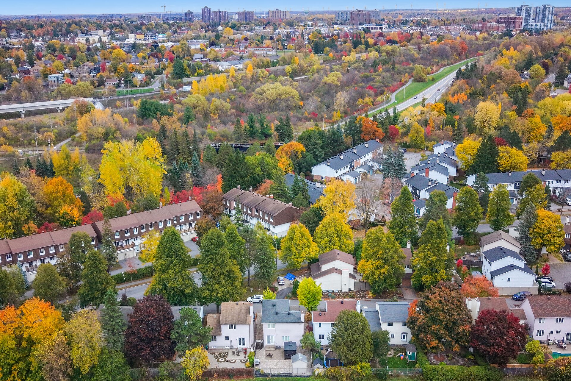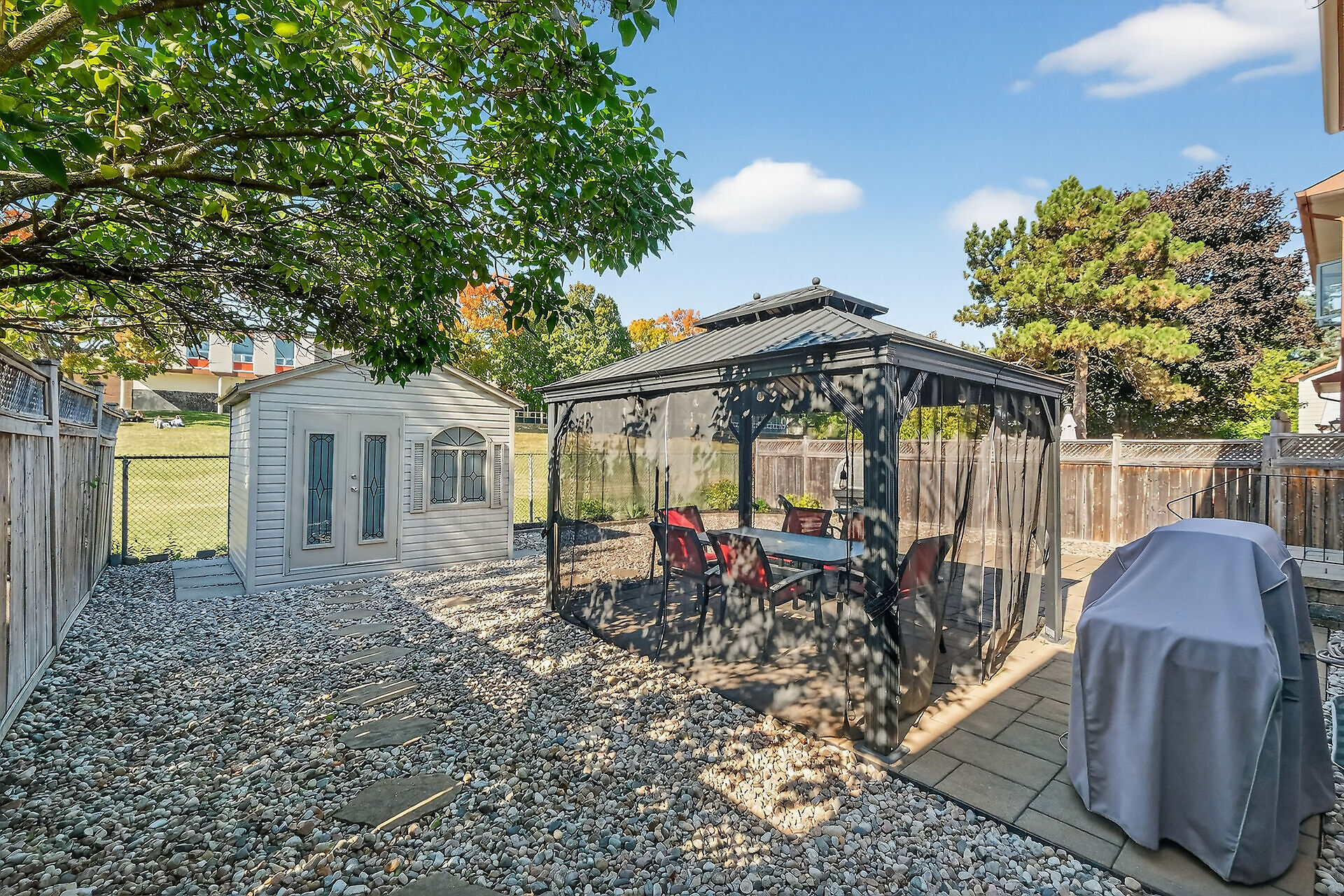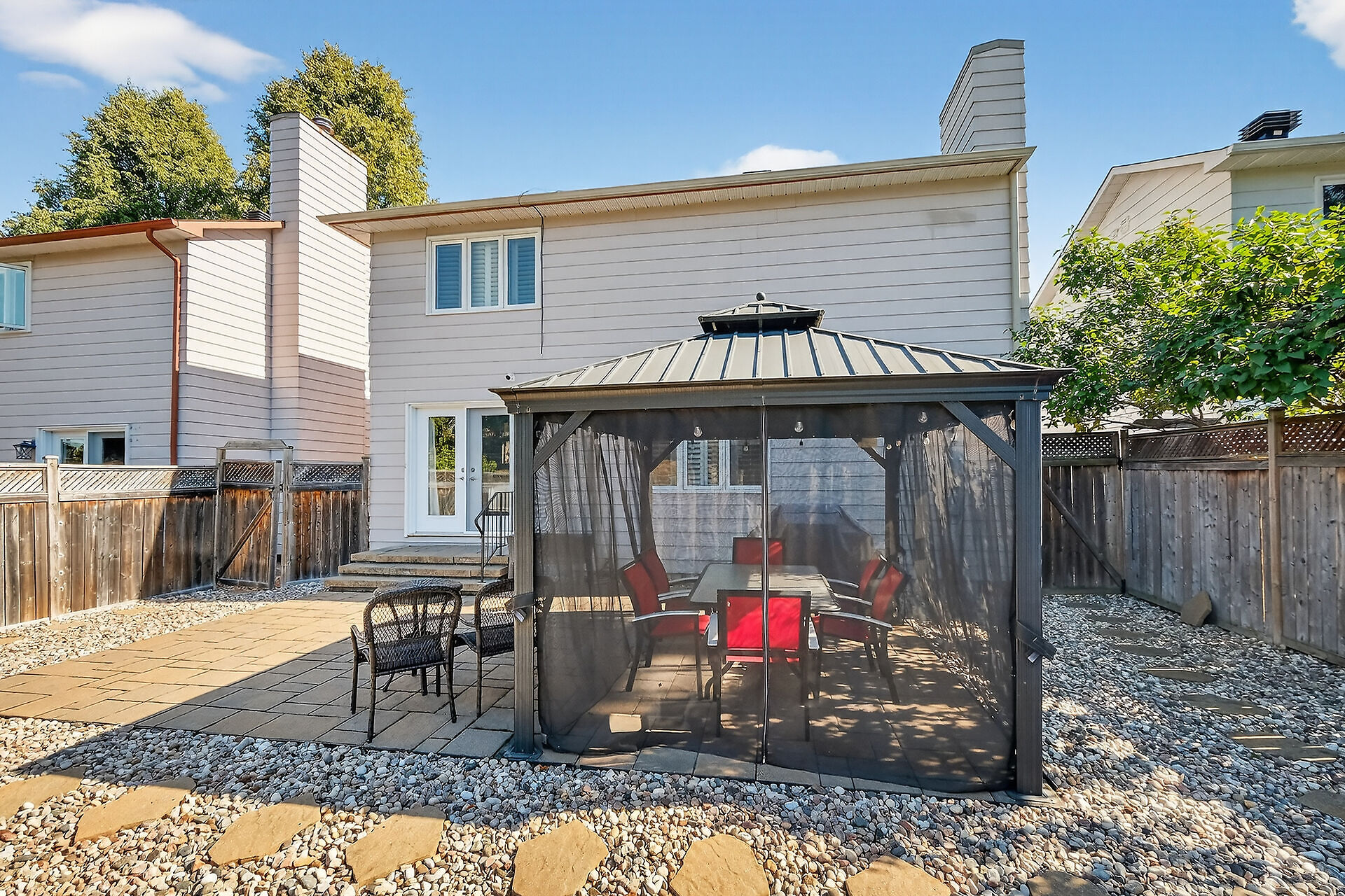 Enjoy an unparalleled location with no rear neighbours, offering both privacy & convenience. Close to Mooney's Bay, Hog's Back Falls, & Rideau Canal. The main level has pristine Bird's Eye maple flrs, custom cherry wood cabinetry in the kitchen, maple banister, & gas fireplace accented w Carrara marble. The dining room opens directly to a landscaped / private backyard, w custom Shed & gazebo. The 2nd level has maple floors,3 bedrooms, a 4pce bath and 4 pce ensuite. A large rooftop patio to relax and unwind. The lower level features an updated recreation rm & den + storage/laundry room .Welcome Home where comfort, sophistication, & location come together beautifully