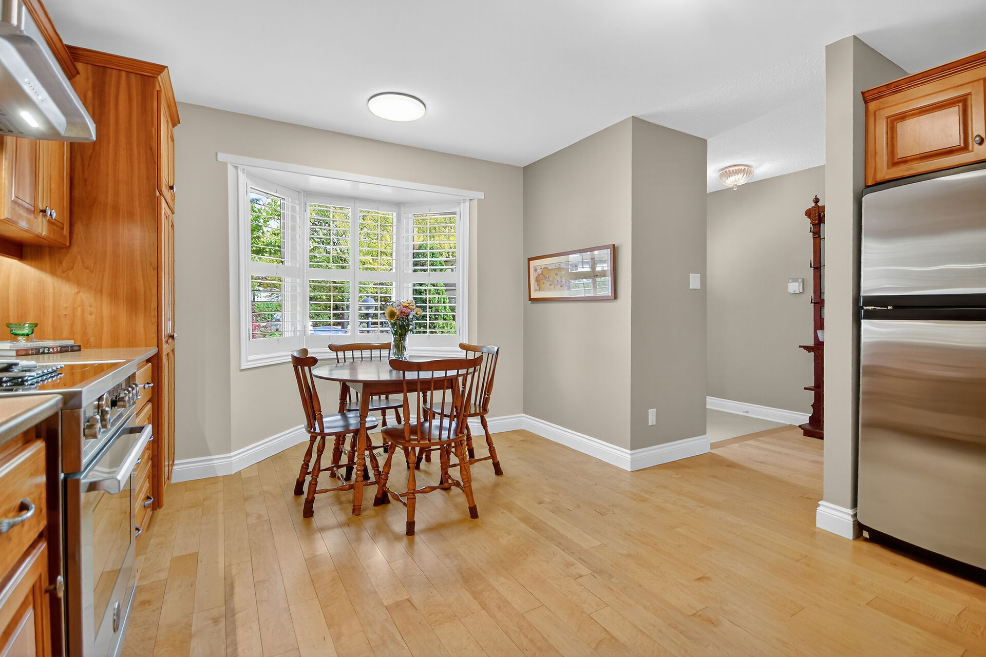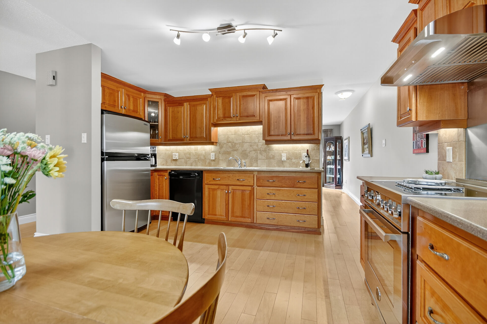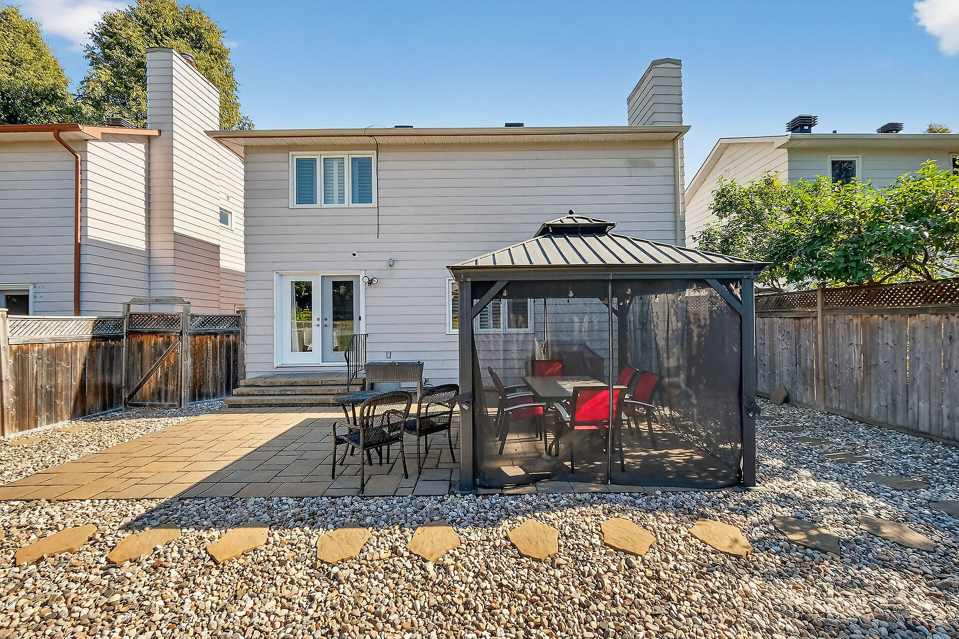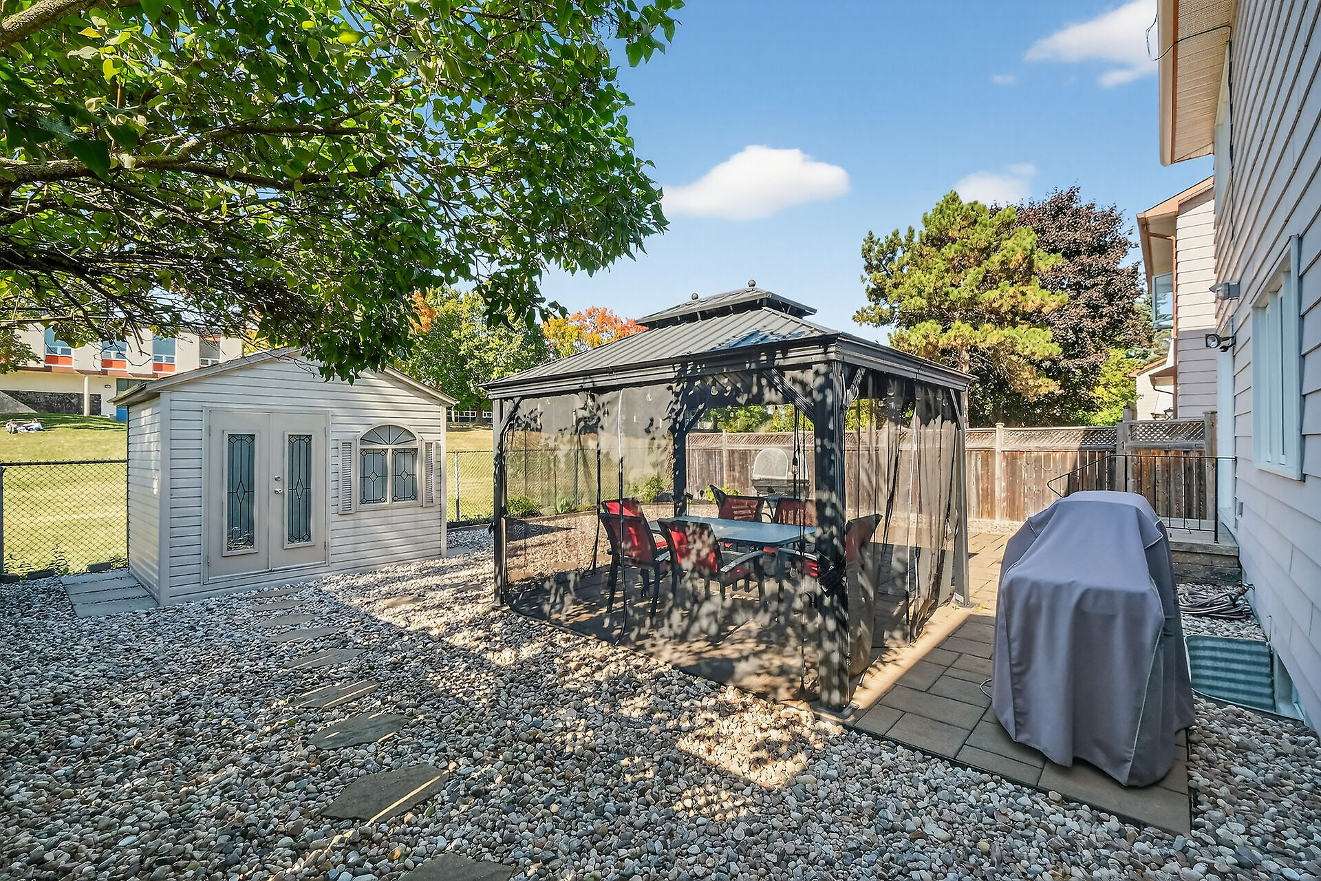 Enjoy an unparalleled location with no rear neighbours, offering both privacy & convenience. Close to Mooney's Bay, Hog's Back Falls, & Rideau Canal. The main level has pristine Bird's Eye maple flrs, custom cherry wood cabinetry in the kitchen, maple banister, & gas fireplace accented w Carrara marble. The dining room opens directly to a landscaped / private backyard, w custom Shed & gazebo. The 2nd level has maple floors,3 bedrooms, a 4pce bath and 4 pce ensuite. A large rooftop patio to relax and unwind. The lower level features an updated recreation rm & den + storage/laundry room .Welcome Home where comfort, sophistication, & location come together beautifully
