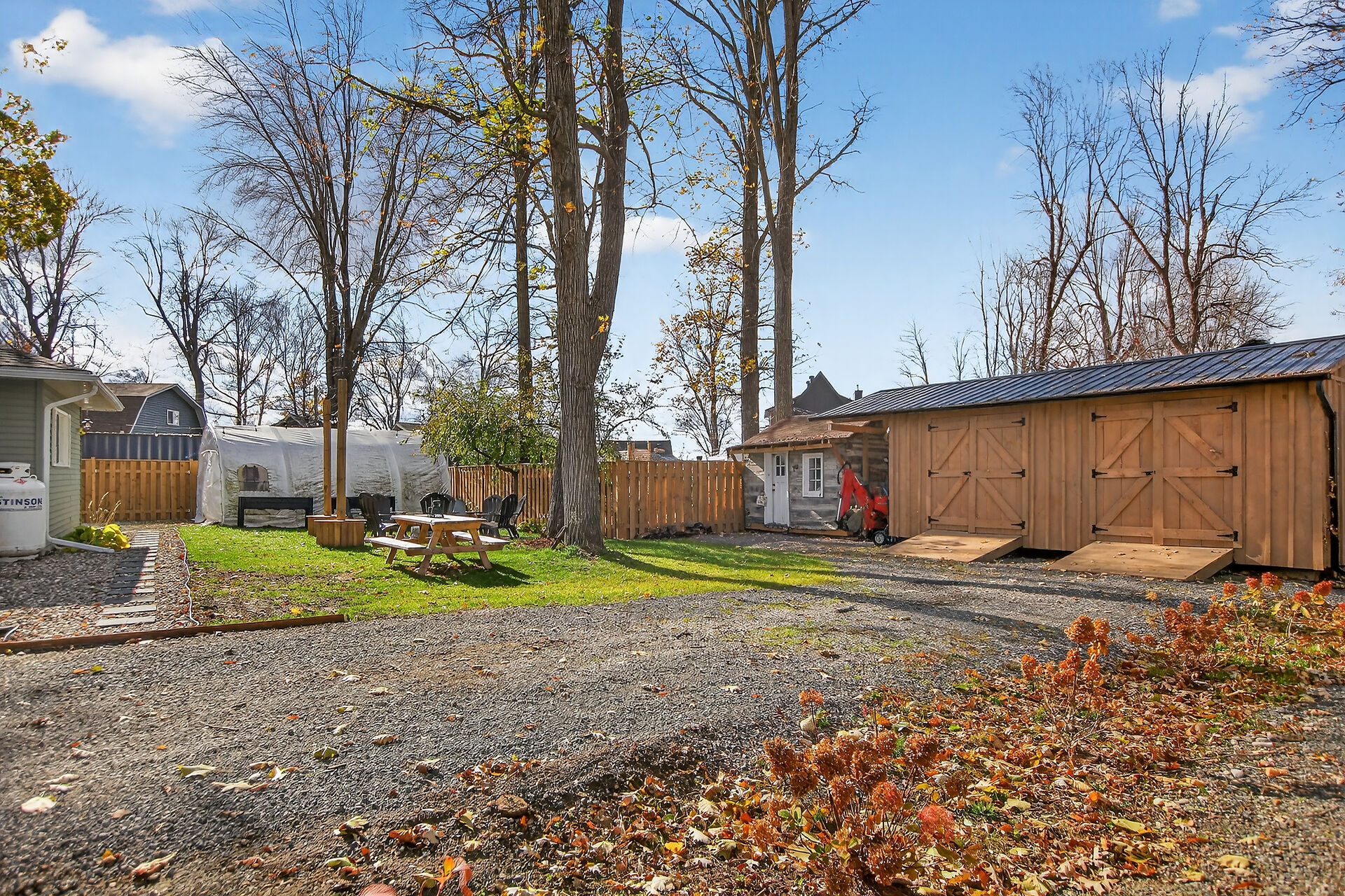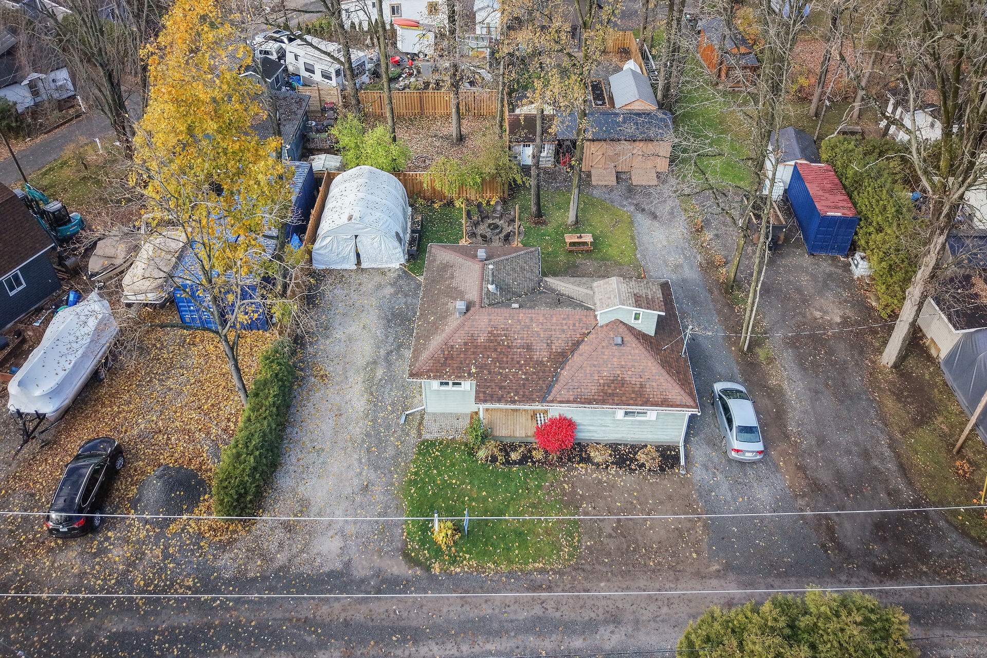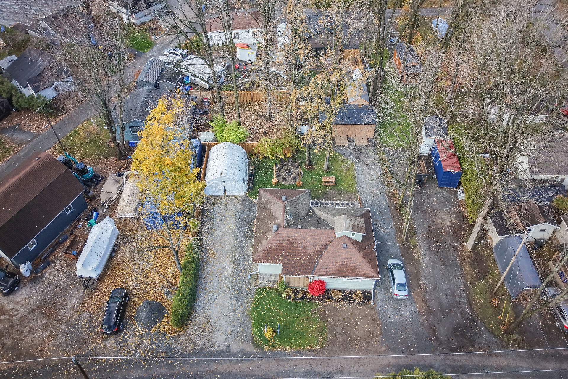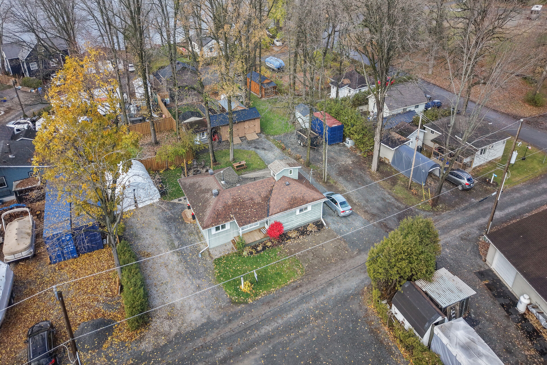 Welcome to this delightful three-bedroom home ideally located directly across the road from beautiful Mississippi Lake. Offering a blend of comfort and convenience, this well-maintained home is just minutes from town amenities while providing the serenity of lakeside living. The interior features a warm and inviting atmosphere with bright, open concept living, a large foyer off the patio door, generous sized bedrooms and a convenient 2 piece ensuite with laundry off the primary bedroom. Outdoors, the private backyard creates a welcoming retreat, complete with a fire pit and cozy ambience - perfect for relaxing or entertaining.Three versatile outbuildings; a nearly new Amish