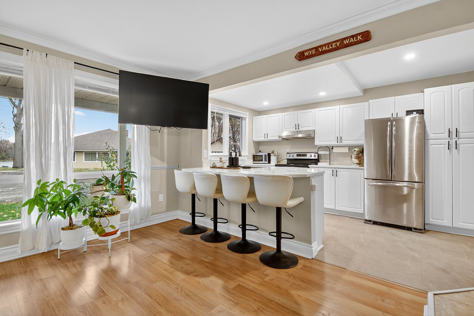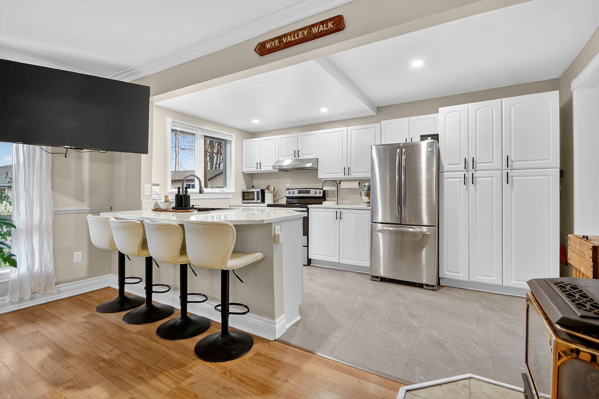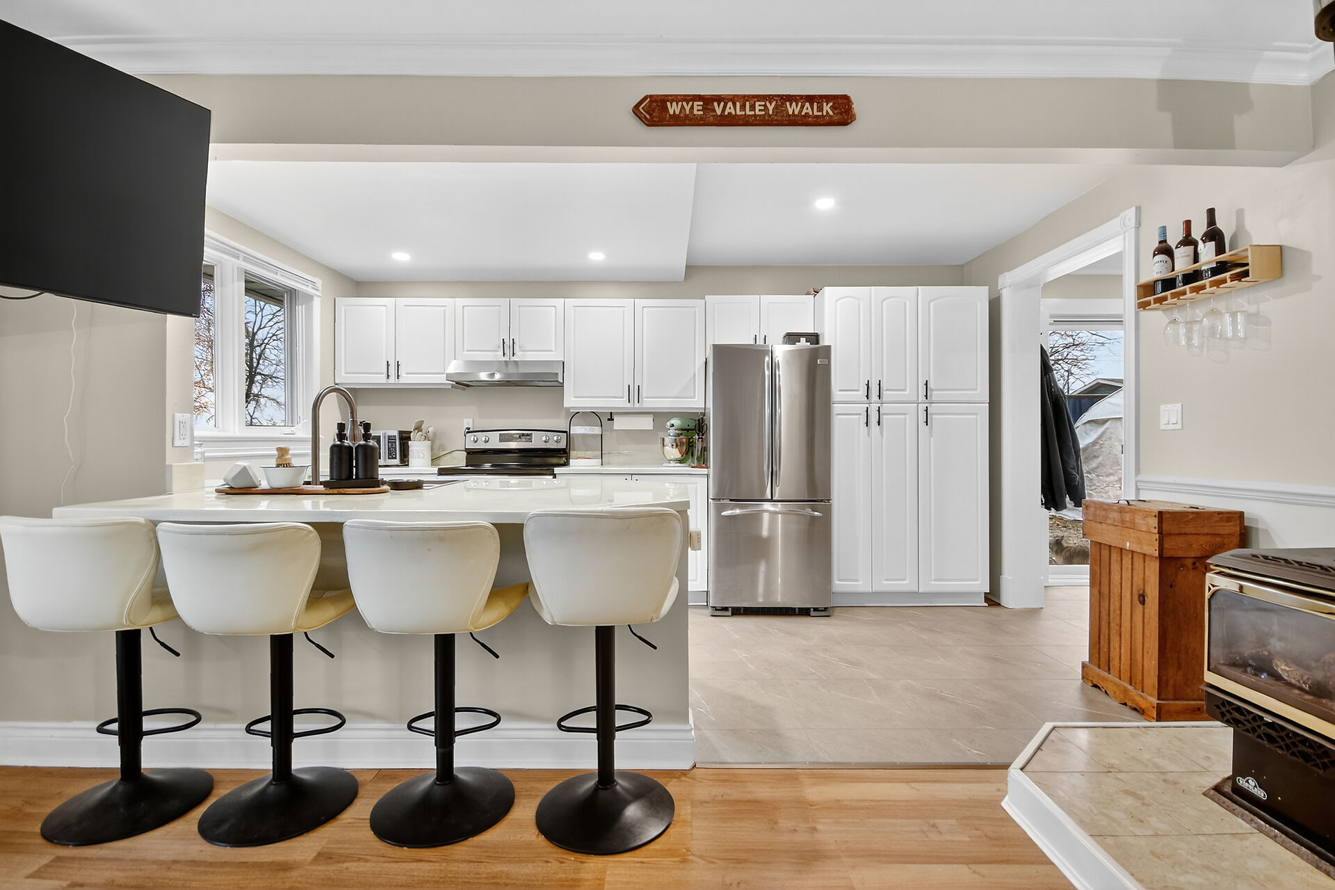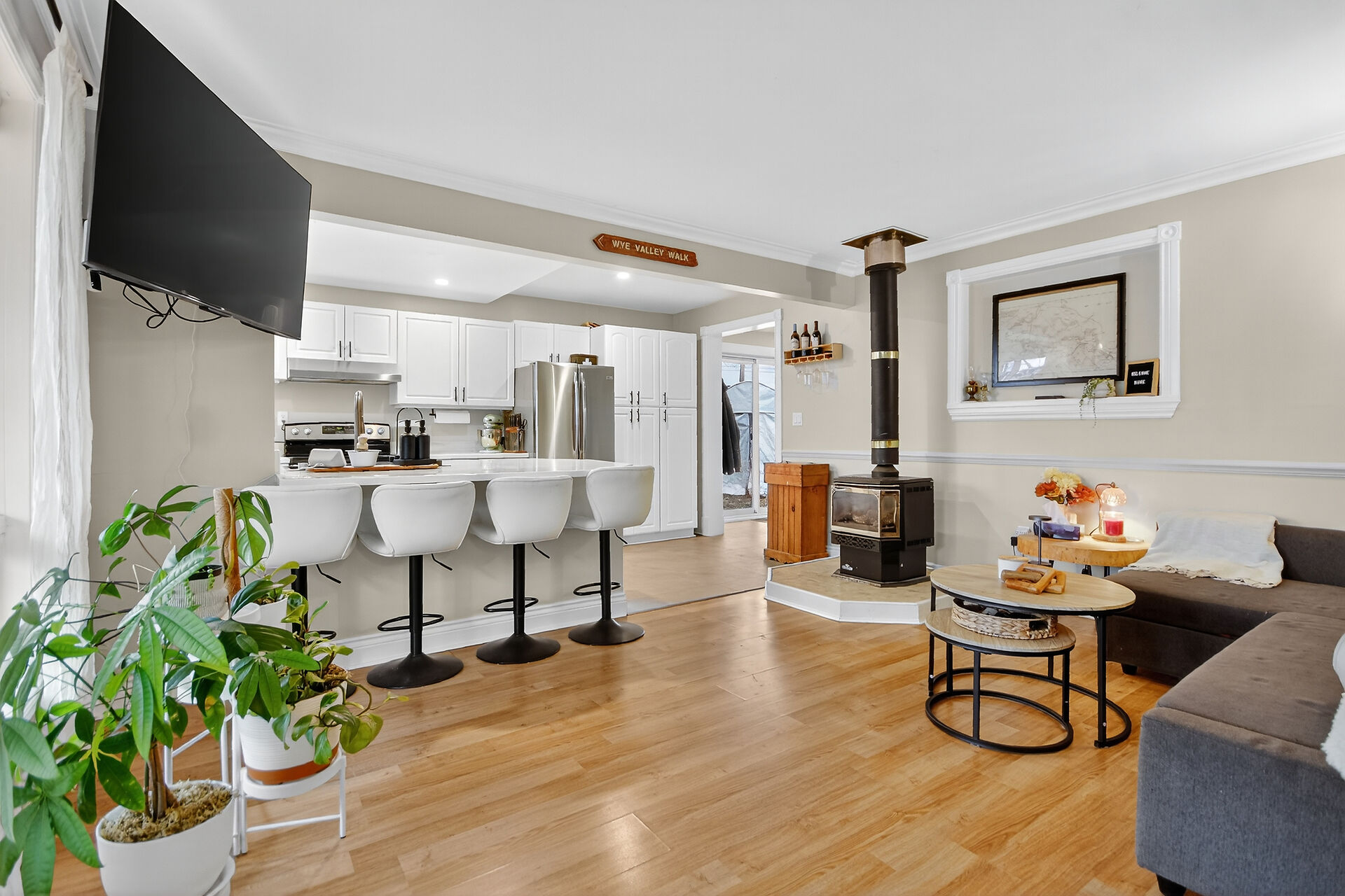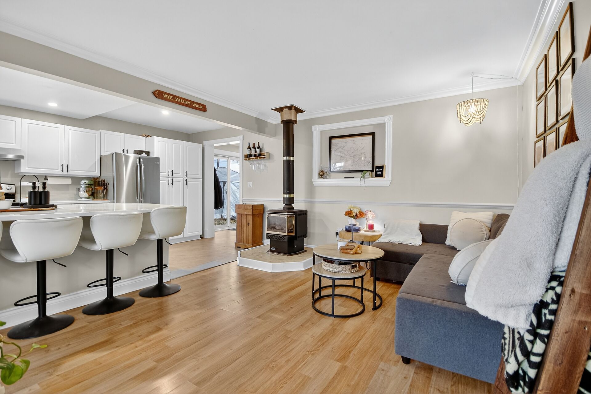 Welcome to this delightful three-bedroom home ideally located directly across the road from beautiful Mississippi Lake. Offering a blend of comfort and convenience, this well-maintained home is just minutes from town amenities while providing the serenity of lakeside living. The interior features a warm and inviting atmosphere with bright, open concept living, a large foyer off the patio door, generous sized bedrooms and a convenient 2 piece ensuite with laundry off the primary bedroom. Outdoors, the private backyard creates a welcoming retreat, complete with a fire pit and cozy ambience - perfect for relaxing or entertaining.Three versatile outbuildings; a nearly new Amish