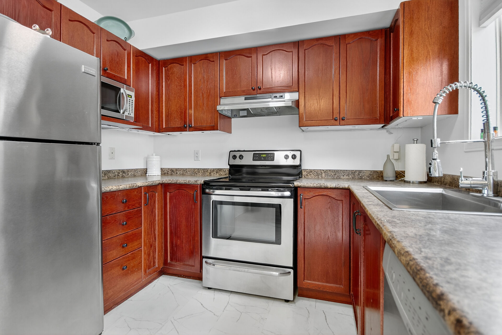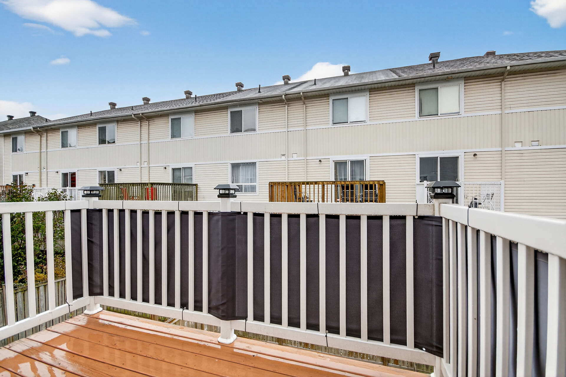 114 Wharhol Private. Convenient Bells Corners location near amenities nearby and access to both 416 and 417. Close to DND headquarters on Moodie Drive and LRT. 3 storey townhome is nicely appointed with hardwood flooring in the living and dining rooms. Eat-in kitchen with patio door to rear BBQ deck. Convenient main floor laundry. 2 exceptionally large bedrooms. Luxury bathroom with a soaker tub and separate shower. Family room located in lower level with walk-out patio door to rear yard. West facing back yard with afternoon sun. Roof shingles 2019, central air 2021, NEW furnace 2026, laneway 2021. Some photos have been virtually staged. $66/month private road fee. Some photos have been virtually staged.