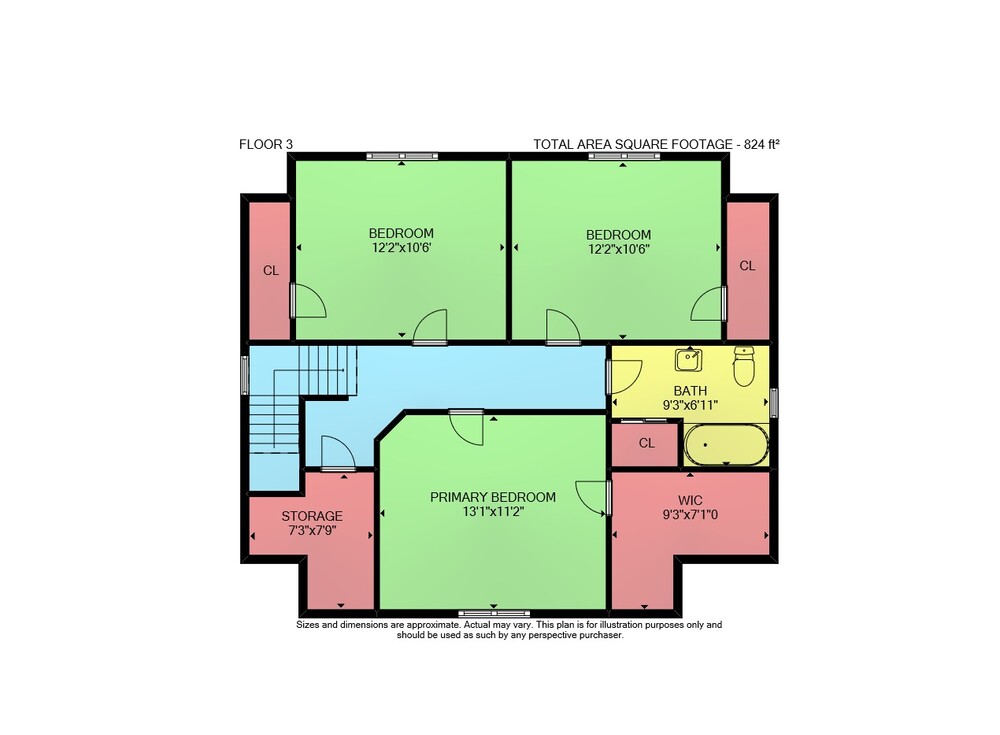 Floor 2: 1016 sq ft, Floor 3: 824 sq ft,