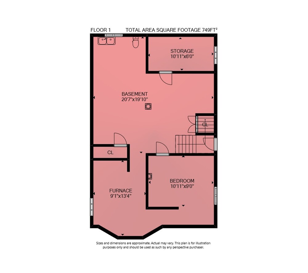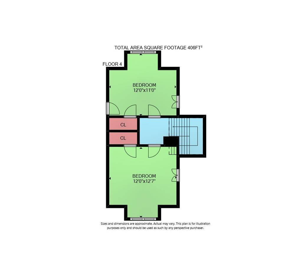 Floor 4: 406 sq ft, Floor 1: 749 sq ft