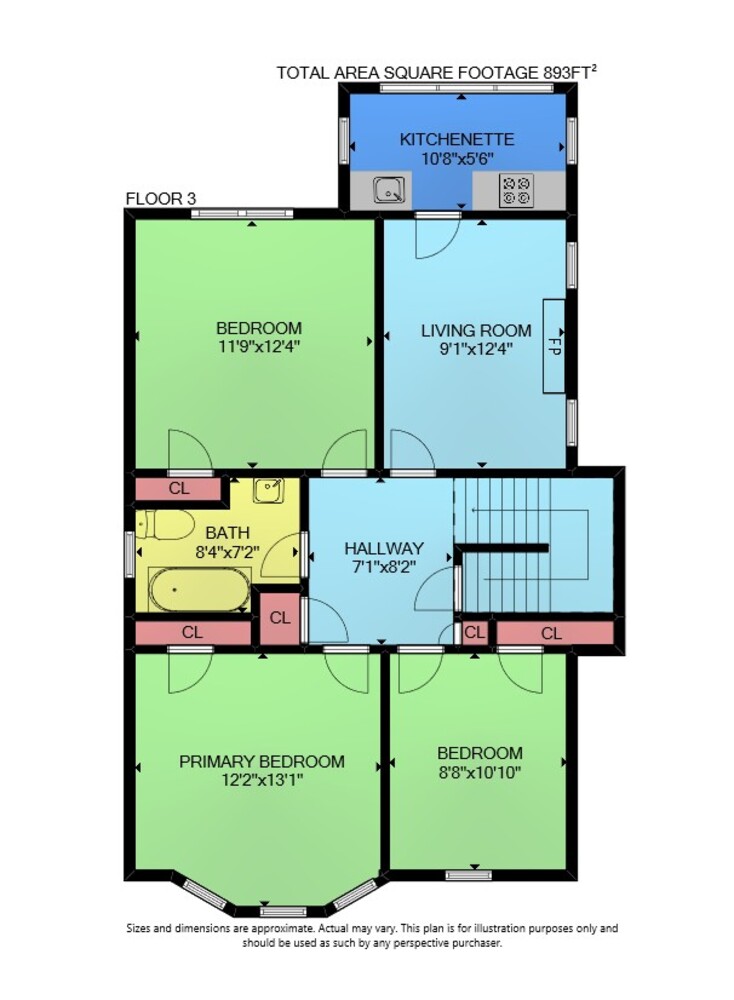 Floor 2: 885 sq ft, Floor 3: 893 sq ft,