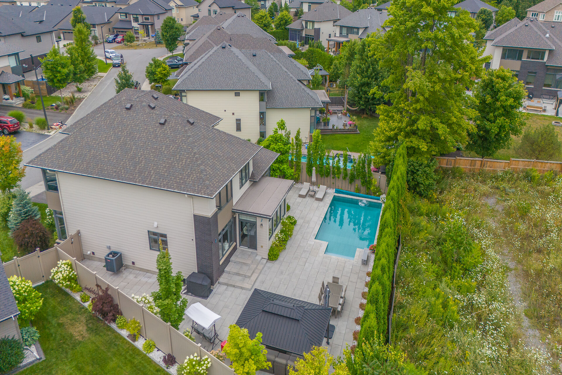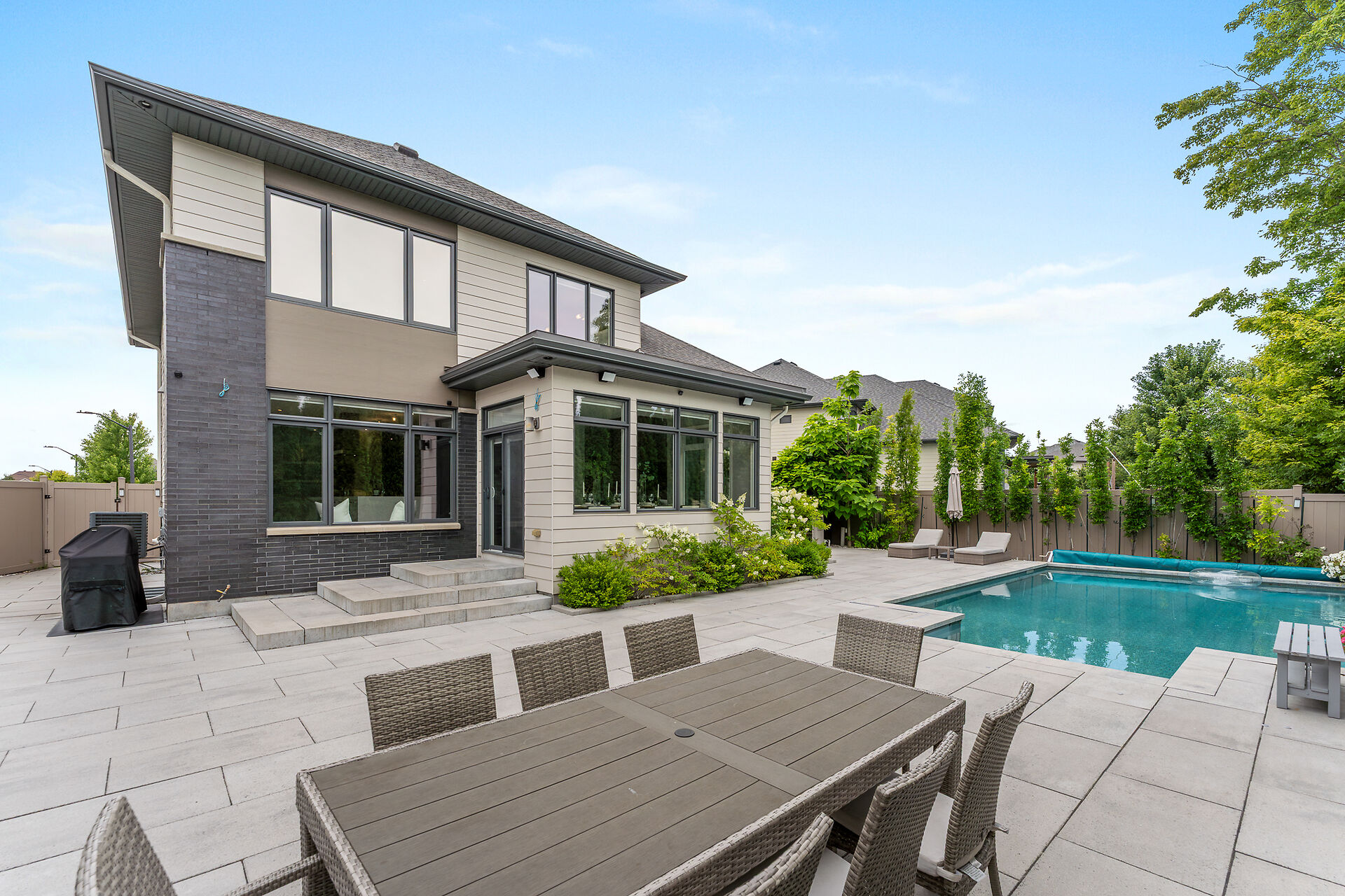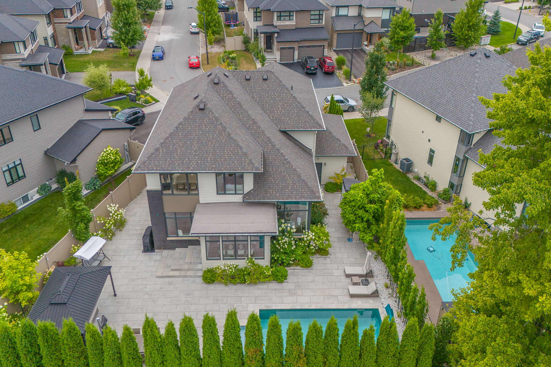 Experience the extraordinary in the heart of Bridlewood. The Borden is a one-of-a-kind luxury home in Kanata, set on an oversized lot with over $330,000 in premium upgrades. Striking curb appeal and modern architecture lead to a sun-filled open-concept interior with hardwood floors and a chef's kitchen featuring a massive island, built-in ovens, induction cooktop, and coffee center. The living room impresses with soaring two-storey ceilings, a floor-to-ceiling tiled feature wall, and a sleek linear gas fireplace. Upstairs, the primary suite offers a spa-like retreat, with three additional bedrooms each featuring ensuites. The finished basement includes a fifth bedroom, ensuite, and a stunning home theatre...