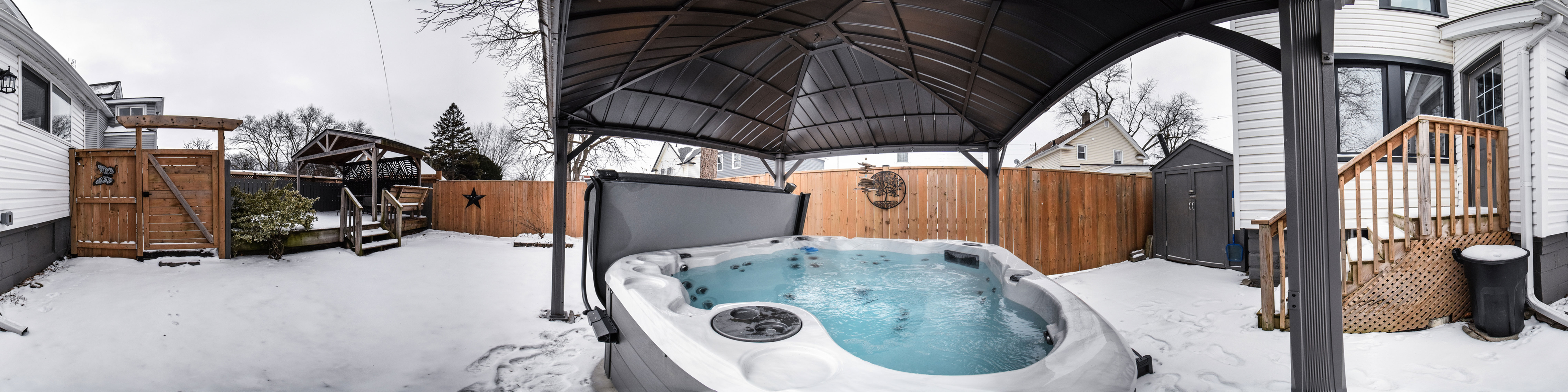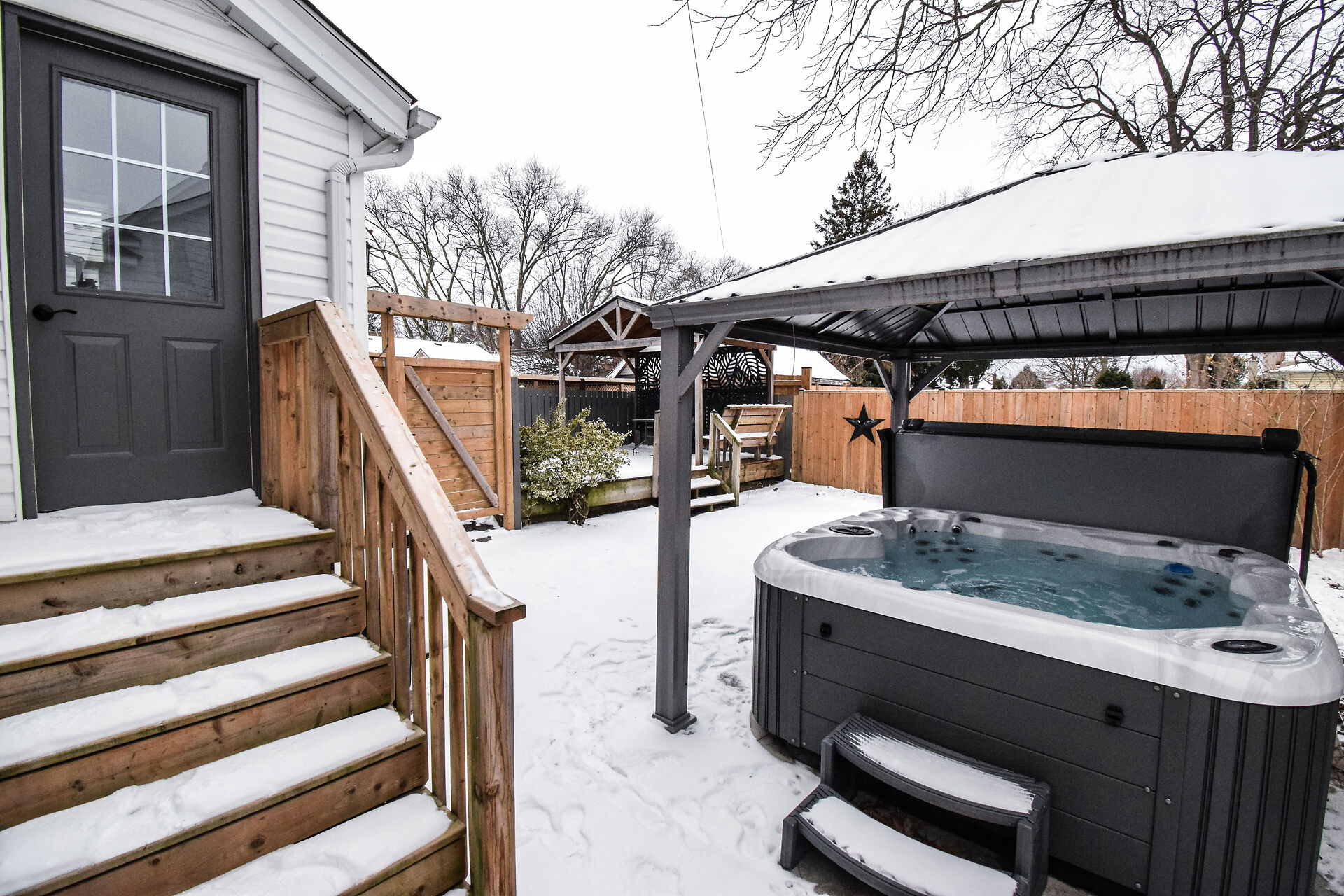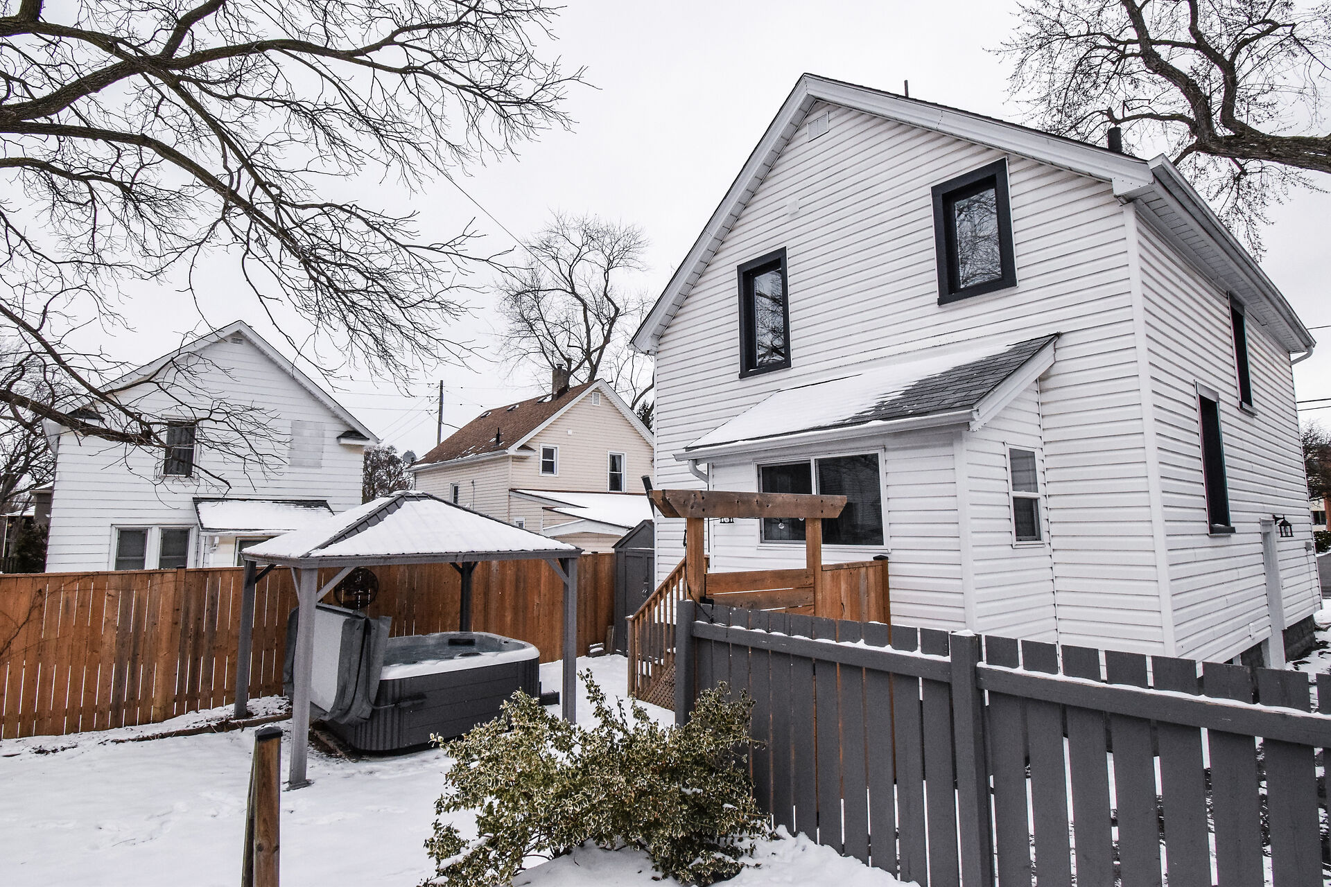 ""STUNNING UPDATED MOVE-IN READY ENTRY LEVEL 1.5 STOREY HOME WITH 3 BEDS & 1 4-PC BATH, UPDATED KITCHEN w/ BRAND NEW S/S APPLIANCES & BATH, ELECTRICAL, NEW VINYL FLOORING, LIGHTING, WITH PRIVATE FULLY FENCED BACK YARD WITH HOT TUB ON QUIET TREE LINED STREET IN NIAGARA FALLS"" Welcome to 5121 Fourth Ave, In Niagara Falls. As you approach, you immediate notice the curb appeal and care of the home. Head up to the Covered Porch (great for sitting out on summer evenings) and enter into the good sized foyer, with Livingrm/Diningrm combo to the right and continue forward into a stunning update kitchen with plenty of cabinets & quartz counter tops with with brand new s/s appliances. off the kitchen you have a nice mud room