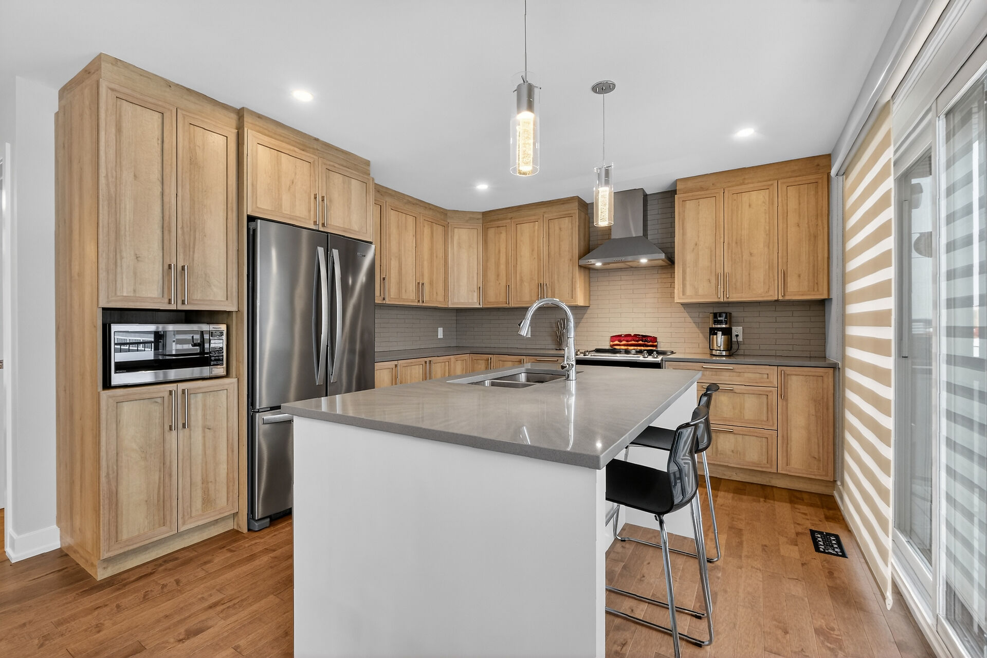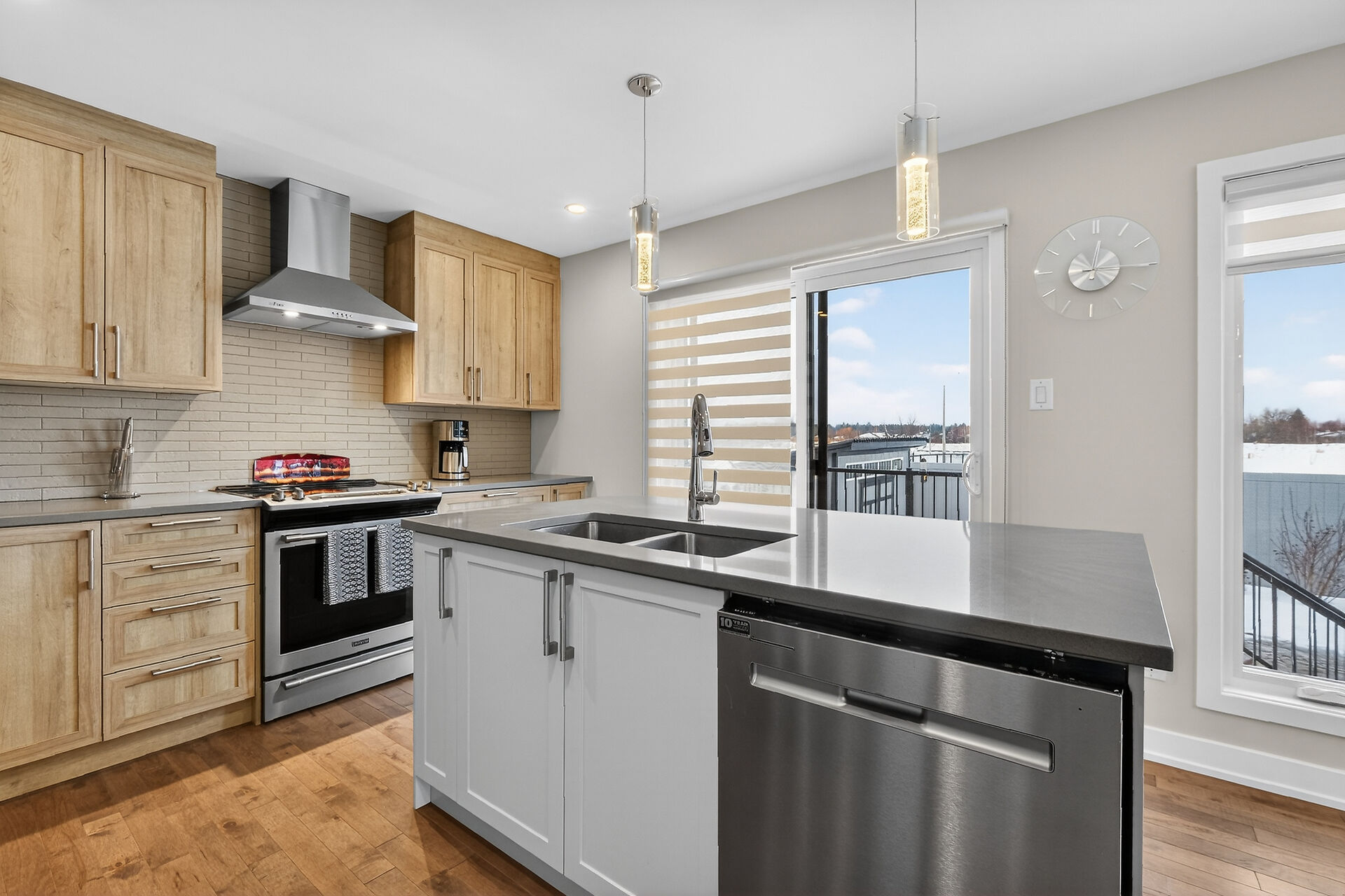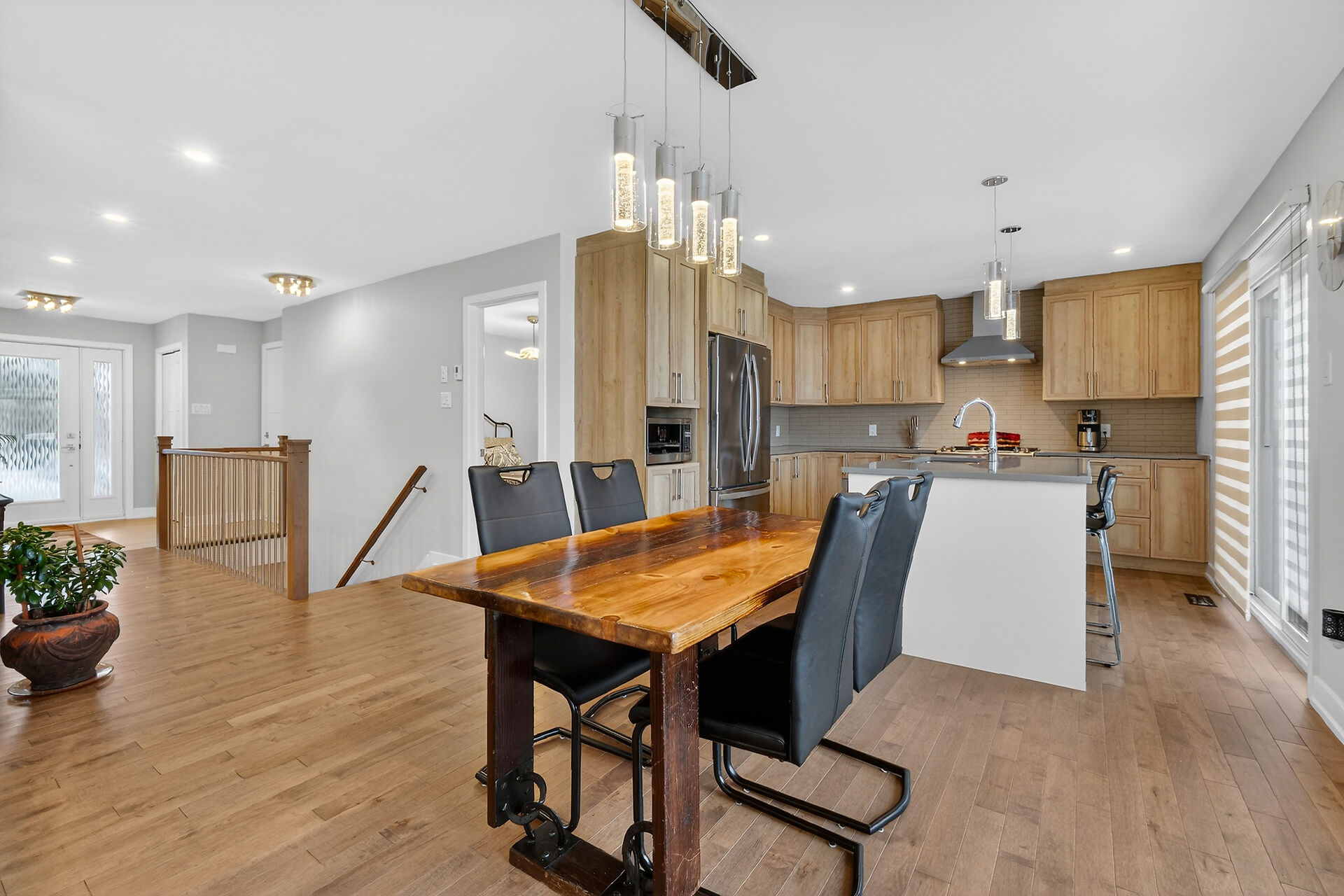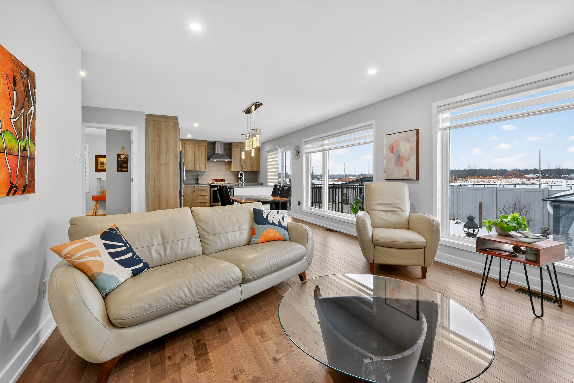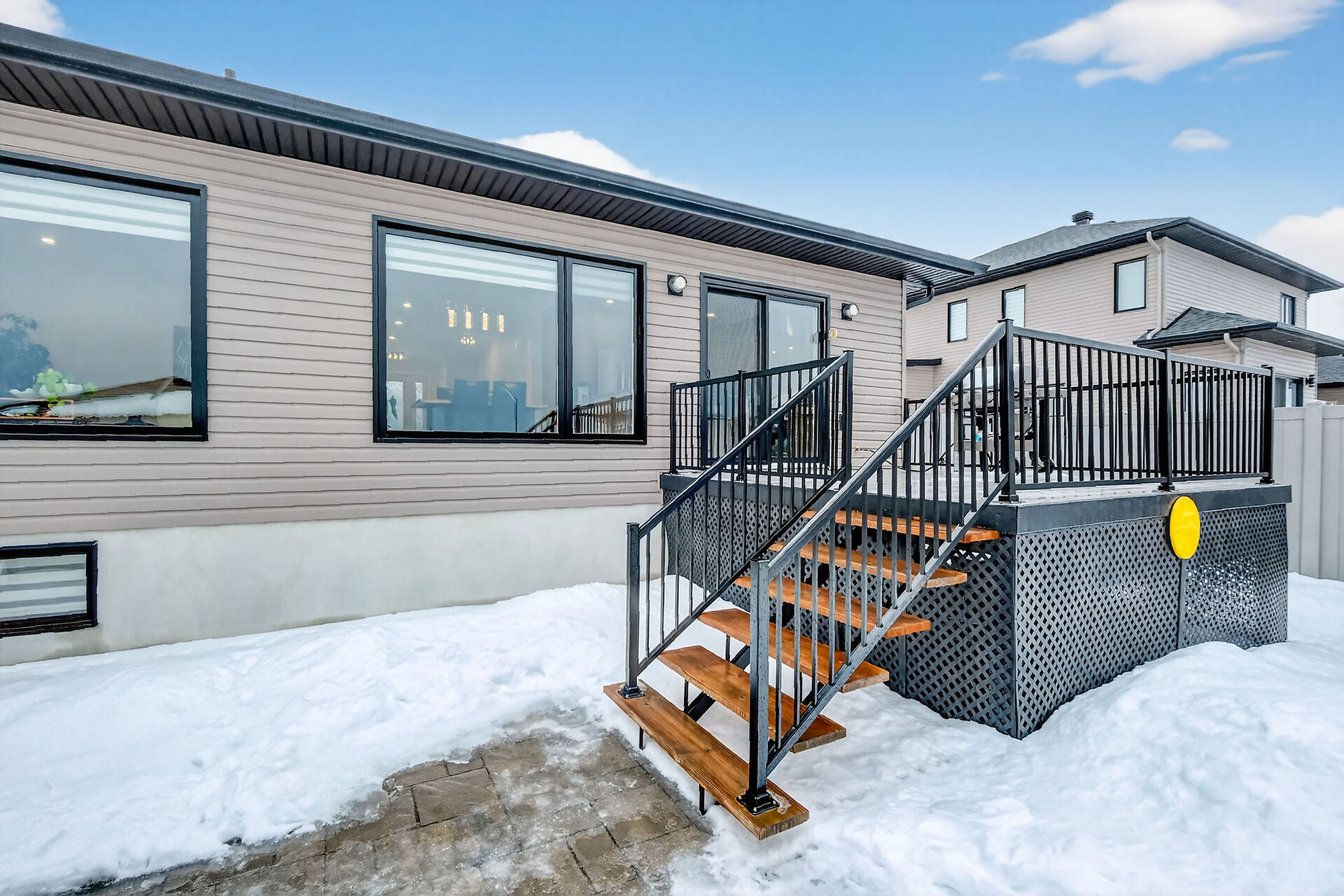 Beautiful stone-front bungalow with impressive curb appeal, featuring interlocking stonework and professionally landscaped grounds. The open-concept main level offers a seamless flow between the living and dining areas, highlighted by hardwood flooring and abundant natural light. The stylish kitchen is complete with quartz countertops, stainless steel appliances, pot lights, a gourmet hood fan, elegant backsplash, undermount sinks, and custom blinds throughout. The main floor includes two well-appointed bedrooms and a modern bathroom featuring a relaxing soaker tub and quality finishes. The fully finished basement expands the living space with a spacious recreation room, full bathroom and dedicated laundry room.