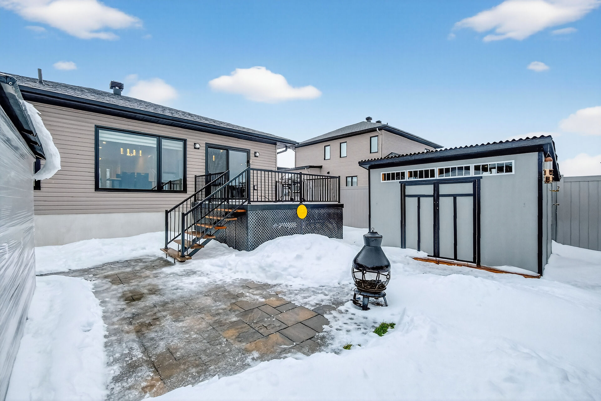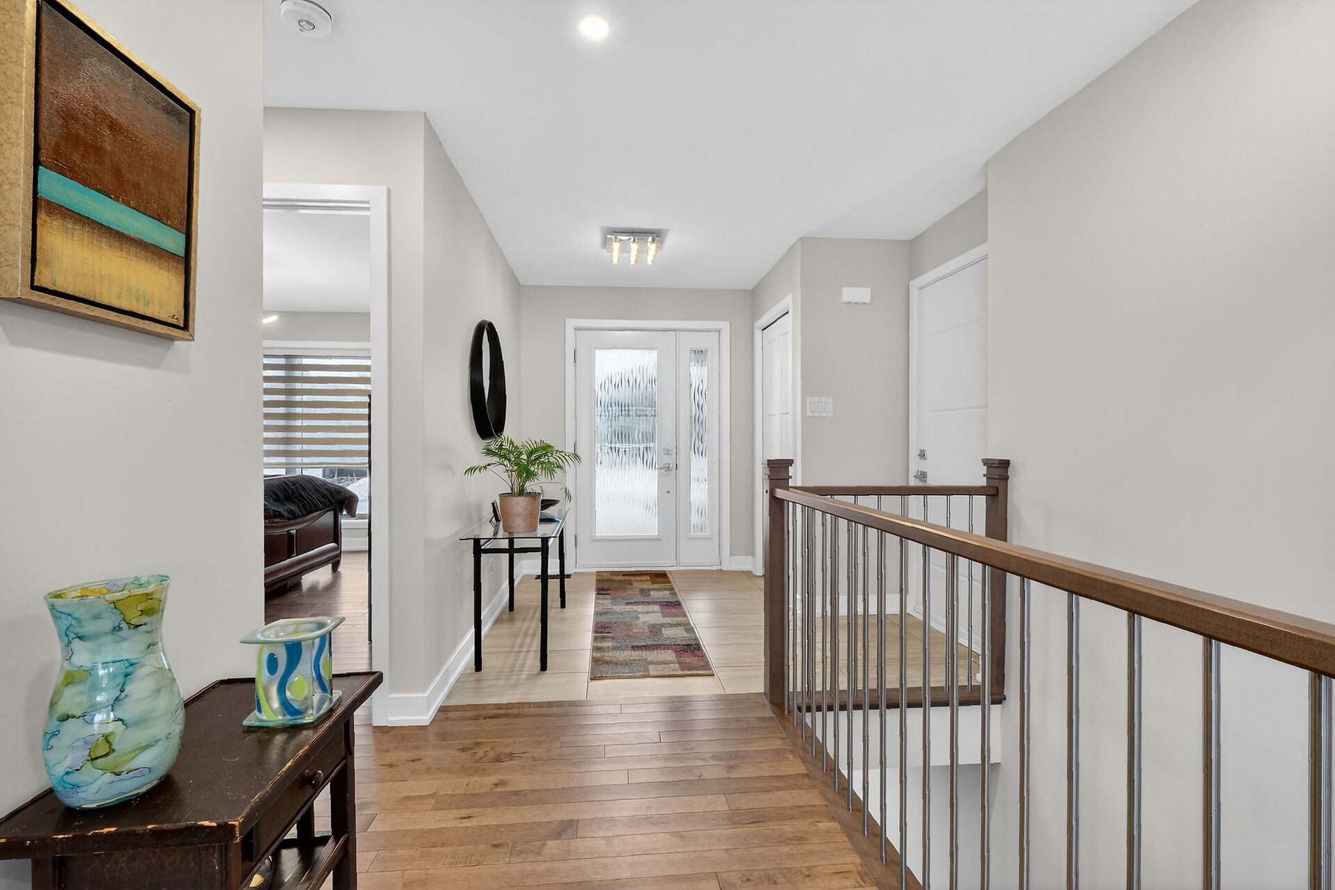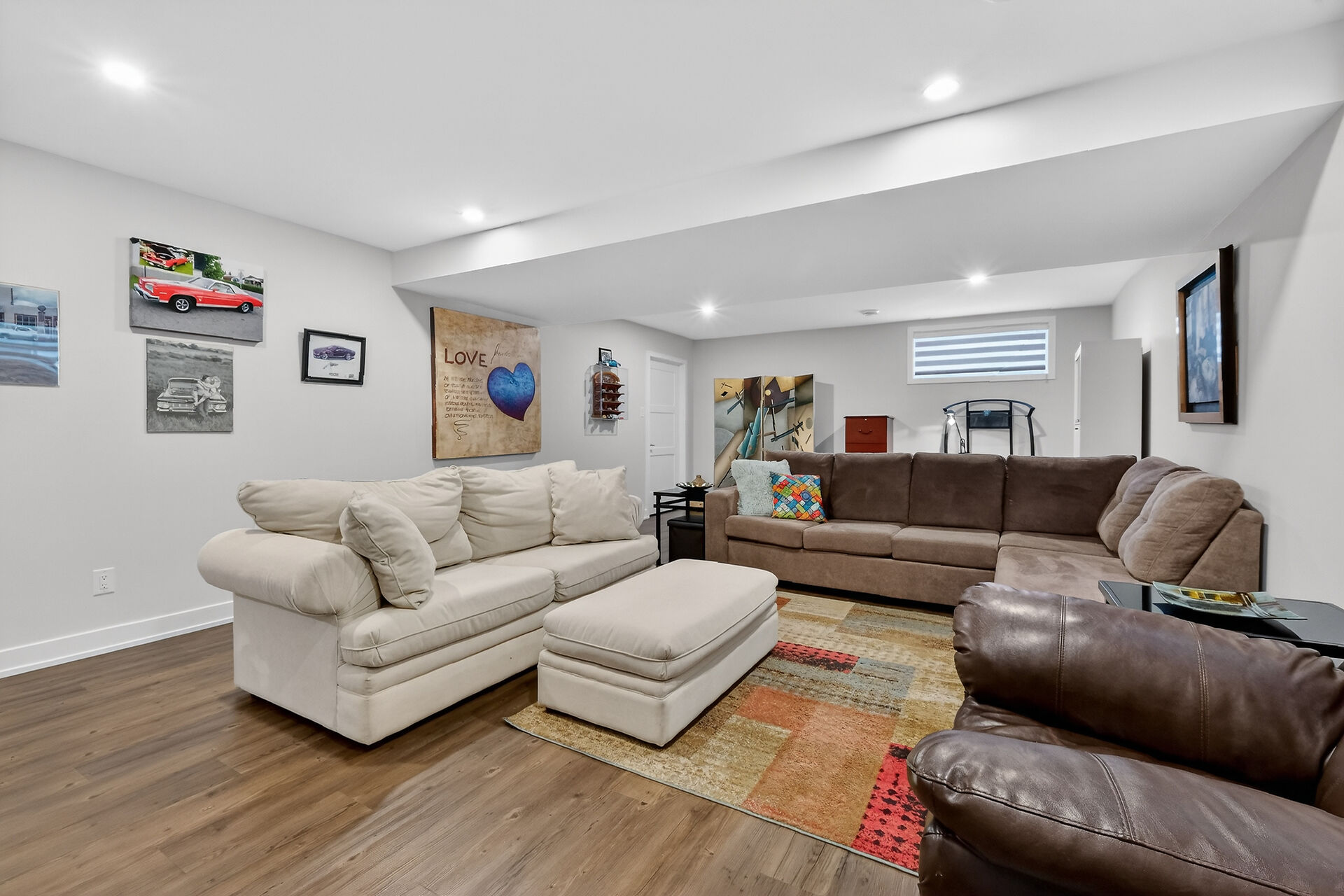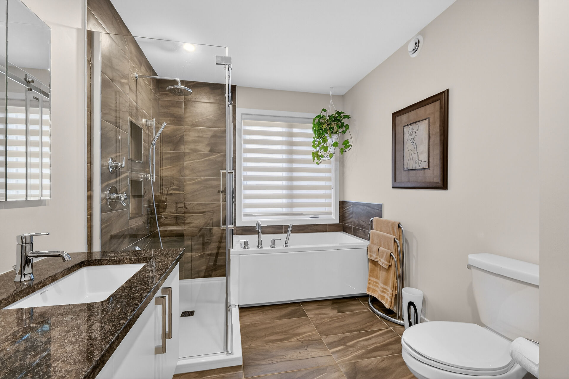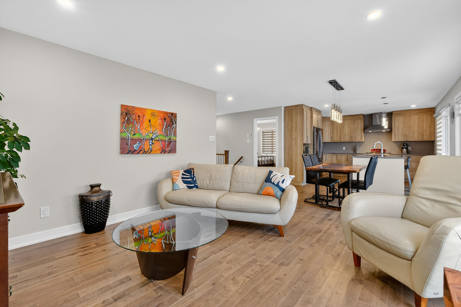 Beautiful stone-front bungalow with impressive curb appeal, featuring interlocking stonework and professionally landscaped grounds. The open-concept main level offers a seamless flow between the living and dining areas, highlighted by hardwood flooring and abundant natural light. The stylish kitchen is complete with quartz countertops, stainless steel appliances, pot lights, a gourmet hood fan, elegant backsplash, undermount sinks, and custom blinds throughout. The main floor includes two well-appointed bedrooms and a modern bathroom featuring a relaxing soaker tub and quality finishes. The fully finished basement expands the living space with a spacious recreation room, full bathroom and dedicated laundry room.