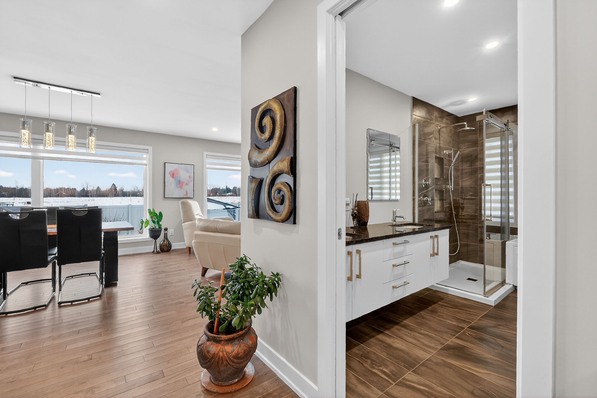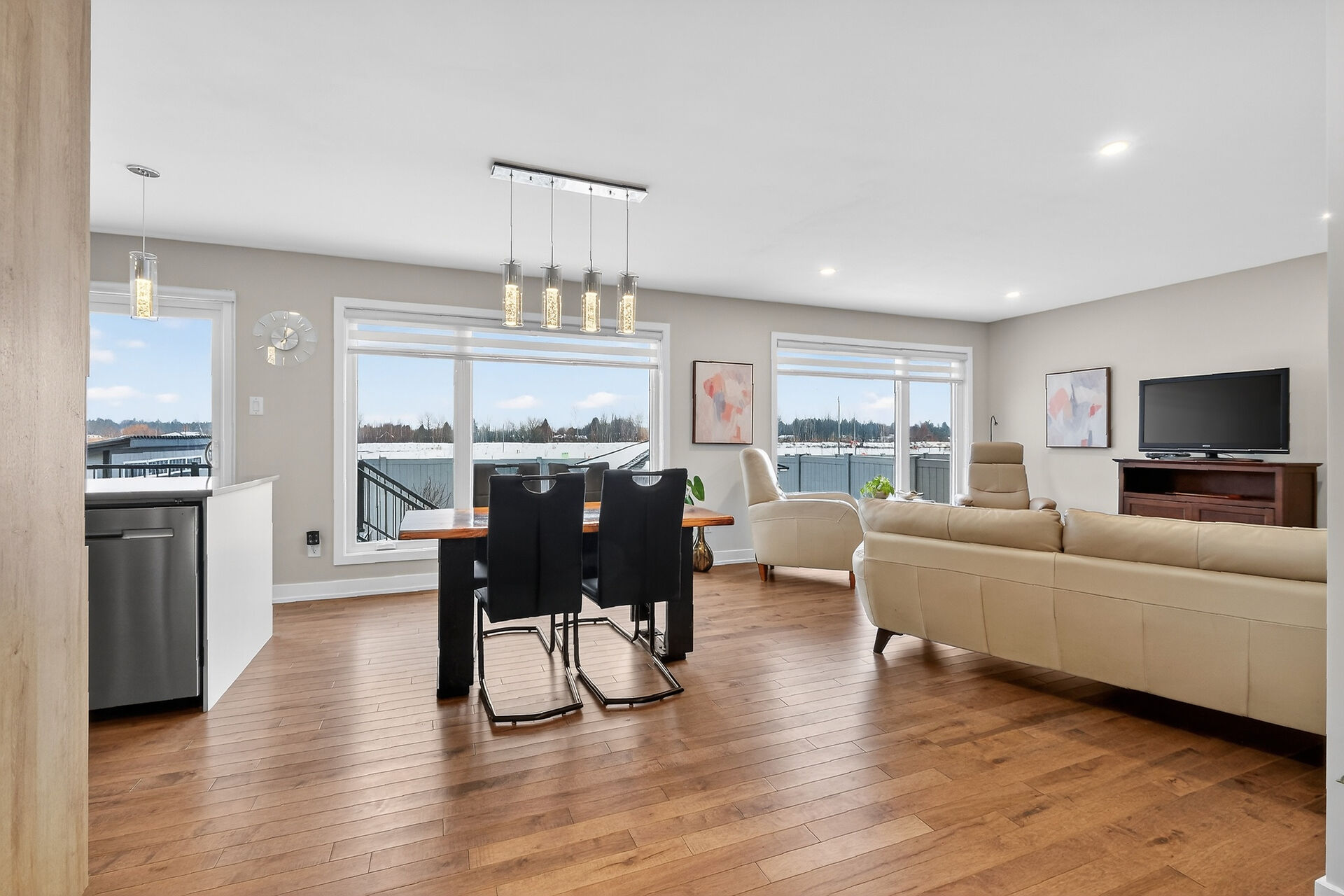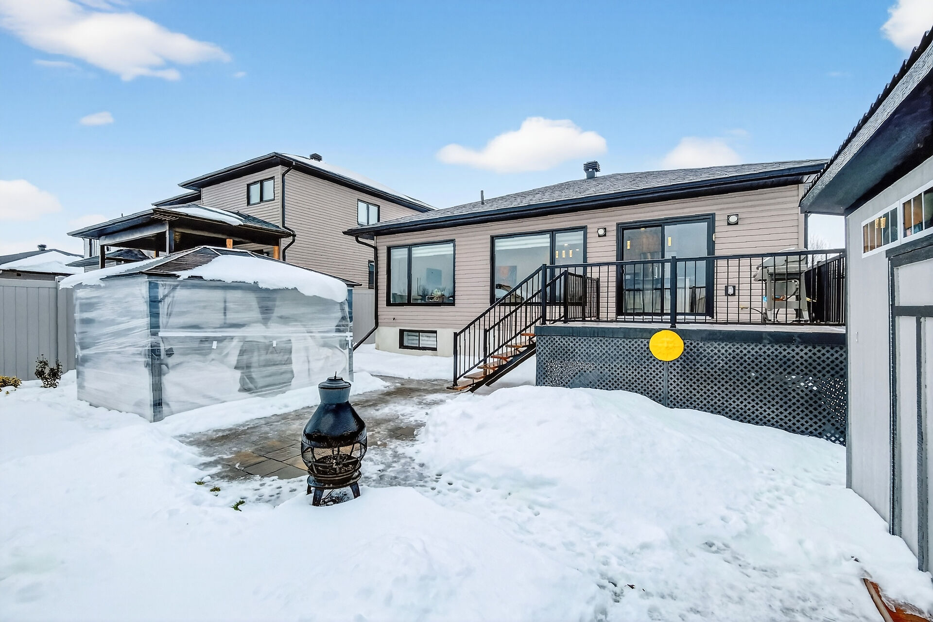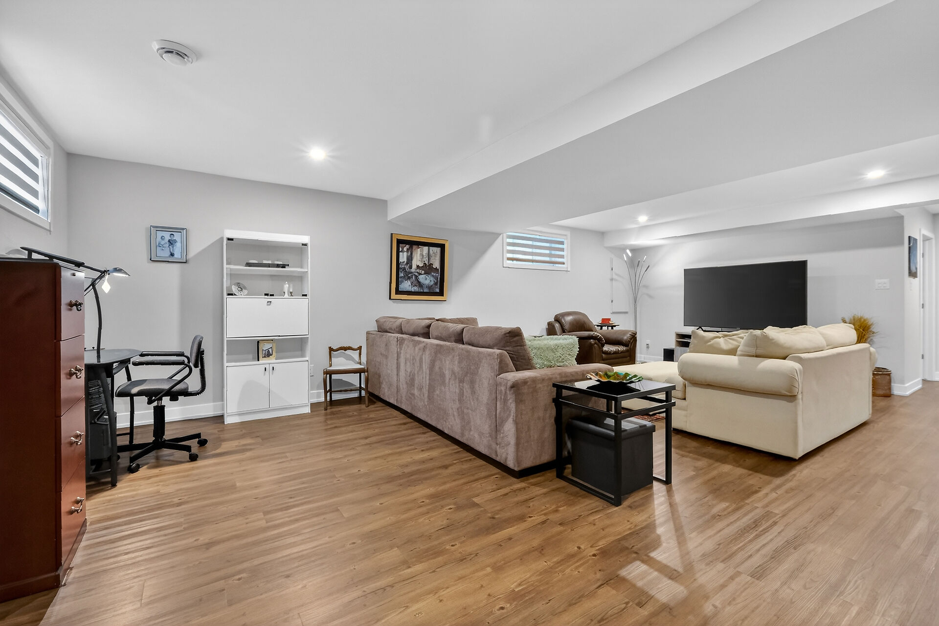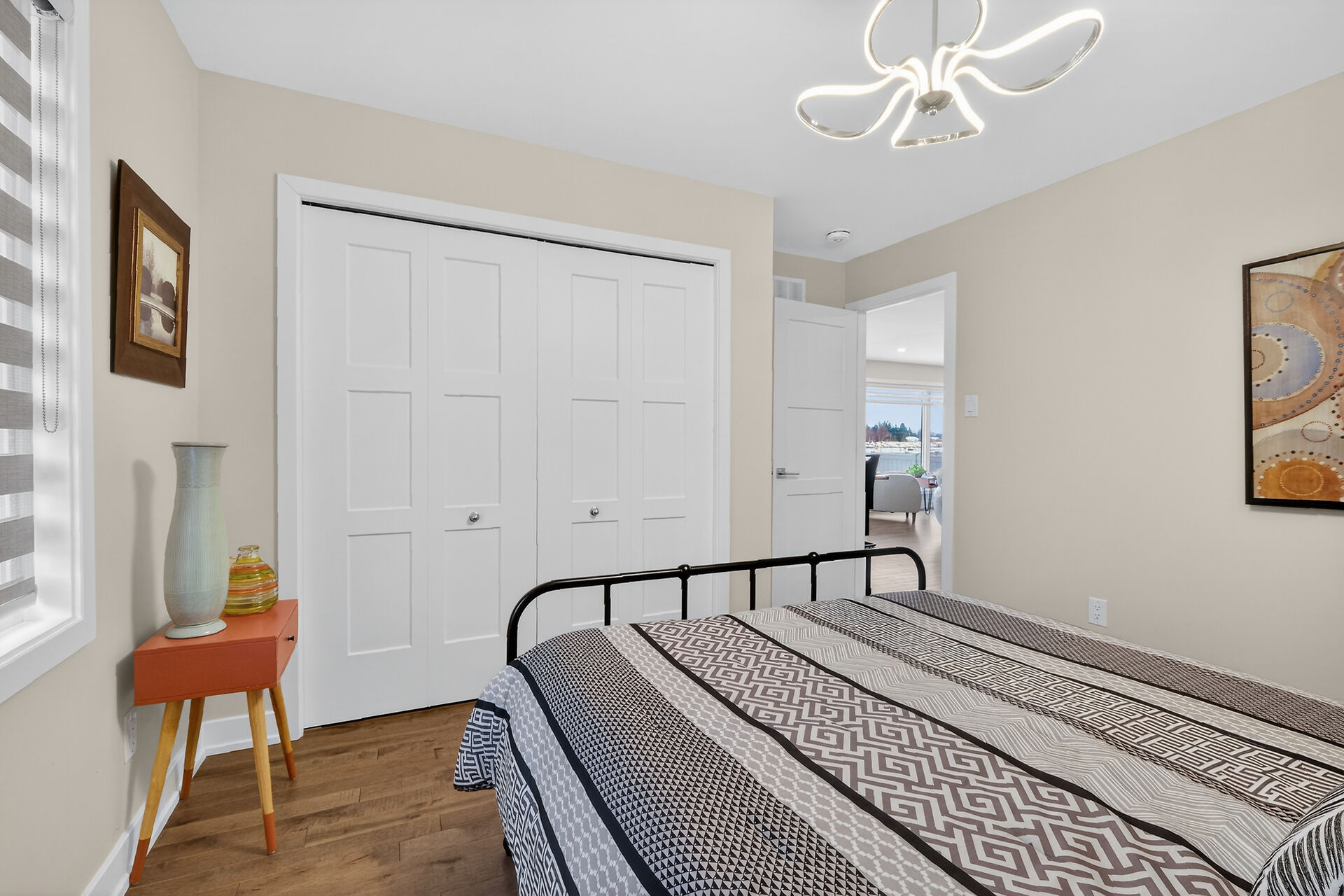 Beautiful stone-front bungalow with impressive curb appeal, featuring interlocking stonework and professionally landscaped grounds. The open-concept main level offers a seamless flow between the living and dining areas, highlighted by hardwood flooring and abundant natural light. The stylish kitchen is complete with quartz countertops, stainless steel appliances, pot lights, a gourmet hood fan, elegant backsplash, undermount sinks, and custom blinds throughout. The main floor includes two well-appointed bedrooms and a modern bathroom featuring a relaxing soaker tub and quality finishes. The fully finished basement expands the living space with a spacious recreation room, full bathroom and dedicated laundry room.