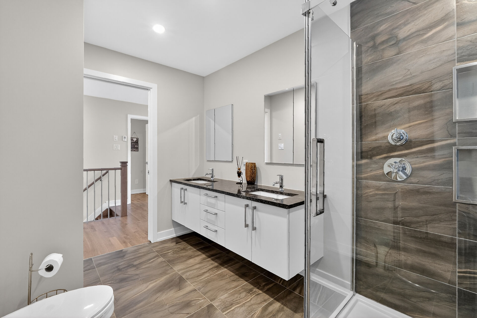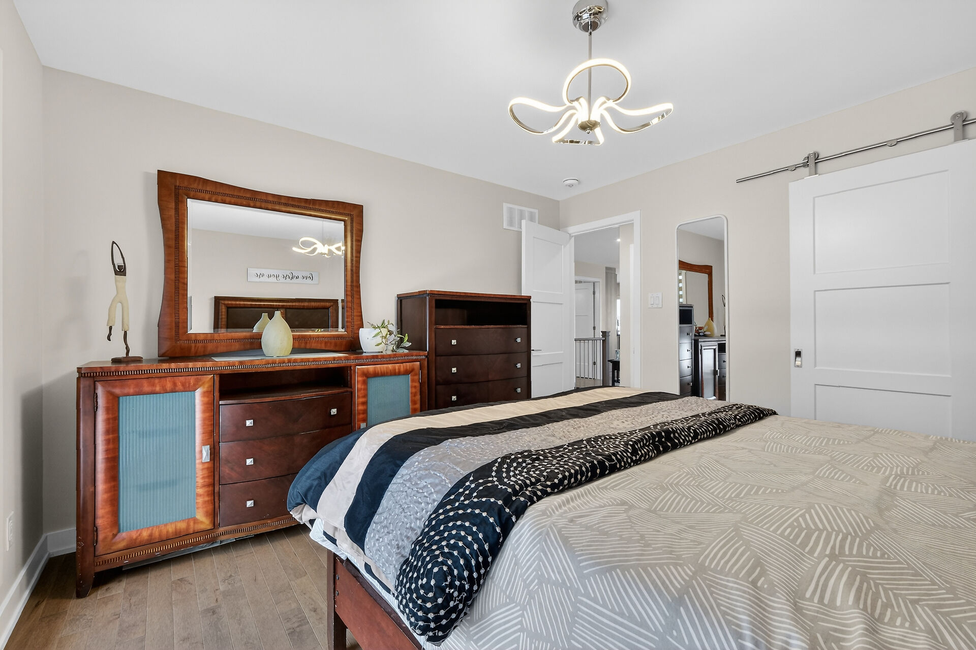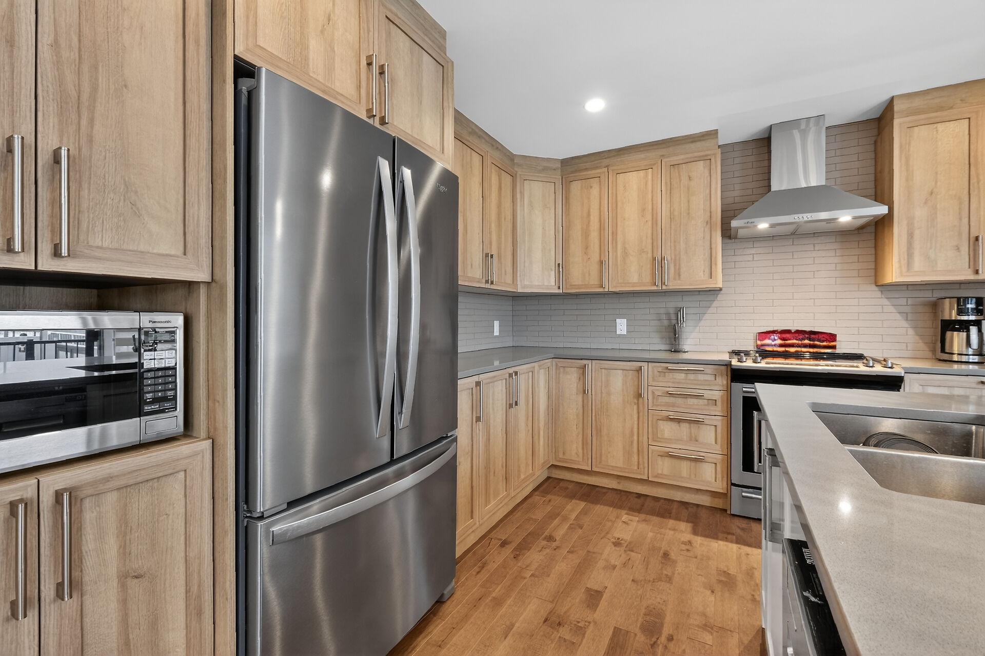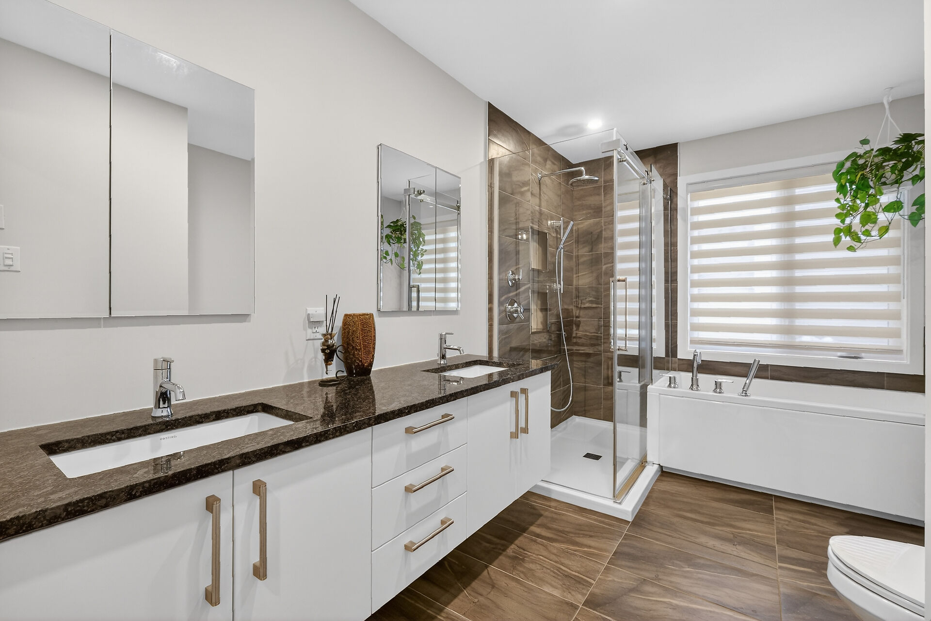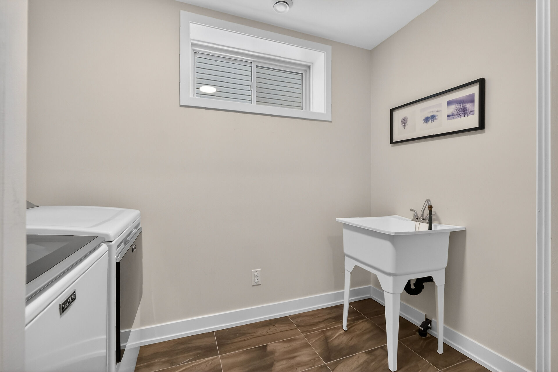 Beautiful stone-front bungalow with impressive curb appeal, featuring interlocking stonework and professionally landscaped grounds. The open-concept main level offers a seamless flow between the living and dining areas, highlighted by hardwood flooring and abundant natural light. The stylish kitchen is complete with quartz countertops, stainless steel appliances, pot lights, a gourmet hood fan, elegant backsplash, undermount sinks, and custom blinds throughout. The main floor includes two well-appointed bedrooms and a modern bathroom featuring a relaxing soaker tub and quality finishes. The fully finished basement expands the living space with a spacious recreation room, full bathroom and dedicated laundry room.