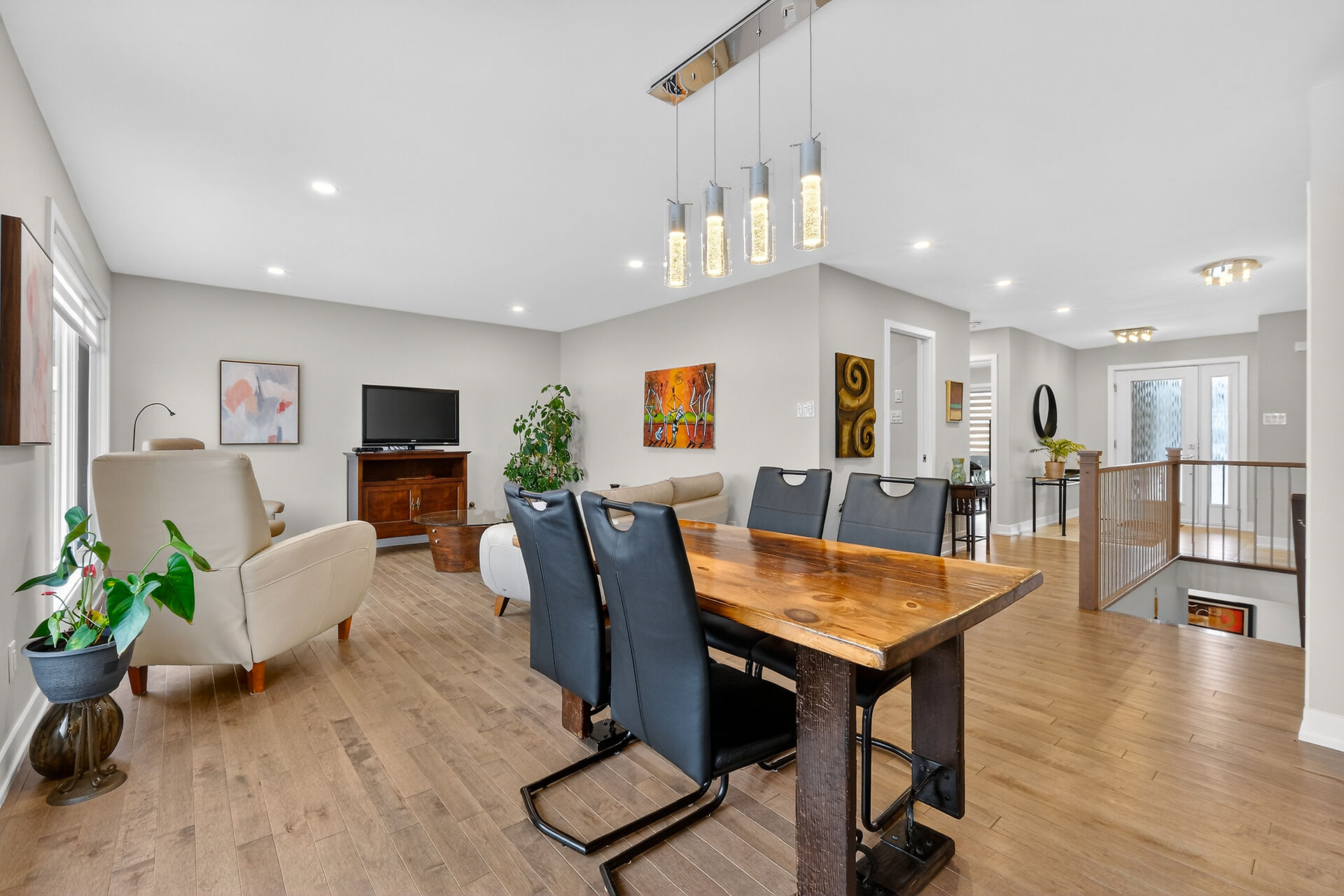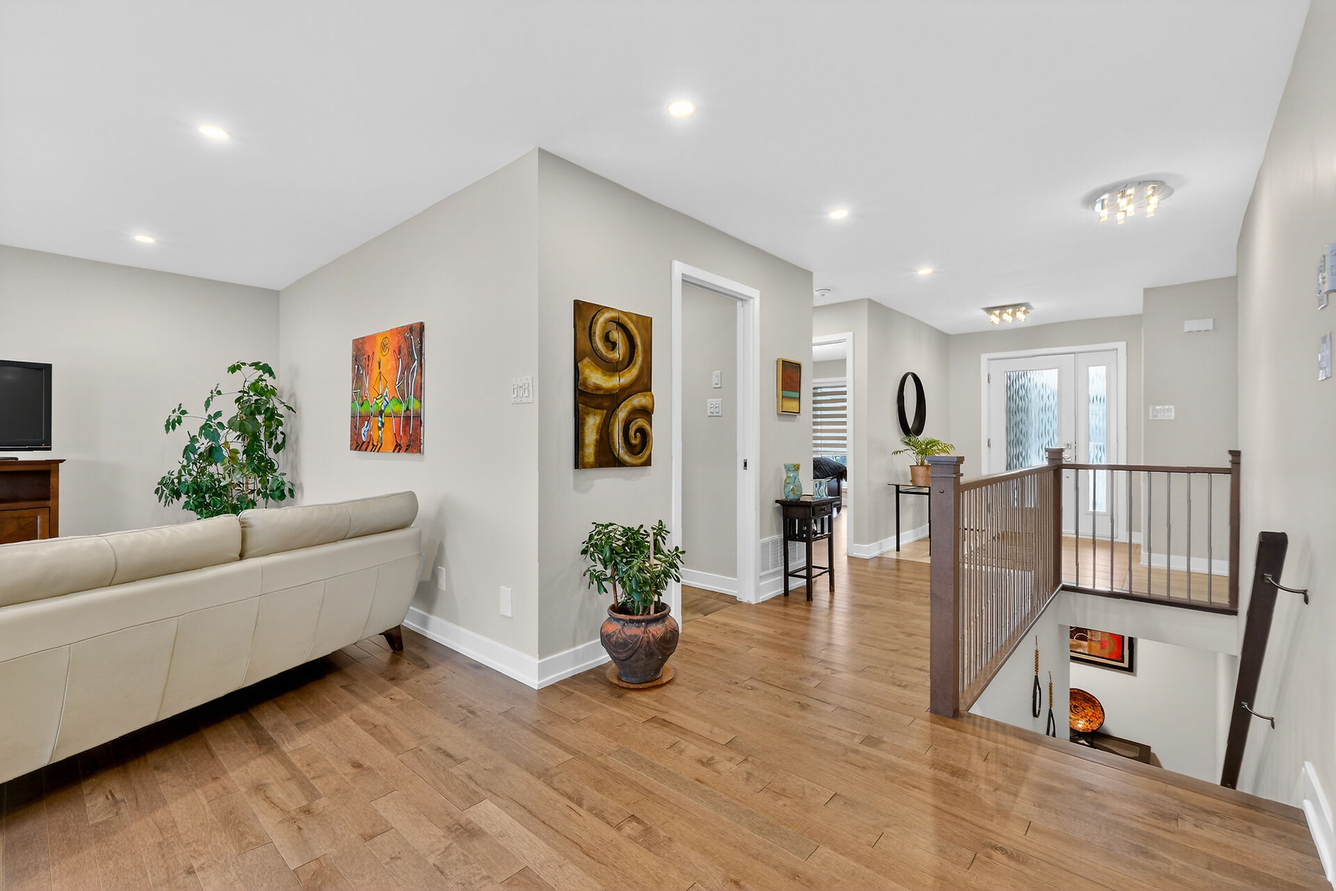 Beautiful stone-front bungalow with impressive curb appeal, featuring interlocking stonework and professionally landscaped grounds. The open-concept main level offers a seamless flow between the living and dining areas, highlighted by hardwood flooring and abundant natural light. The stylish kitchen is complete with quartz countertops, stainless steel appliances, pot lights, a gourmet hood fan, elegant backsplash, undermount sinks, and custom blinds throughout. The main floor includes two well-appointed bedrooms and a modern bathroom featuring a relaxing soaker tub and quality finishes. The fully finished basement expands the living space with a spacious recreation room, full bathroom and dedicated laundry room.