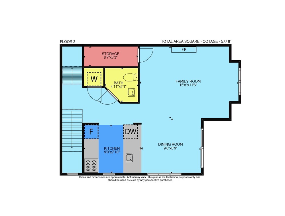 Floor 1: 262 sq ft, Floor 2: 577 sq ft,
