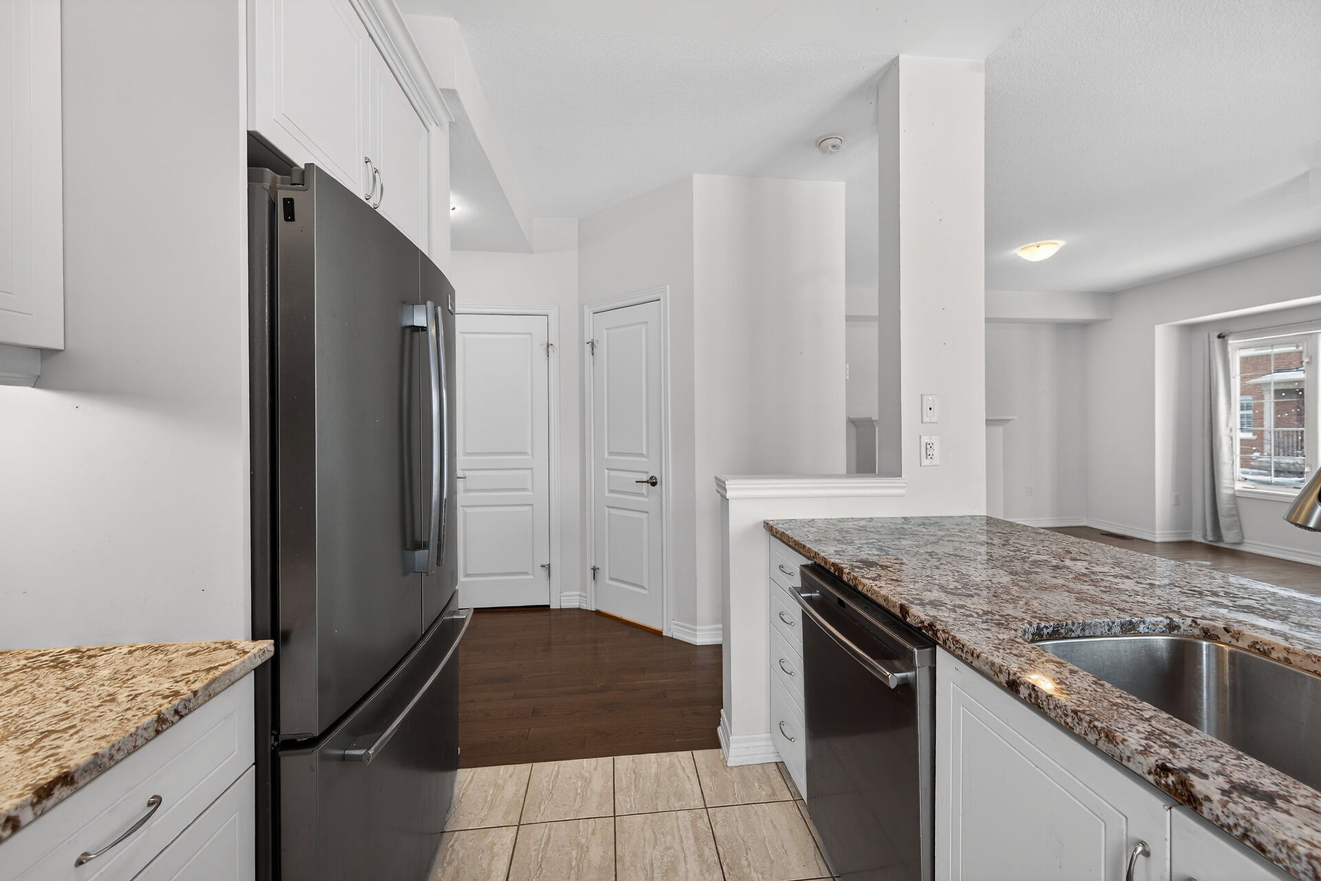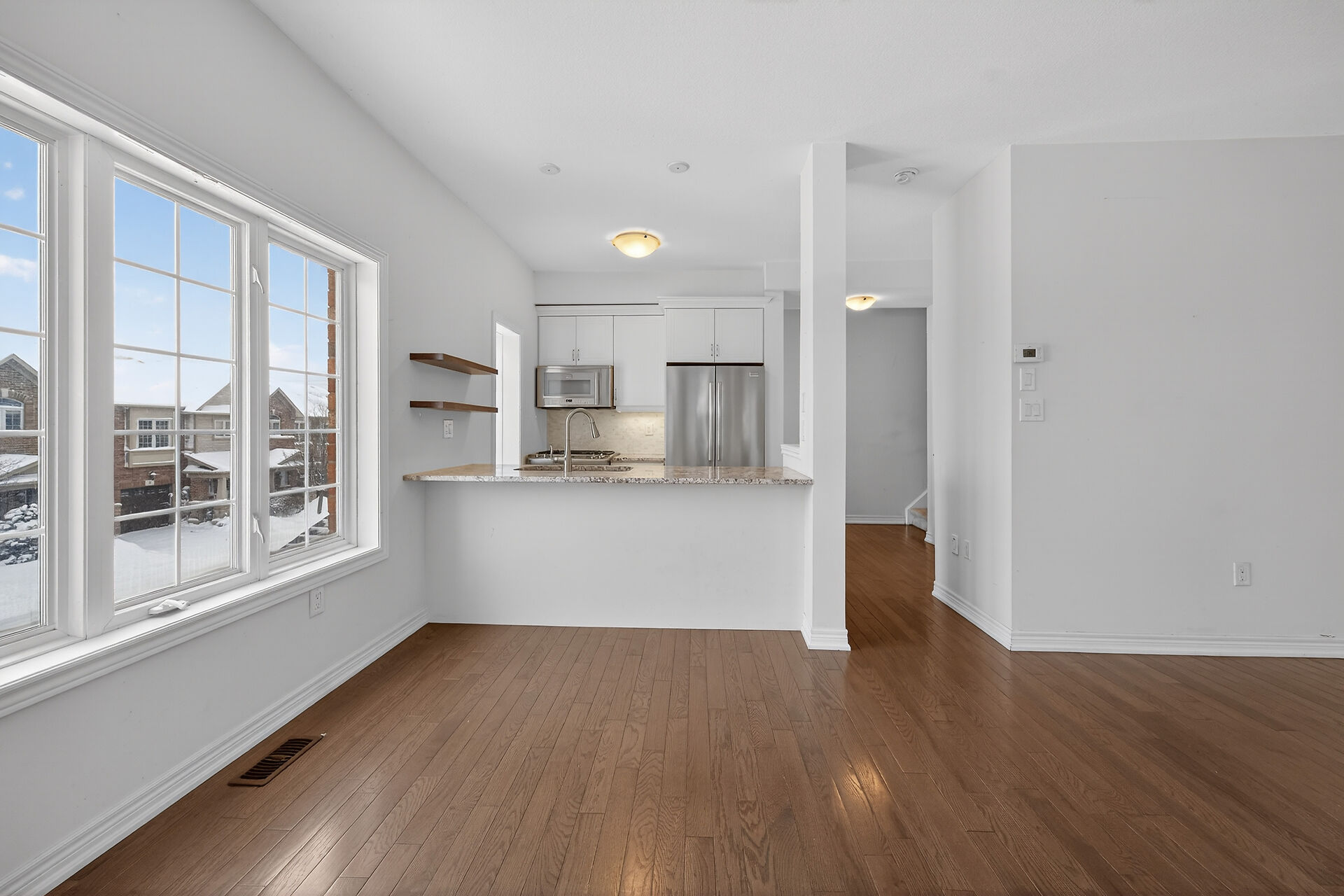 Fantastic opportunity to live by the lake! This modern freehold townhouse offers 3 bedrooms and 1.5 bathroom rooms with approximately 1409 sqft of well-designed living space. Enjoy a bright, open concept layout, contemporary finishes, and low maintenance living in a desirable lakeside community. Patio doors from both the lower family room and main living room lead to a private patio, perfect for outdoor enjoyment. Features include hrwd flooring on the second level, laundry conveniently located off the kitchen, and a functional breakfast bar ideal for casual dining. Perfect for families, first-time buyers, or investors seeking comfort and convenience in a great location. Conveniently located close to all amenities.