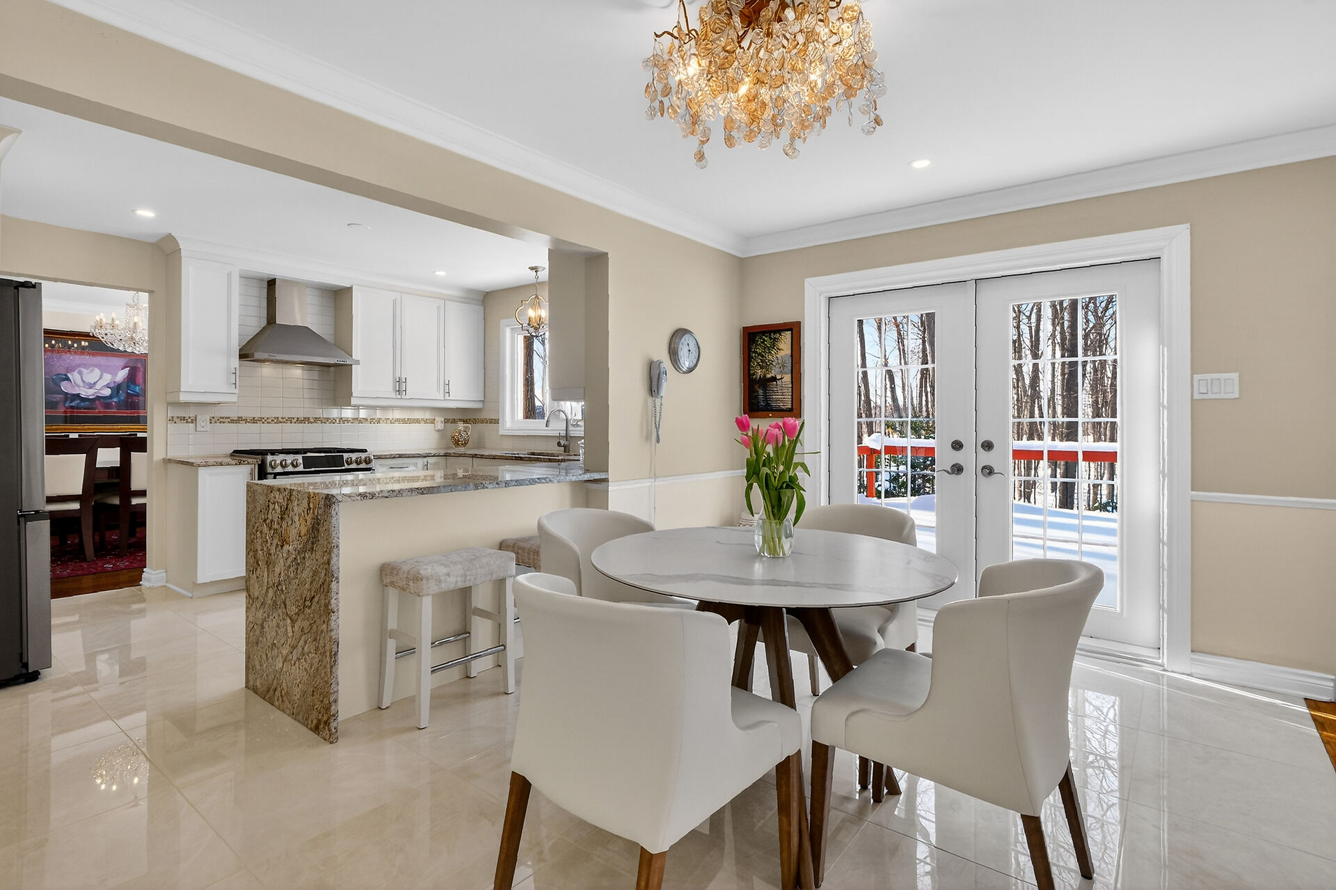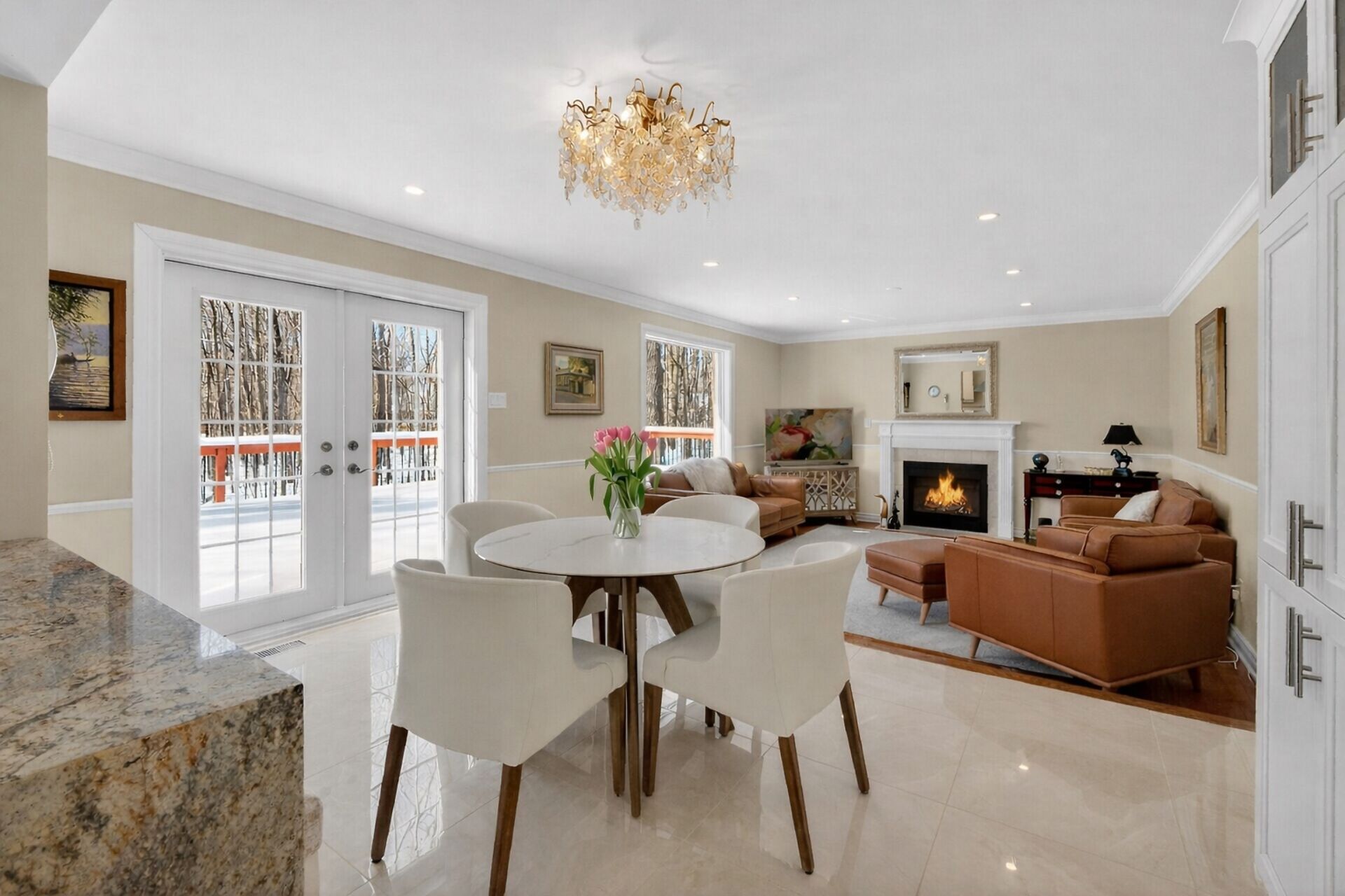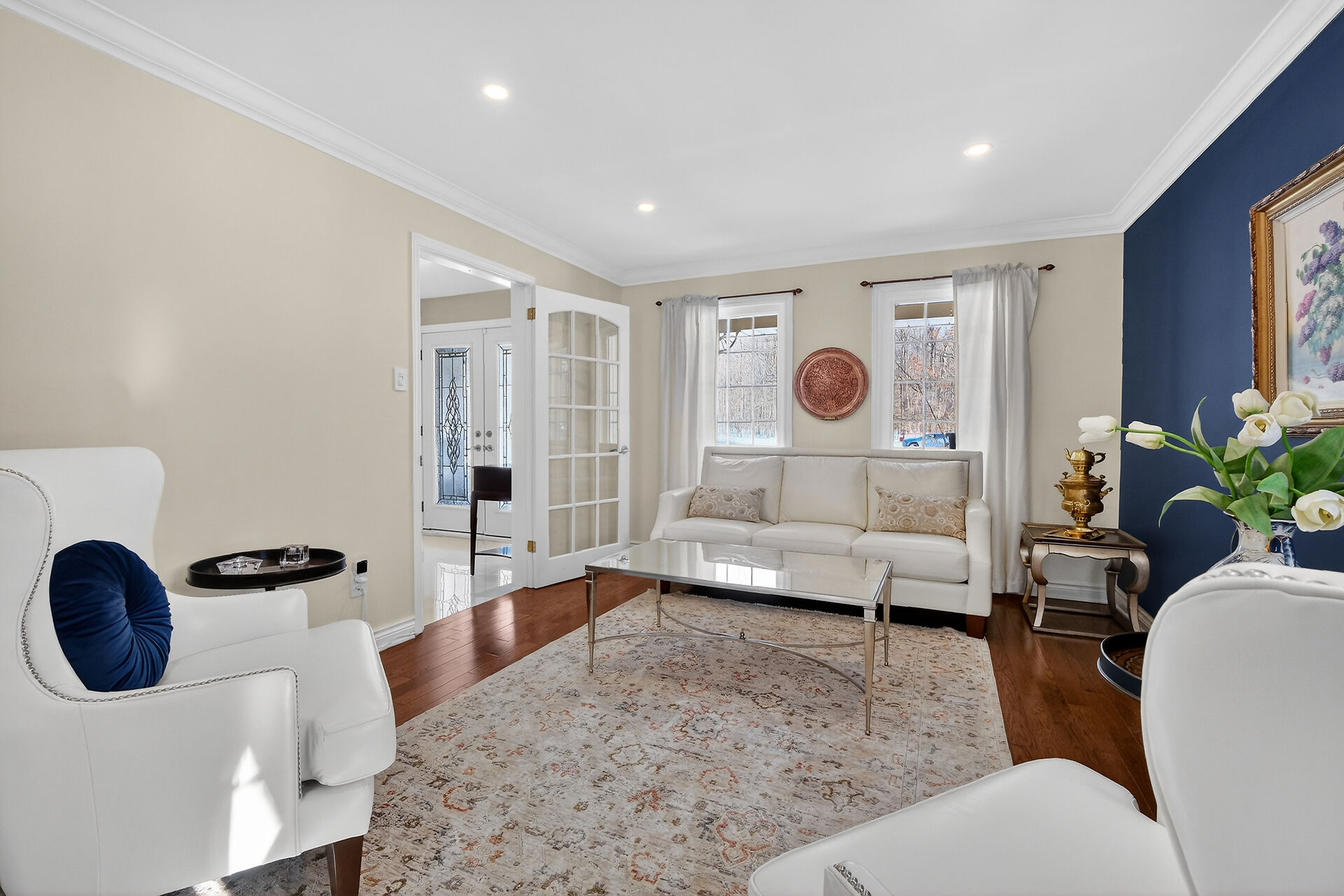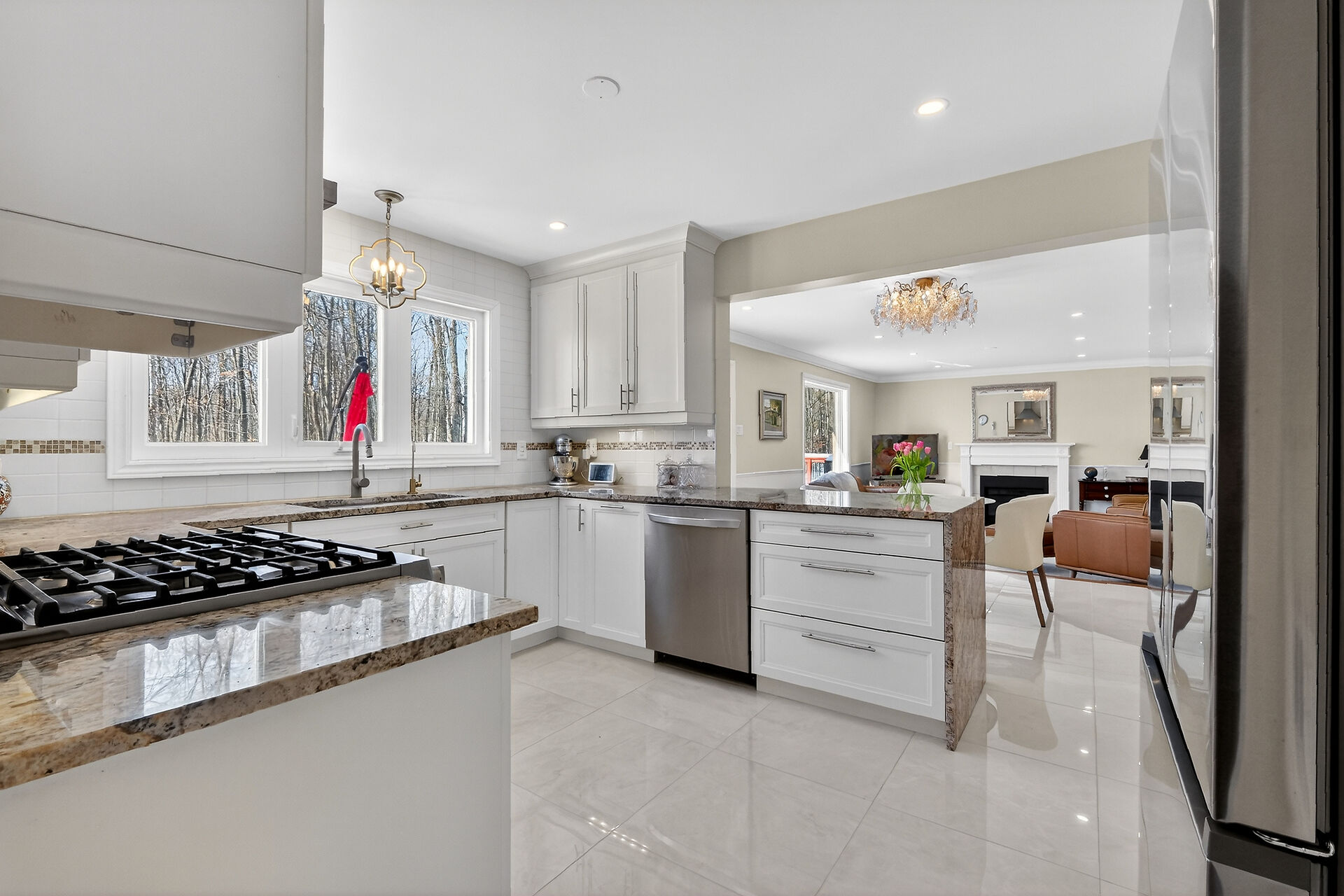 Welcome to 1372 Jules Leger Dr, a fully renovated all-brick 4-bedroom home set on 1.98 private acres in Cumberland's prestigious Du Gouverneur Estates. This meticulously maintained residence showcases hardwood & tile flooring, crown moulding, pot lights & a stunning white kitchen w/granite counters, custom cabinetry, stainless steel appliances, & gas stove. The family room w/9 ft ceilings & gas fireplace creates a warm gathering space, while patio doors lead to a raised deck overlooking landscaped gardens, pond, & wooded privacy. The spacious primary suite features a walk-in closet & elegant ensuite. Finished basement, oversized 2-car garage with EV plug & parking for 10-minutes to amenities yet peacefully secluded.