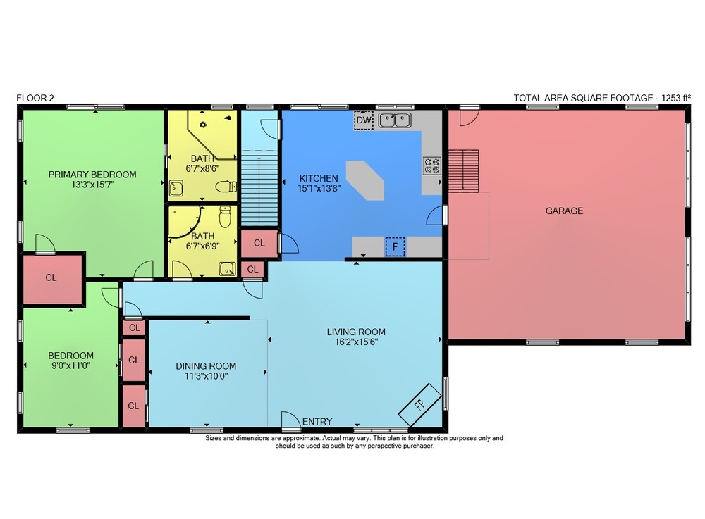 Floor 2: 1253 sq ft, Floor 1: 1195 sq ft