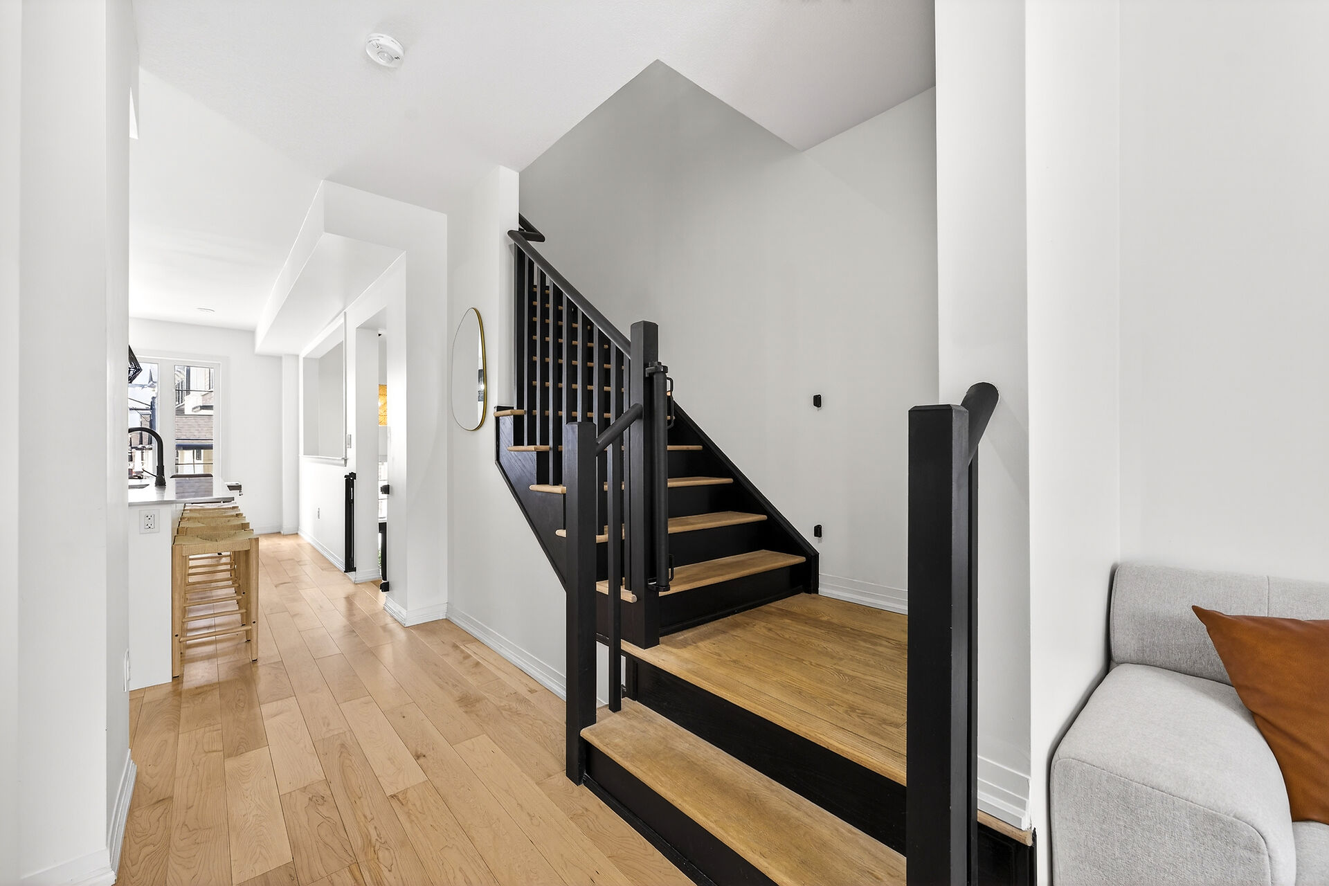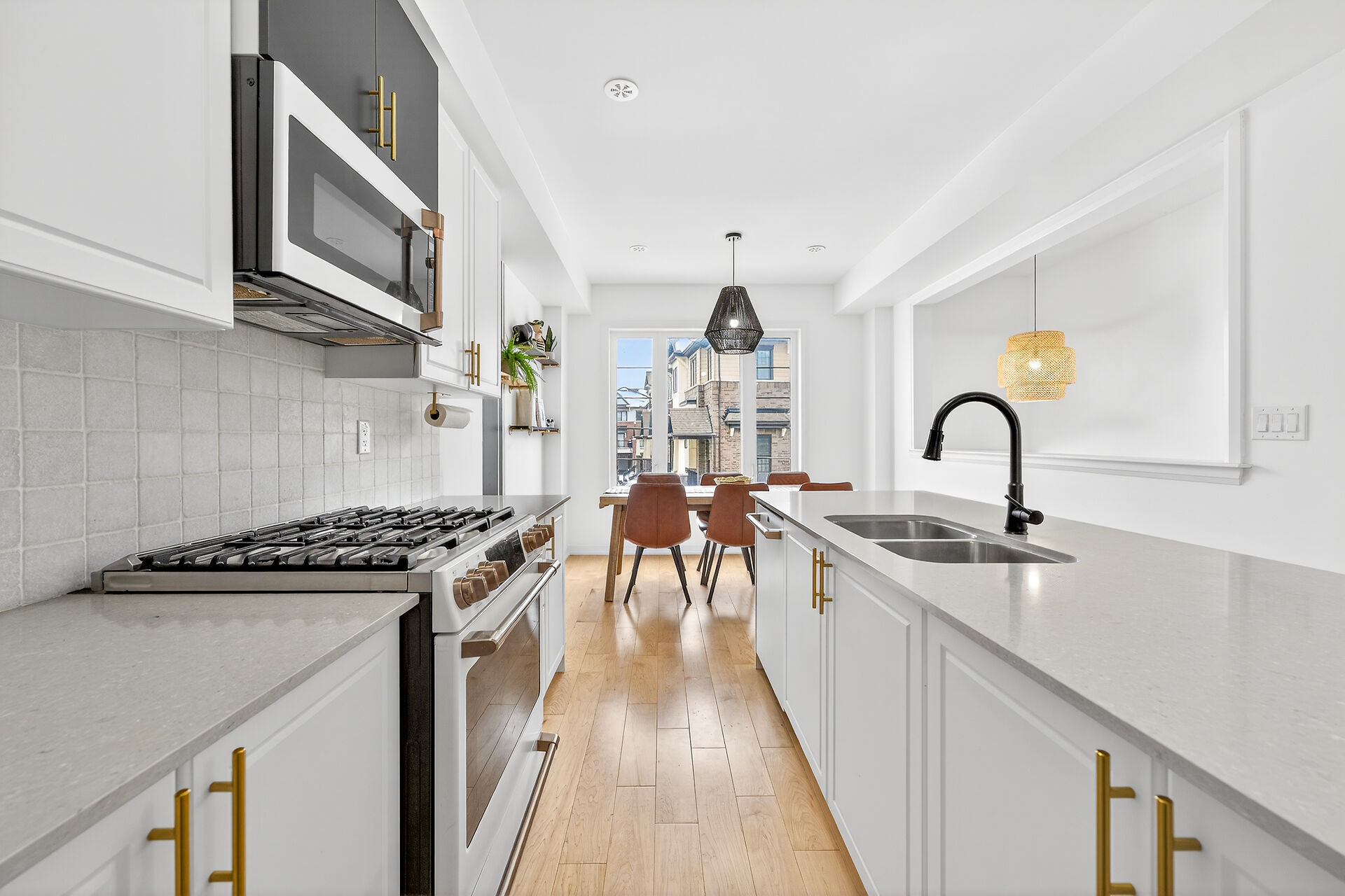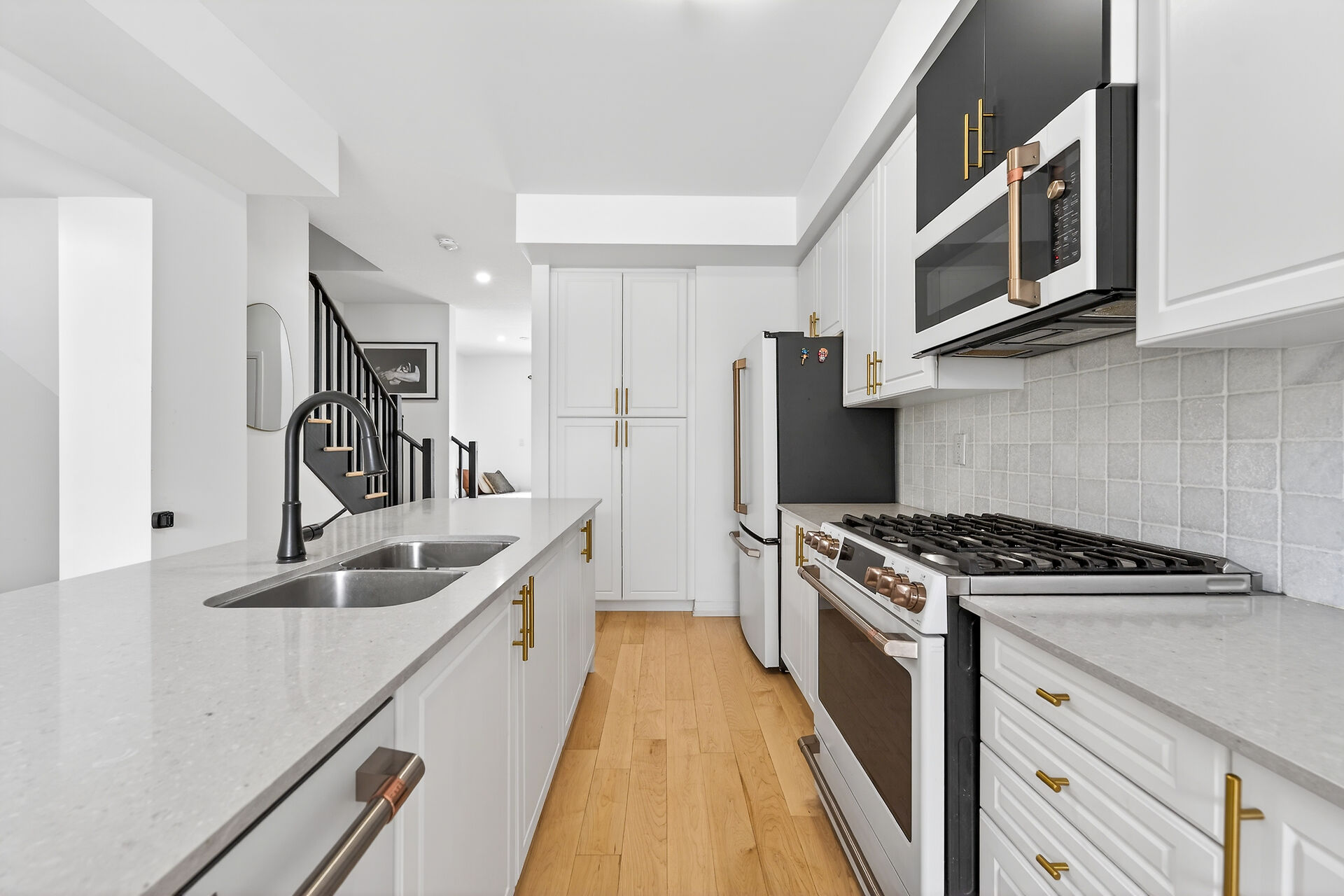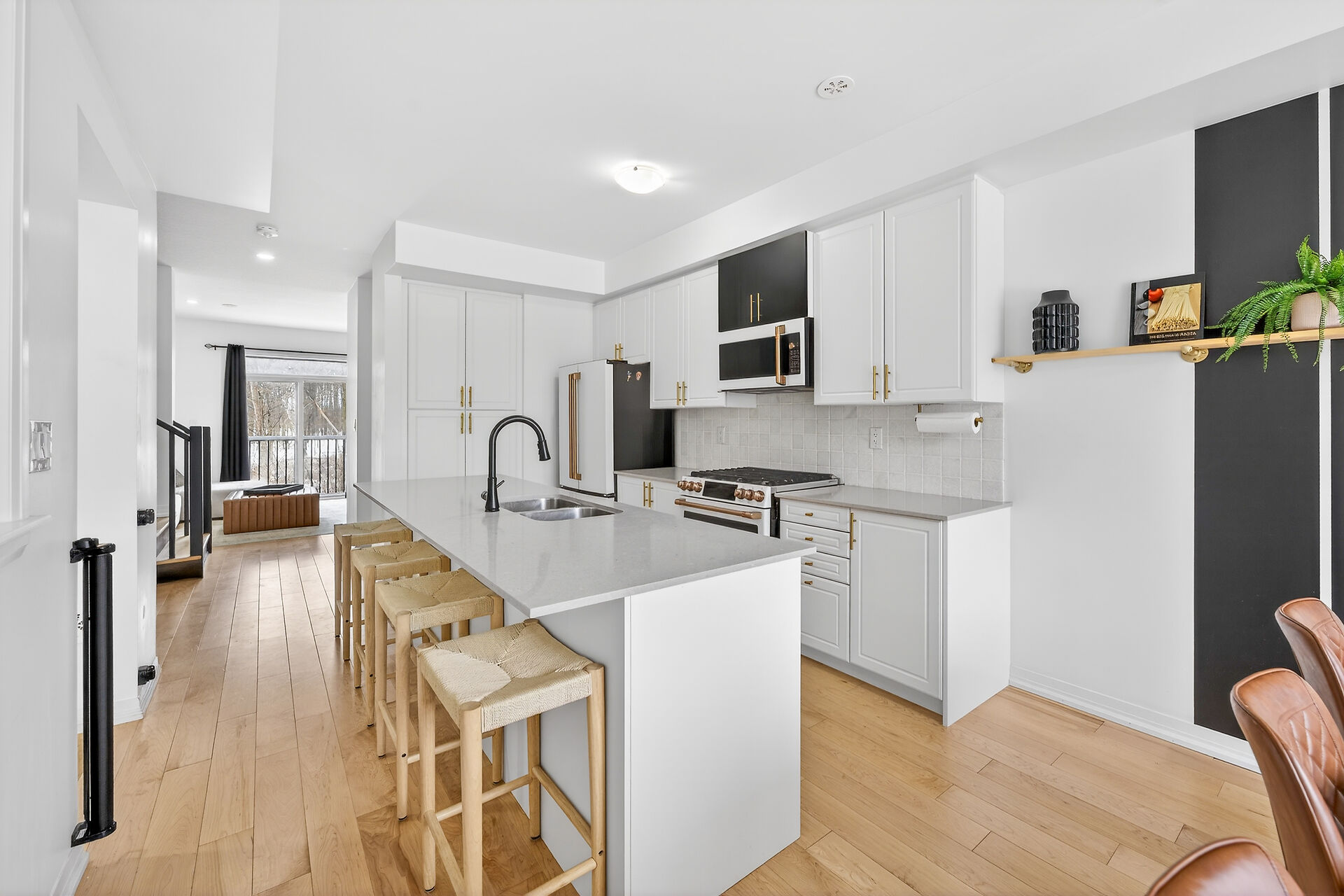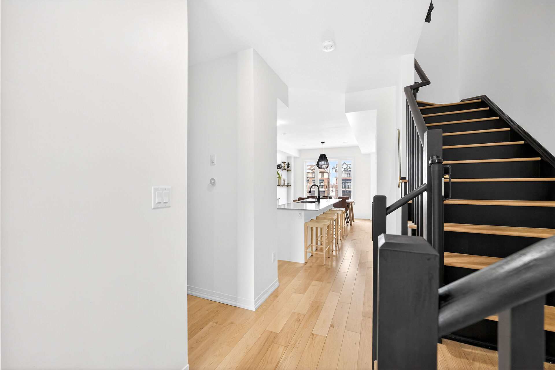 Backing onto a serene forest on Stoney Creek Mountain, this impeccably upgraded 3-year-old executive townhouse offers a rare combination of modern luxury and natural privacy. The move-in-ready interior is completely carpet-free, featuring engineered hardwood throughout, a refinished designer staircase, and a fresh top-to-bottom professional paint job. High-end finishes abound, from the gourmet kitchen's luxury appliances (GE Cafe) to the spa-like primary ensuite with its custom walk-in shower and upgraded tiling. Thoughtful details like upgraded pot lights, designer faucets, and a new powder room vanity complement the open-concept layout, while the new wood deck and fenced backyard provide the perfect private oasis