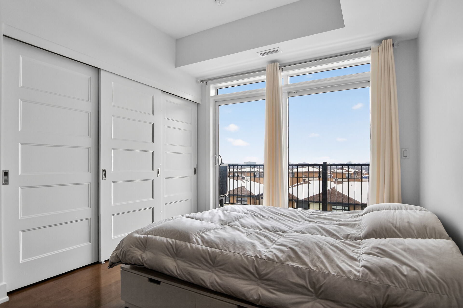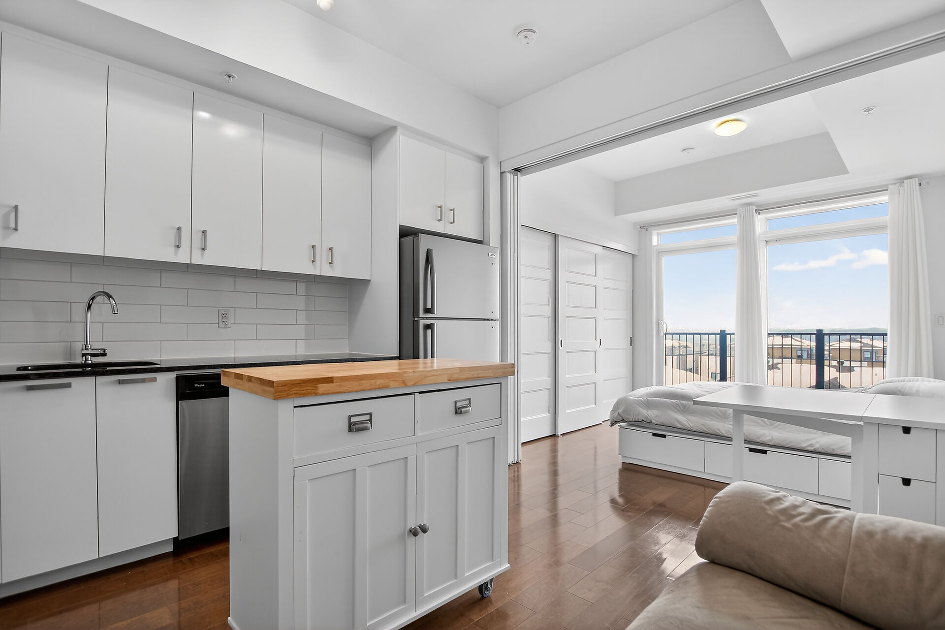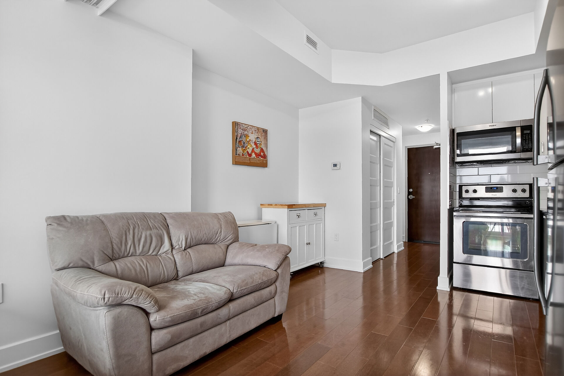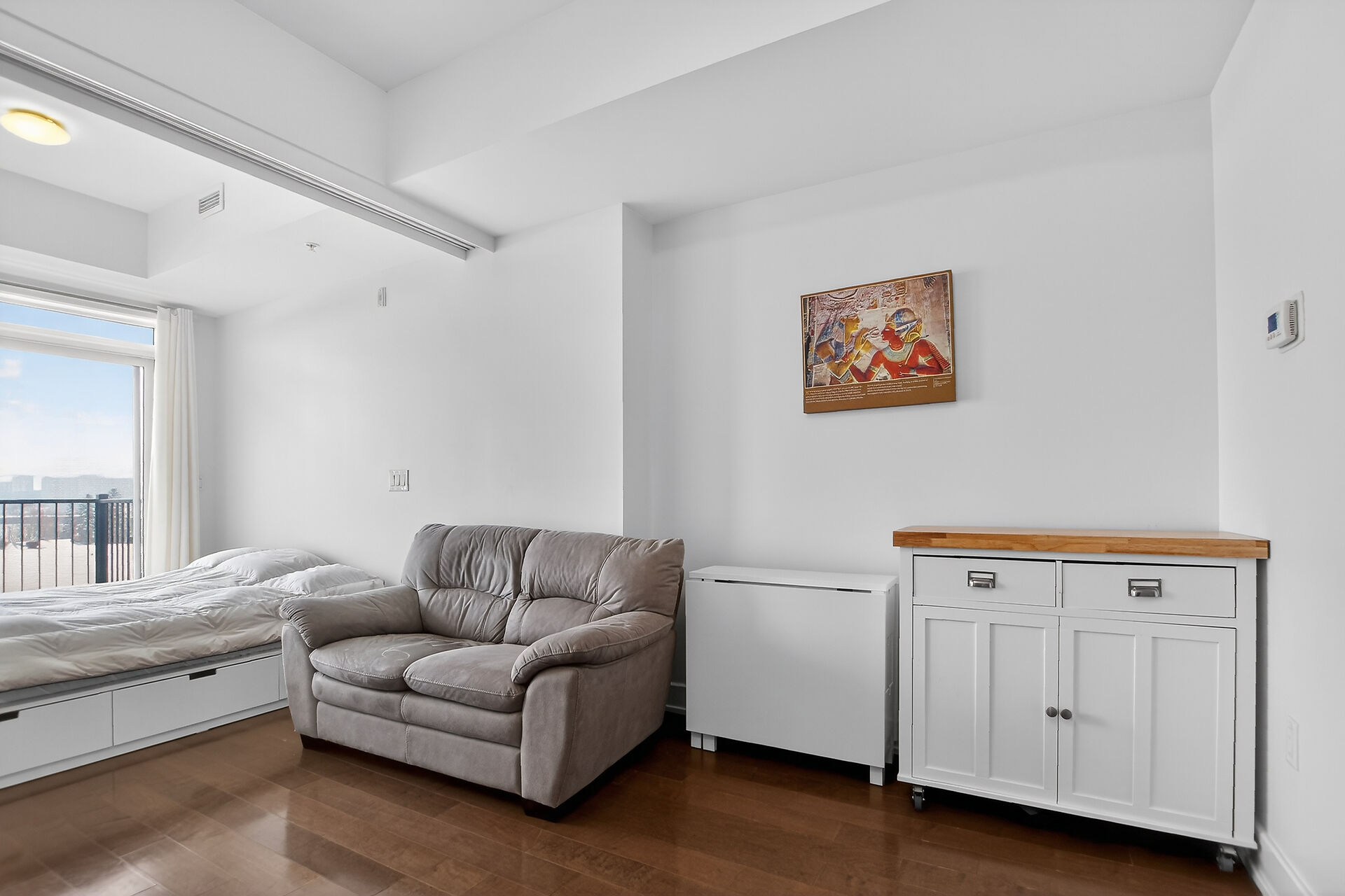 Welcome to this move-in ready condo in centrally located and amenities-filled Redwood Park & Qualicum area. Located on the top floor of this low-rise 4 level building, this bright & modern condo features hardwood floors, high ceilings and views of the city & the Gatineau Hills. The open concept living space offers a kitchen with Granite countertops, undermount sink, plenty of cabinetry, stainless steel appliances and flexible side living/dining area. Sliding panels separate the living space from the bedroom for on-demand privacy. This condo also hosts a stylish full bathroom, North facing balcony and convenient in-suite laundry. Condo includes underground parking, storage locker and can be sold fully furnished!