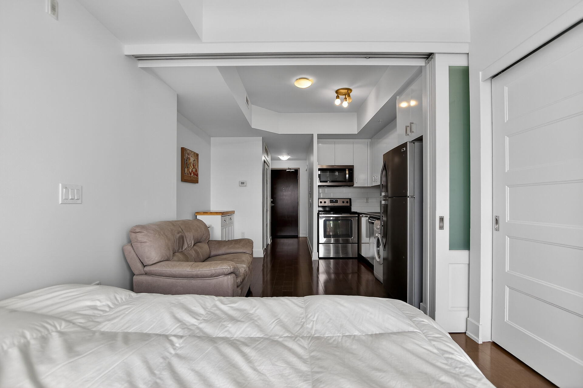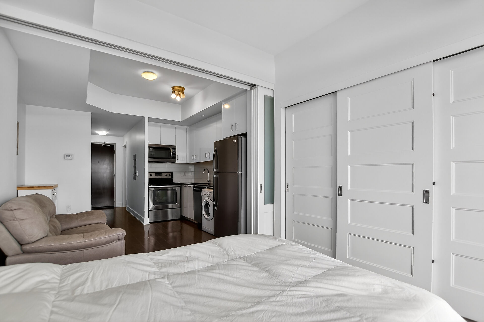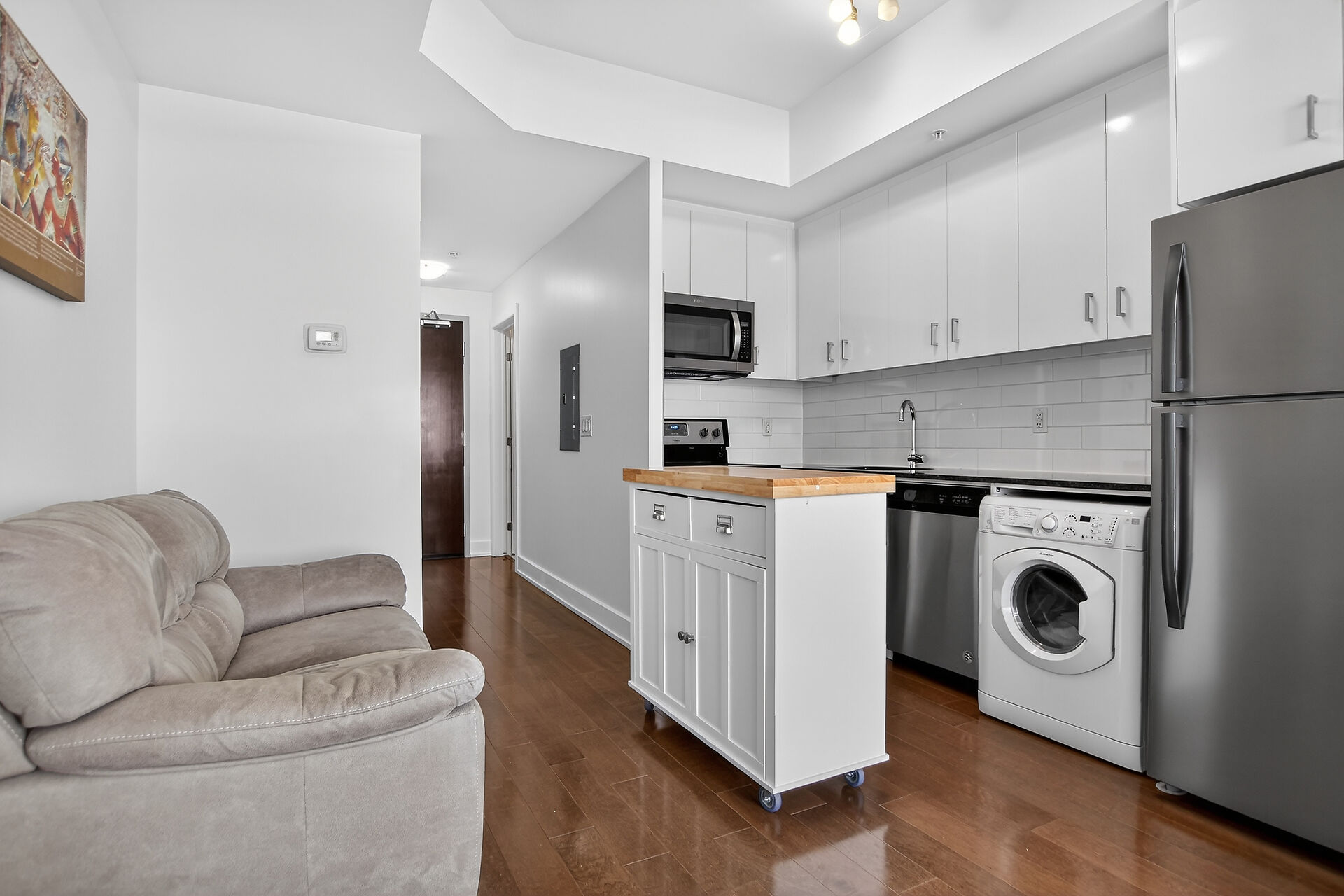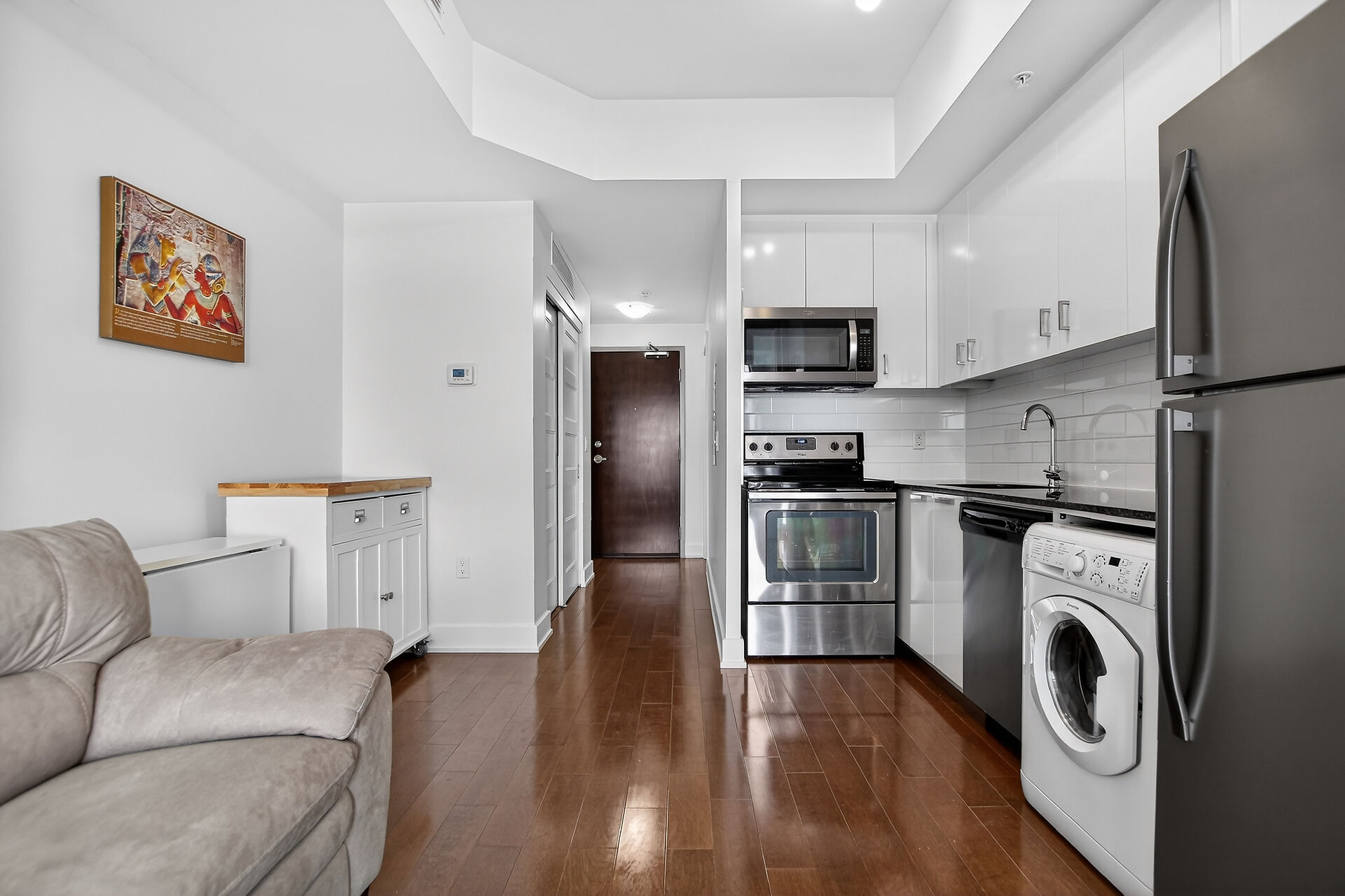 Welcome to this move-in ready condo in centrally located and amenities-filled Redwood Park & Qualicum area. Located on the top floor of this low-rise 4 level building, this bright & modern condo features hardwood floors, high ceilings and views of the city & the Gatineau Hills. The open concept living space offers a kitchen with Granite countertops, undermount sink, plenty of cabinetry, stainless steel appliances and flexible side living/dining area. Sliding panels separate the living space from the bedroom for on-demand privacy. This condo also hosts a stylish full bathroom, North facing balcony and convenient in-suite laundry. Condo includes underground parking, storage locker and can be sold fully furnished!