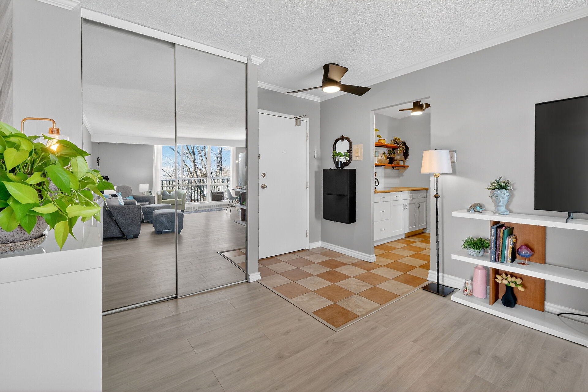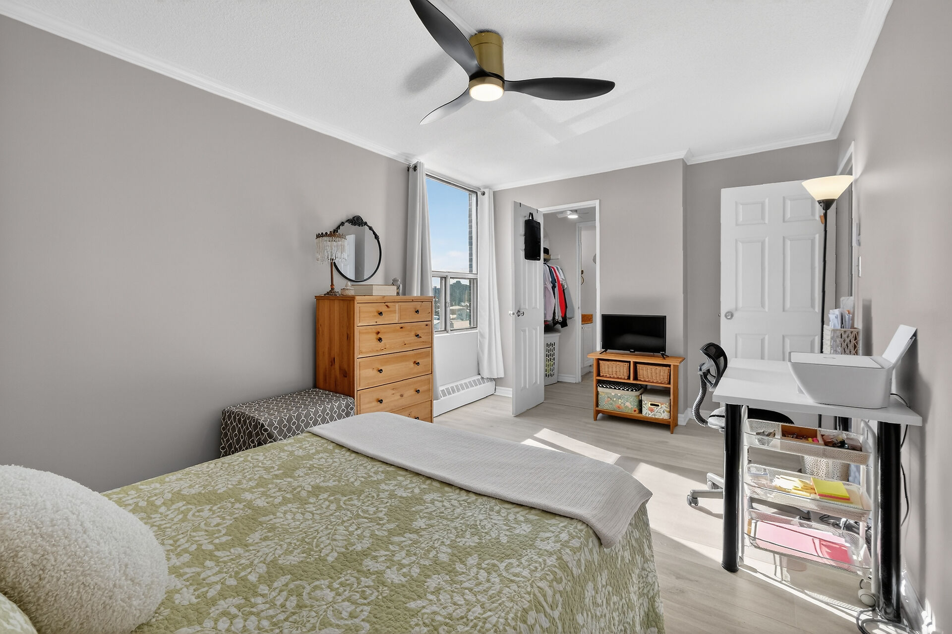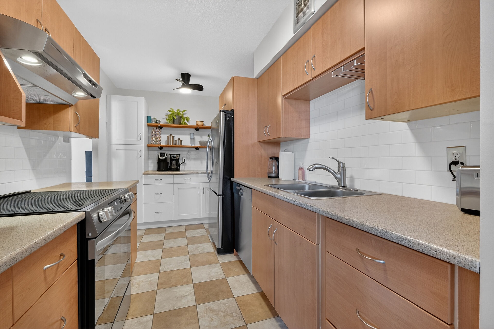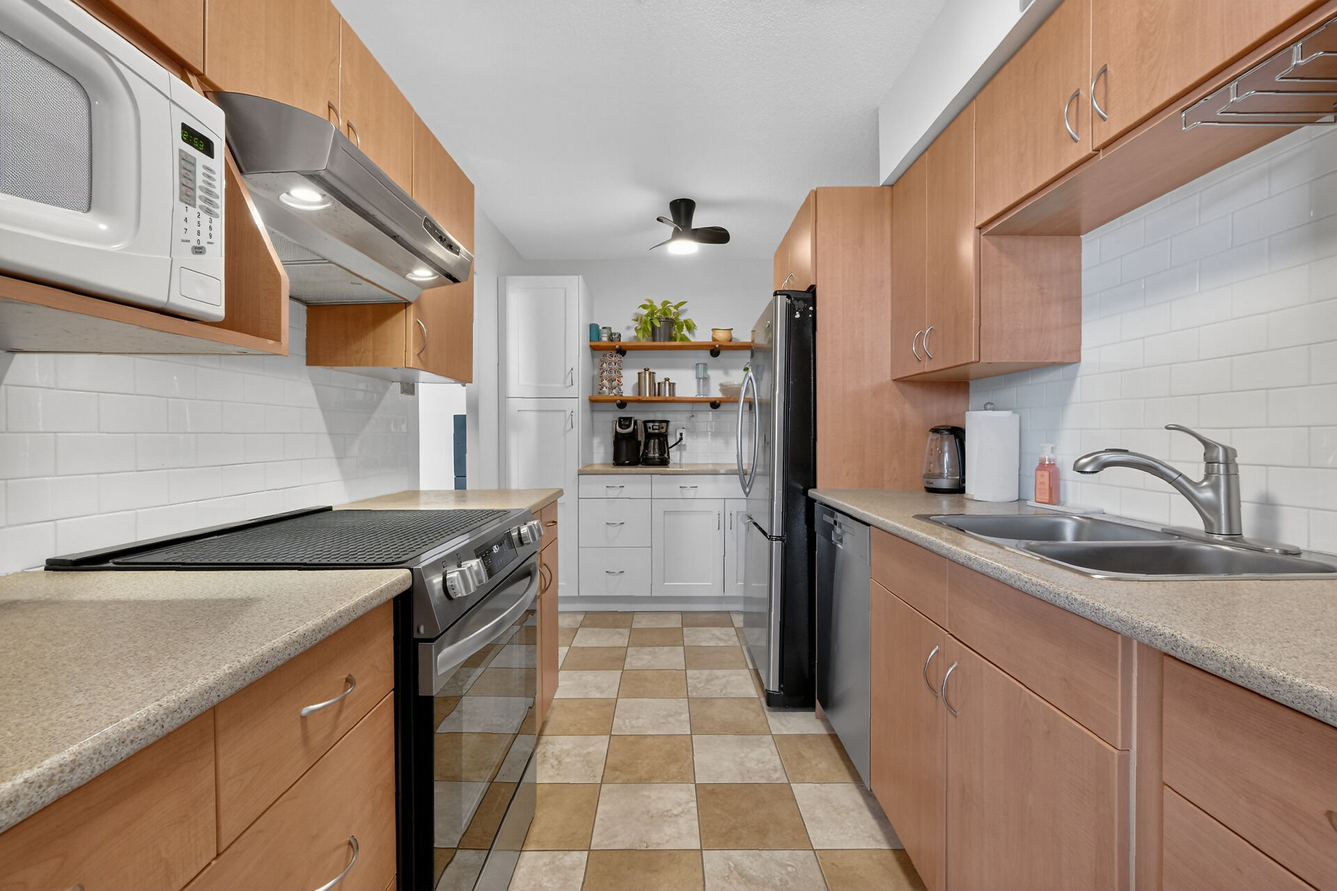 Enviable corner unit on the 4th floor enjoys space and sunlight throughout, with unobstructed eastern view. Meticulously maintained two bedrooms, two bathrooms, large living room/dining room with a well laid out galley kitchen. Tastefully updated, with additional cupboards, cabinets and drawers, offering ample storage and counterspace. Primary bedroom has walk-in closet & a 2-pce ensuite. Second bedroom, and a full bathroom. Bathroom reno 2024. High end laminate flooring throughout in recent years. INCLUDED in the condo fees are the heat, hydro and water. Lower level Storage #403, and easy underground parking #53 - Exclusive use. Fabulous amenities and close to so much!