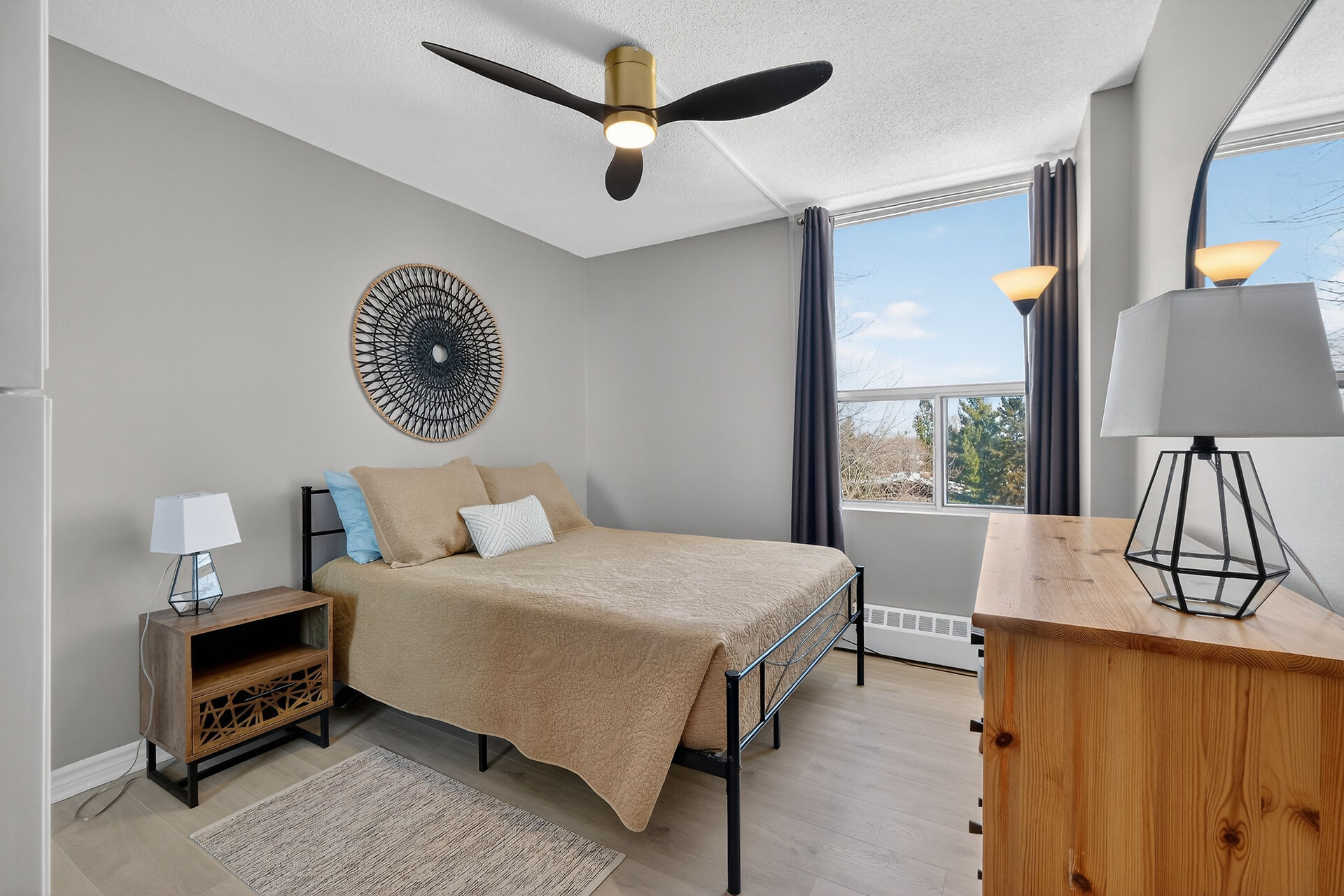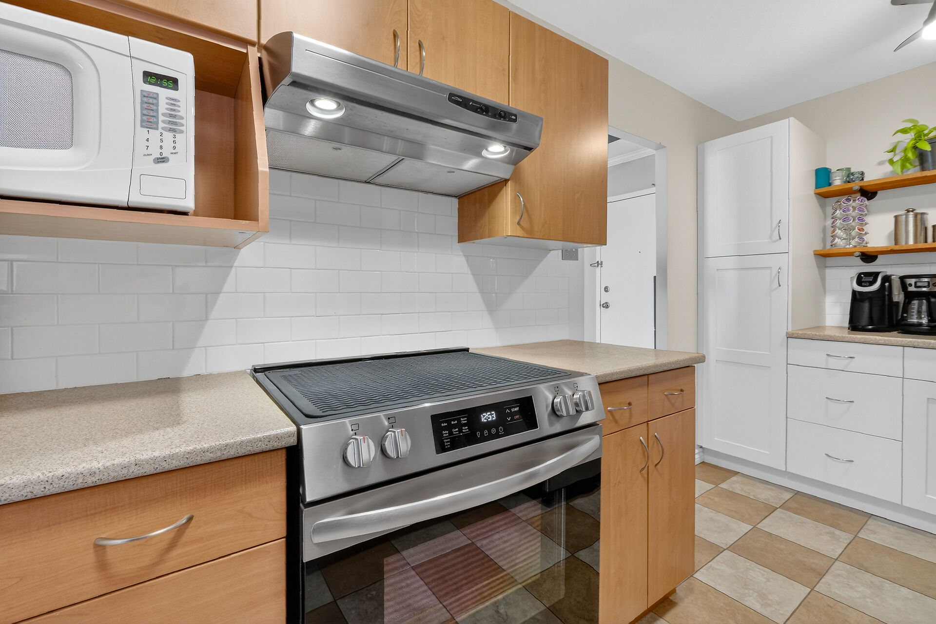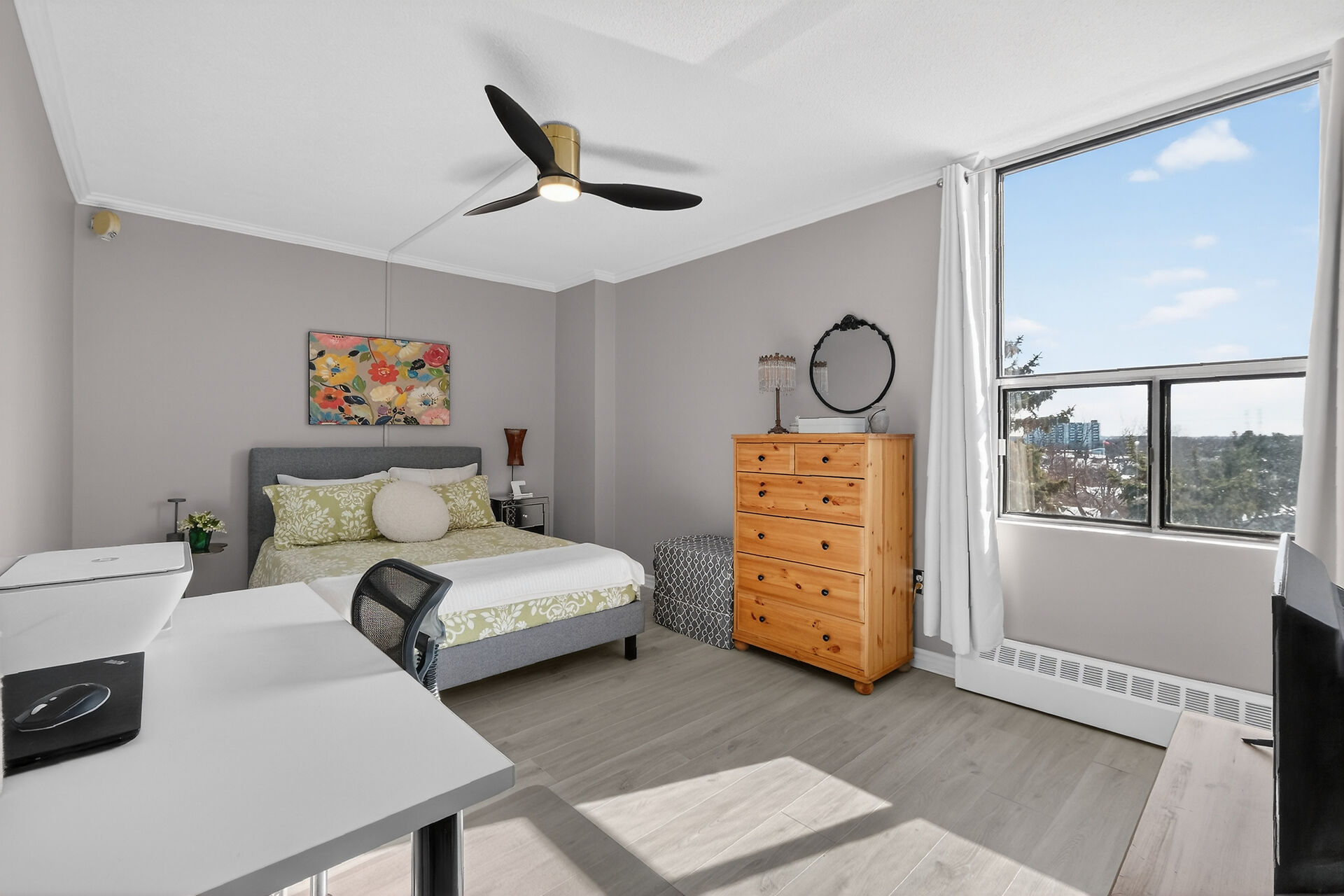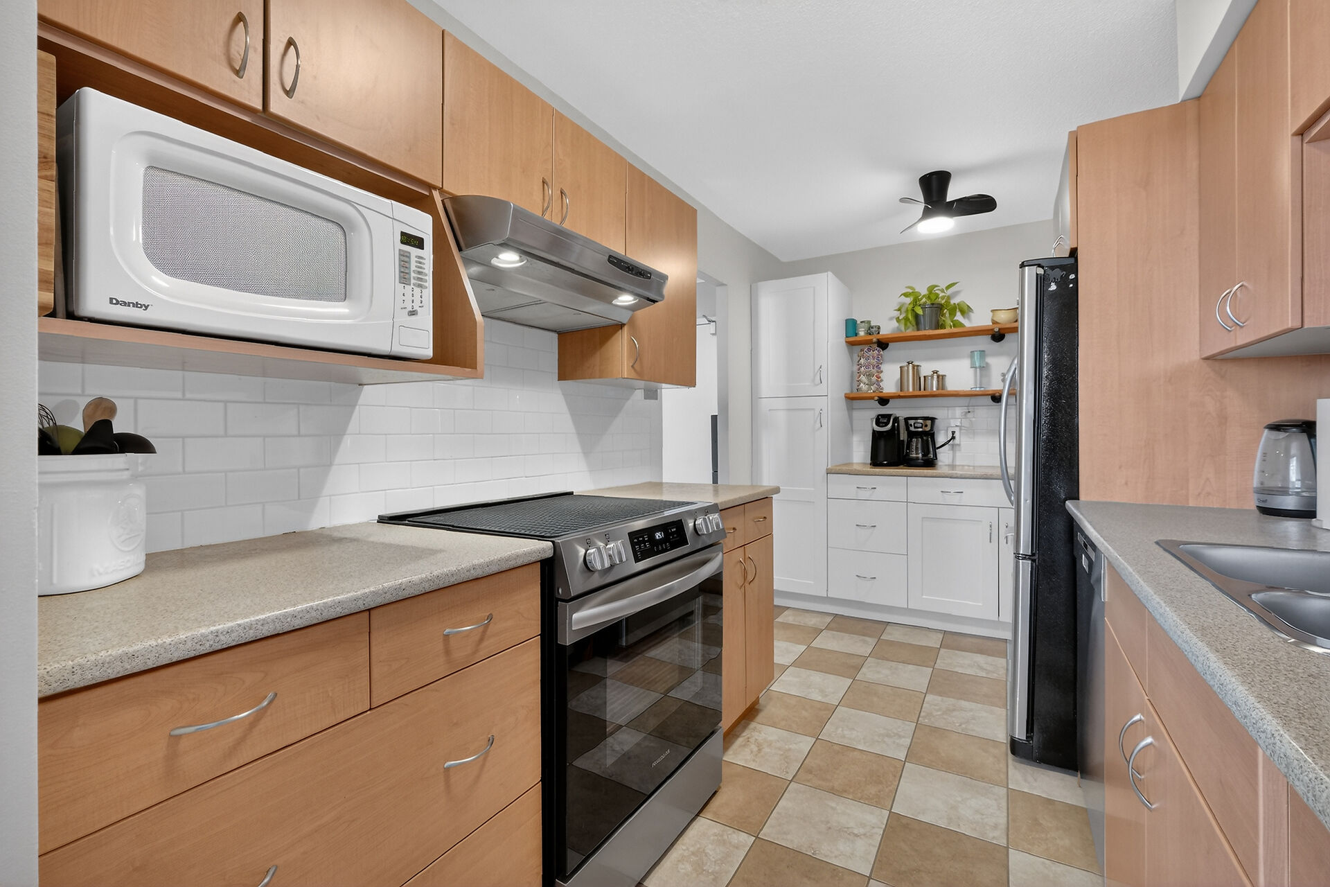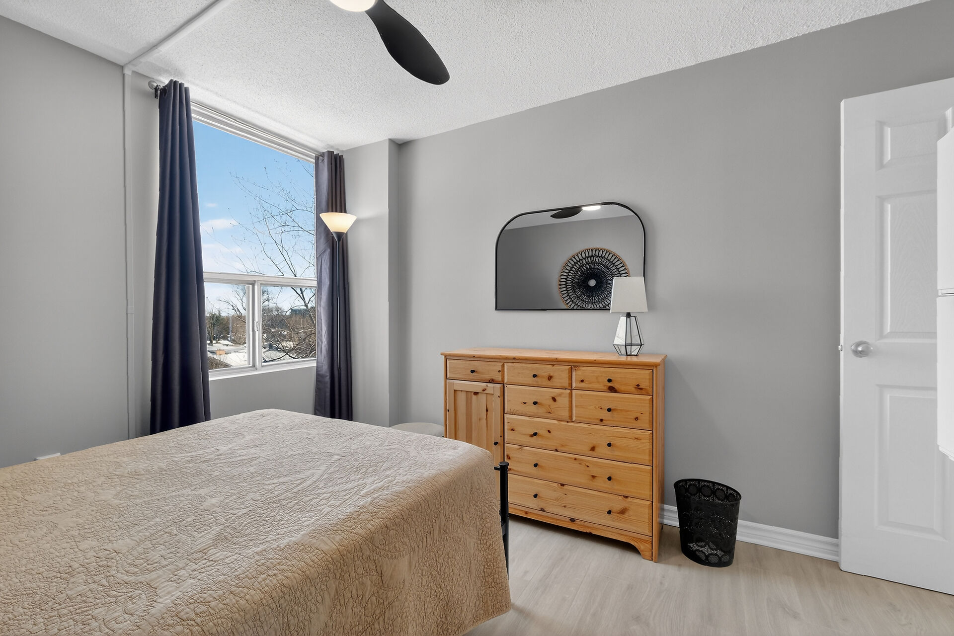 Enviable corner unit on the 4th floor enjoys space and sunlight throughout, with unobstructed eastern view. Meticulously maintained two bedrooms, two bathrooms, large living room/dining room with a well laid out galley kitchen. Tastefully updated, with additional cupboards, cabinets and drawers, offering ample storage and counterspace. Primary bedroom has walk-in closet & a 2-pce ensuite. Second bedroom, and a full bathroom. Bathroom reno 2024. High end laminate flooring throughout in recent years. INCLUDED in the condo fees are the heat, hydro and water. Lower level Storage #403, and easy underground parking #53 - Exclusive use. Fabulous amenities and close to so much!