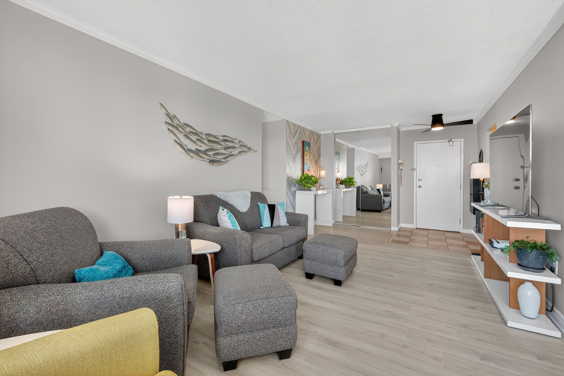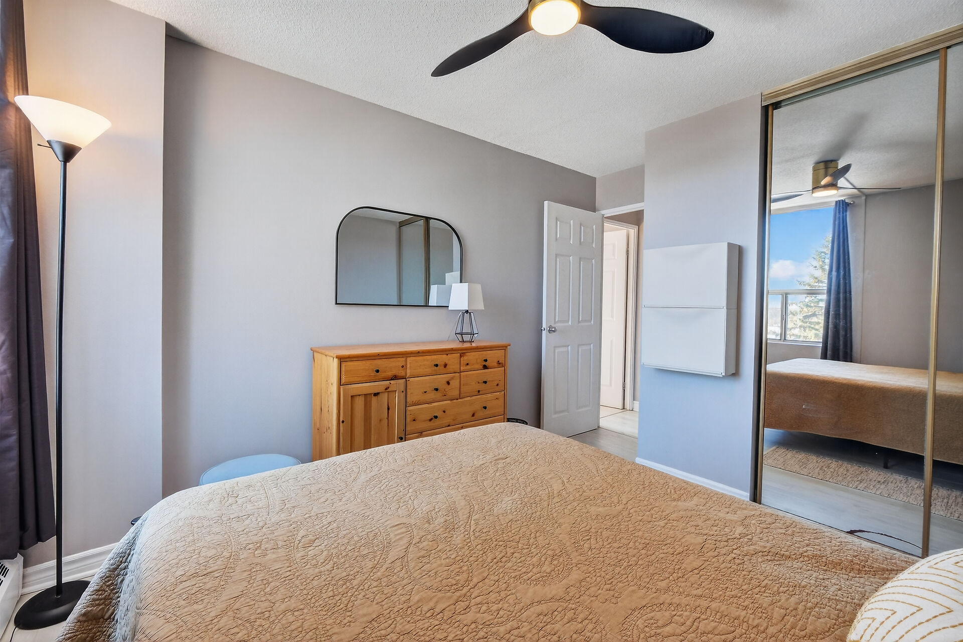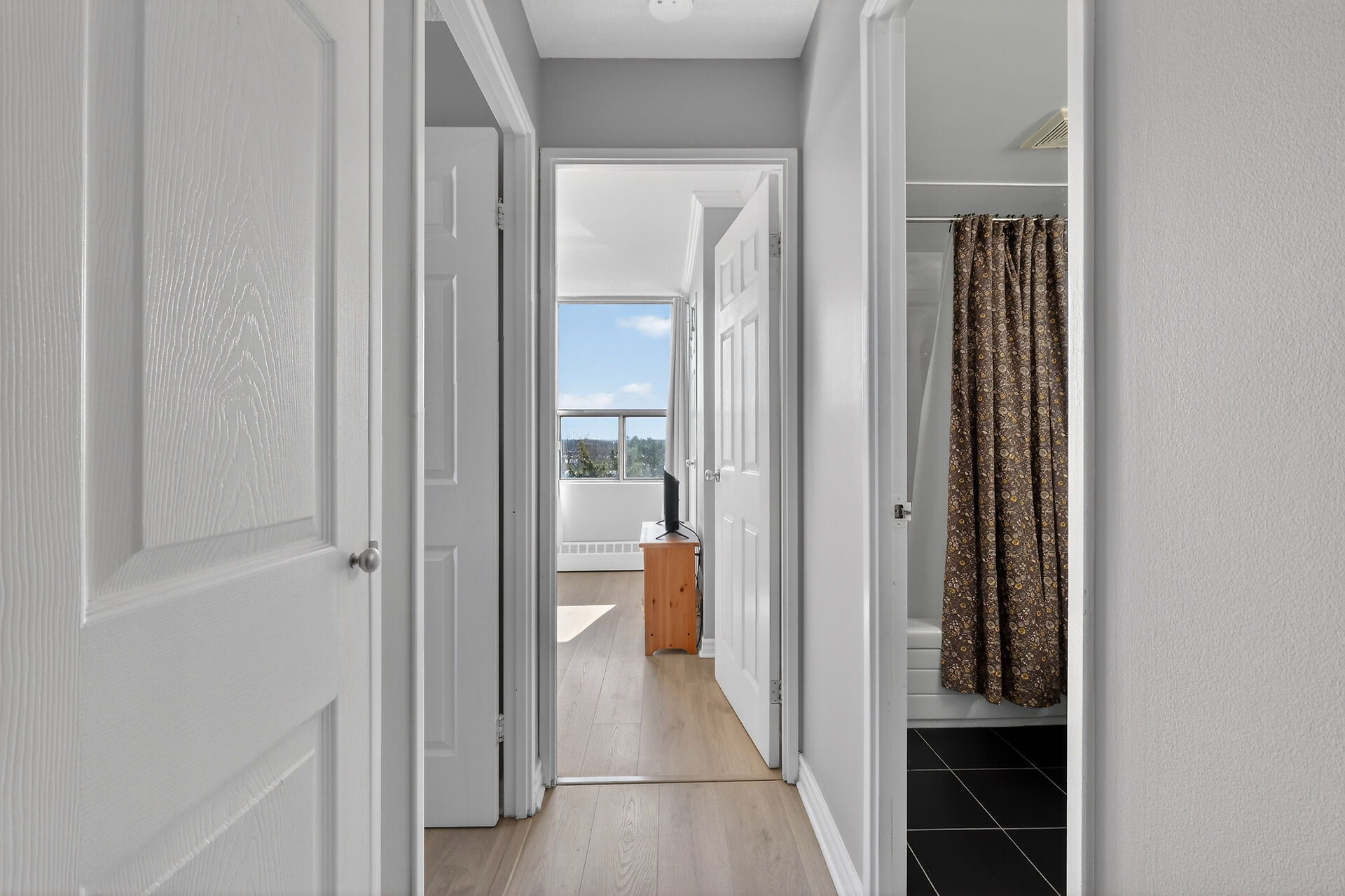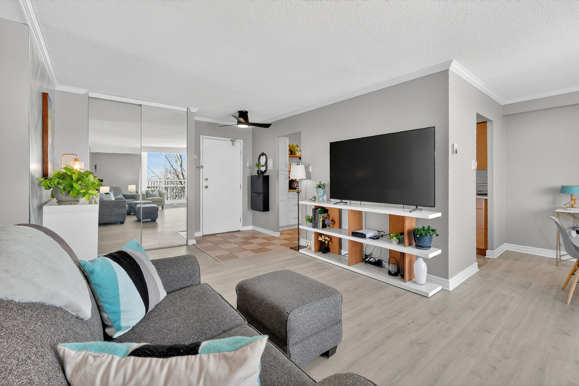 Enviable corner unit on the 4th floor enjoys space and sunlight throughout, with unobstructed eastern view. Meticulously maintained two bedrooms, two bathrooms, large living room/dining room with a well laid out galley kitchen. Tastefully updated, with additional cupboards, cabinets and drawers, offering ample storage and counterspace. Primary bedroom has walk-in closet & a 2-pce ensuite. Second bedroom, and a full bathroom. Bathroom reno 2024. High end laminate flooring throughout in recent years. INCLUDED in the condo fees are the heat, hydro and water. Lower level Storage #403, and easy underground parking #53 - Exclusive use. Fabulous amenities and close to so much!