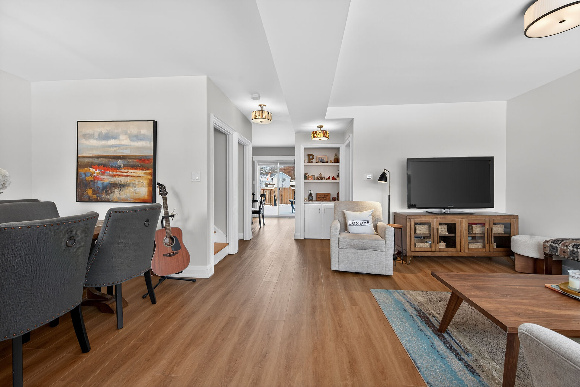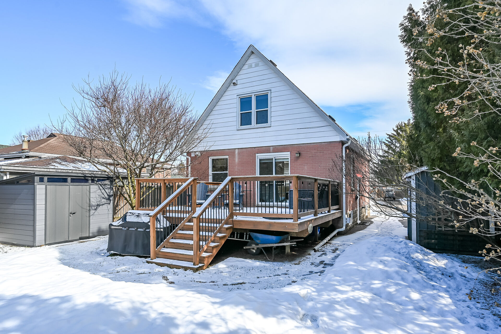 Fabulous opportunity to get into Dundas. Walk to many amenities, including the Olde town, parks, schools, and the hwy 403 access is nearby. Open concept, freshly painted main floor, updated kitchen 2/SS appliances, finished basement w/gas fp & a murphy bed for overnight guests. 2.5 baths, and a patio door walk out to a large deck overlooking the fenced yard. 2 garden sheds for storage, this property is turn key.