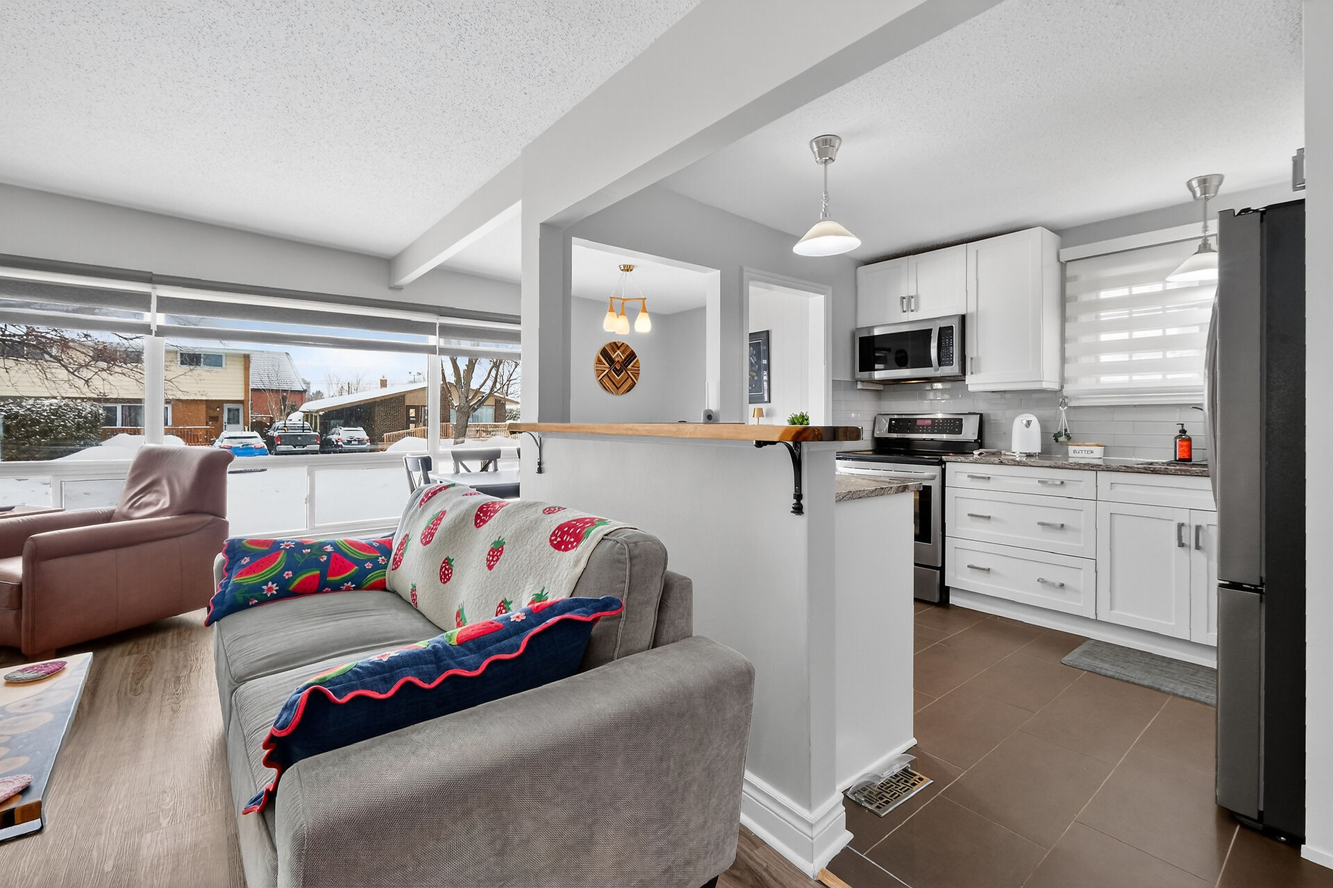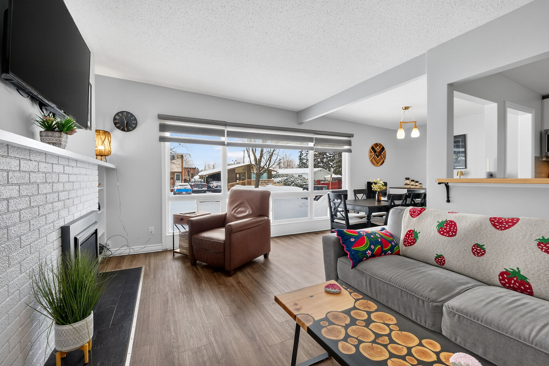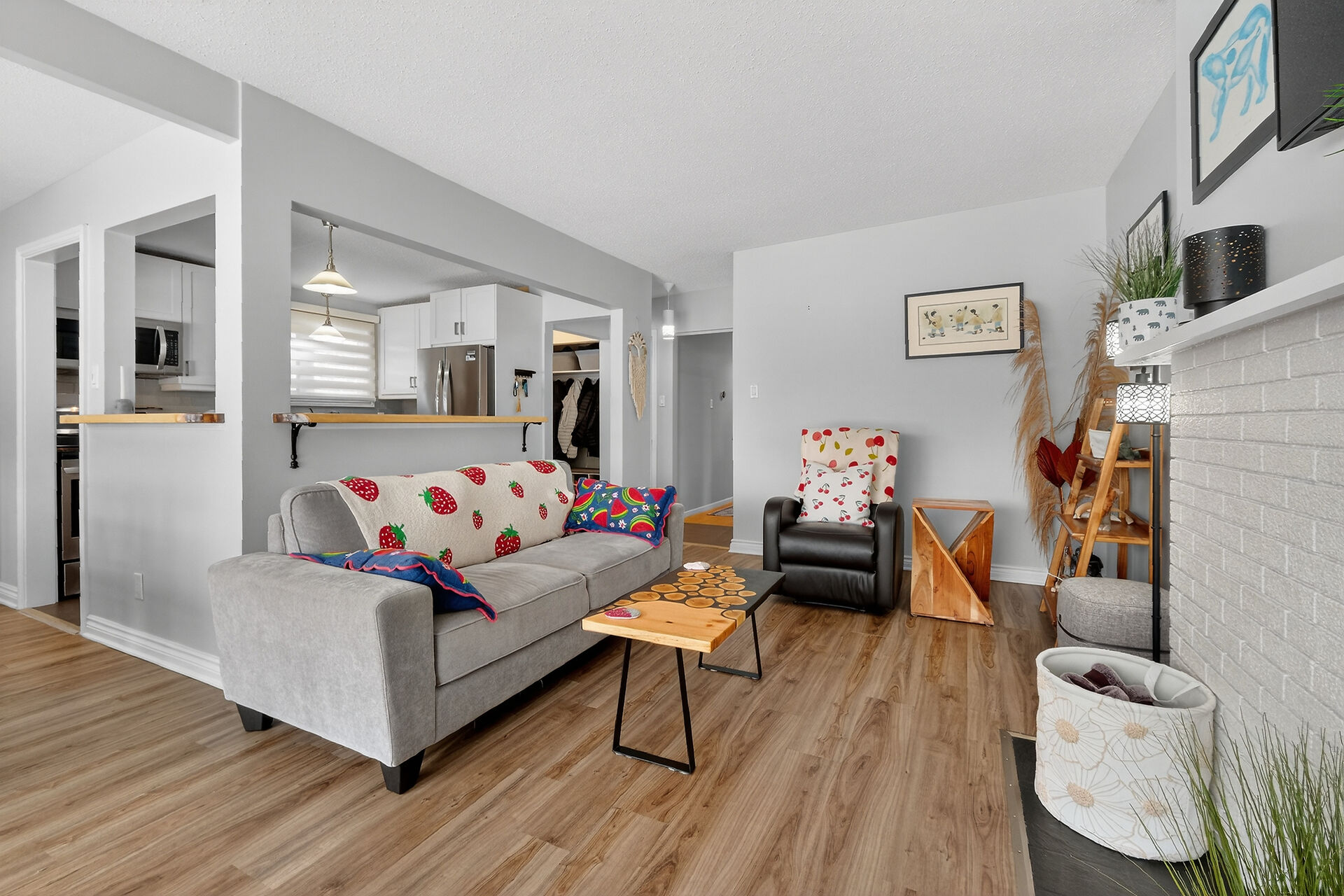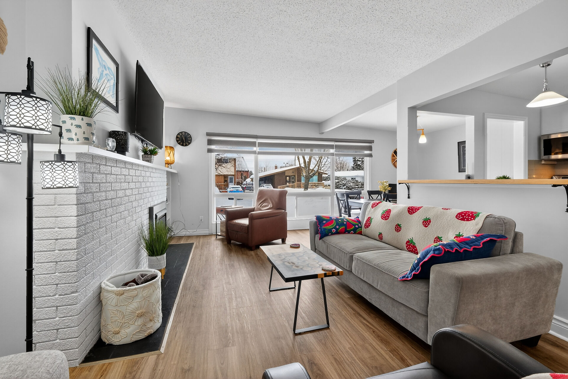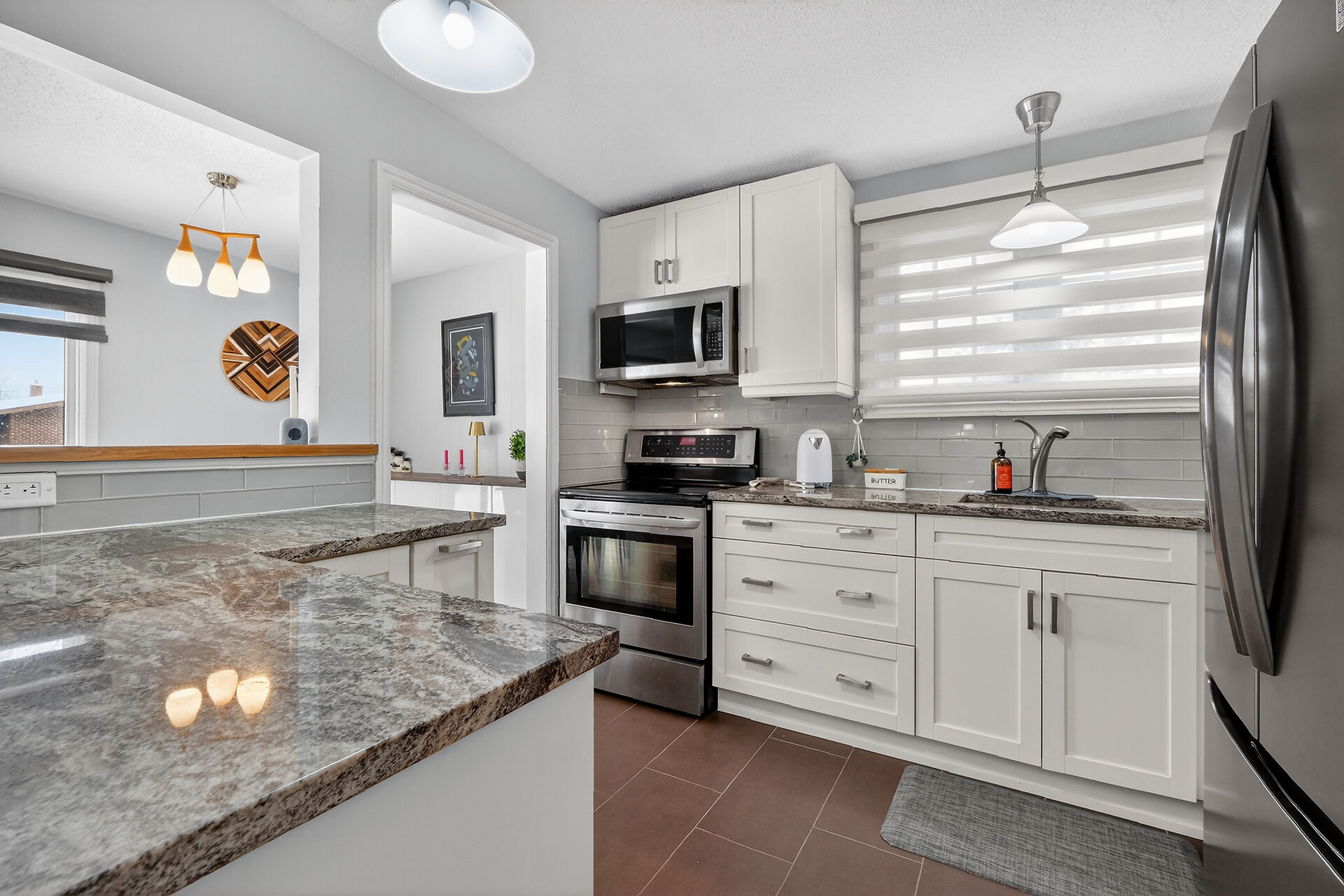 Welcome to this move-in ready bungalow located on a quiet street & just down the road from Hawthorne Park. The bright and open-concept main level offers a renovated kitchen (2024) with Quartz countertops, Stainless steel appliances, modern backsplash & handy pantry. From the kitchen you have clear views of your dining room with built-in cabinet and of your living room with a cozy gas fireplace surrounded by a classic brick wall. Moving down the hall you find 2 well-sized secondary bedrooms and a spacious primary bedroom with closet organizers along with an updated & magazine-worthy 5pc bathroom with Quartz countertops, dual sinks and stylish tiled shower.
