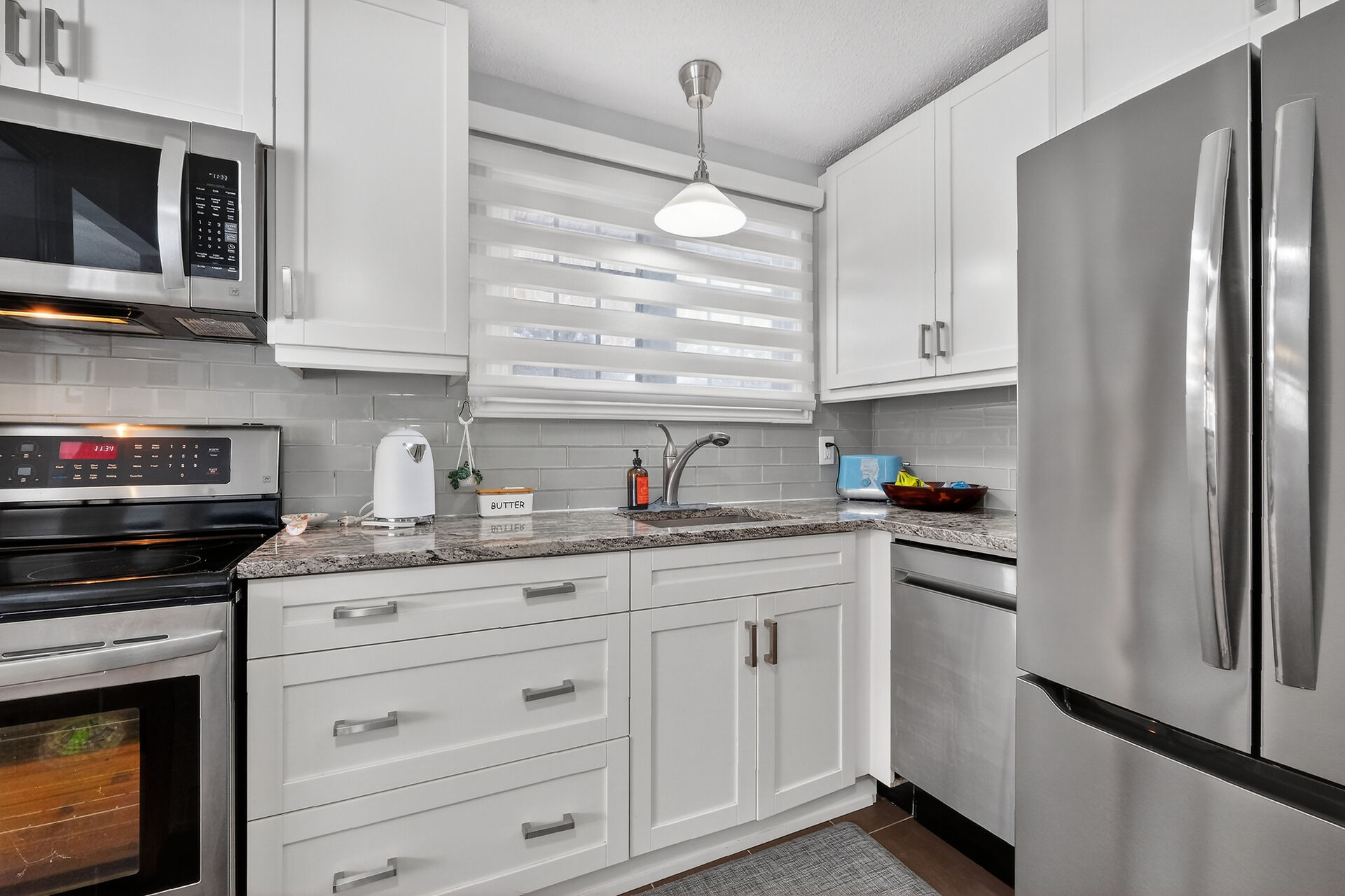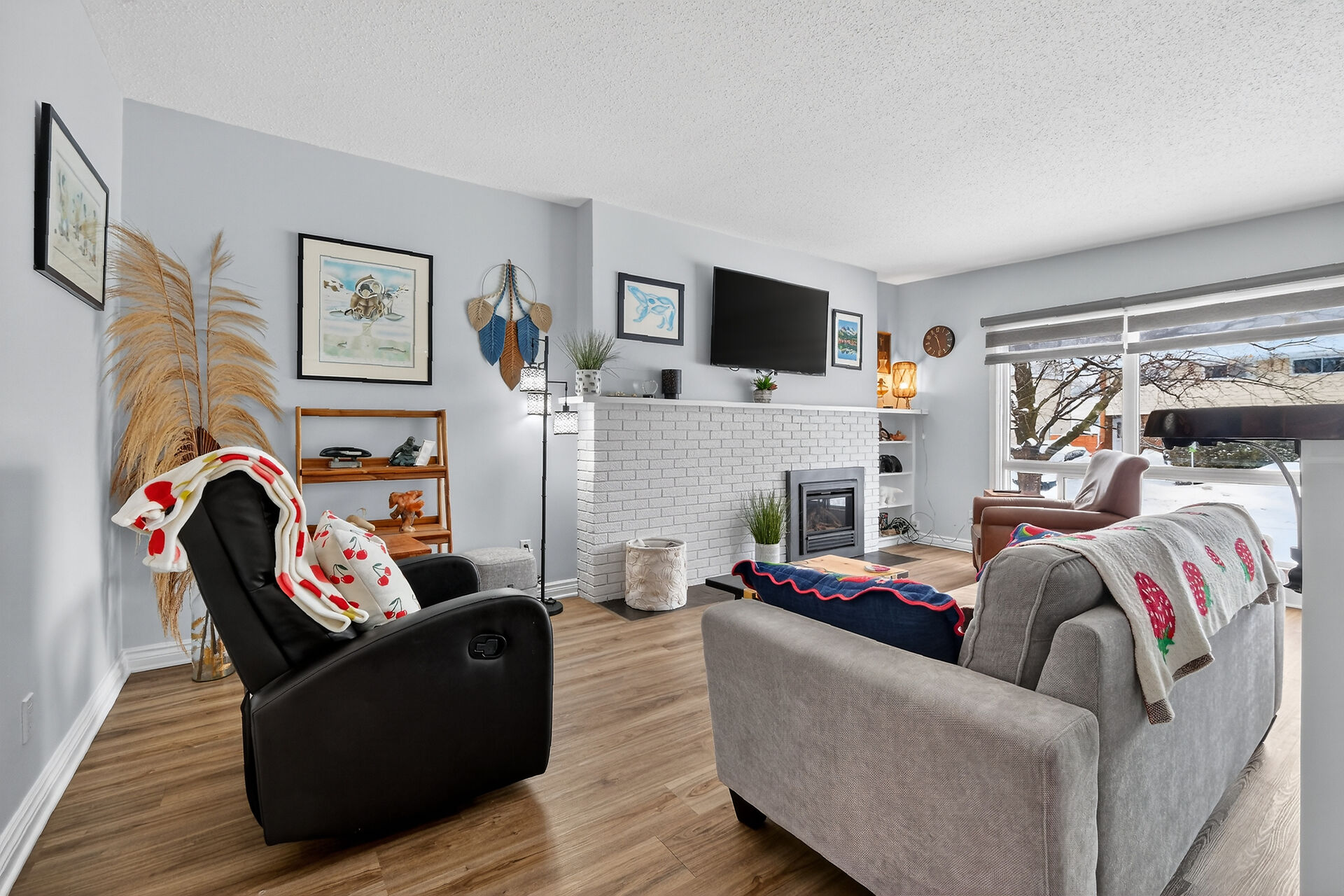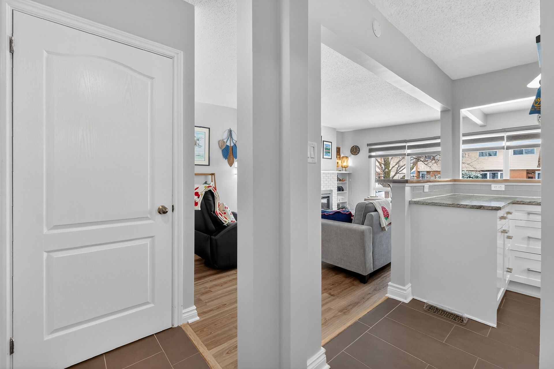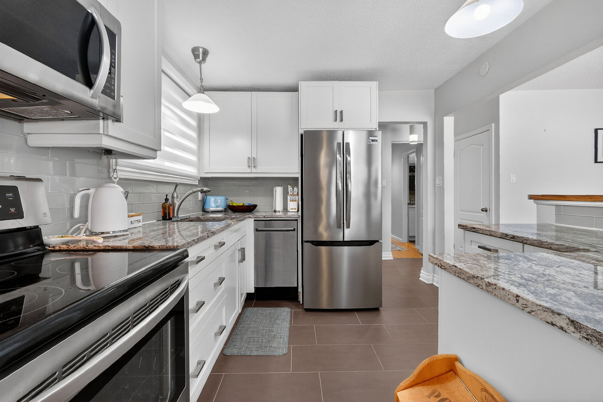 Welcome to this move-in ready bungalow located on a quiet street & just down the road from Hawthorne Park. The bright and open-concept main level offers a renovated kitchen (2024) with Quartz countertops, Stainless steel appliances, modern backsplash & handy pantry. From the kitchen you have clear views of your dining room with built-in cabinet and of your living room with a cozy gas fireplace surrounded by a classic brick wall. Moving down the hall you find 2 well-sized secondary bedrooms and a spacious primary bedroom with closet organizers along with an updated & magazine-worthy 5pc bathroom with Quartz countertops, dual sinks and stylish tiled shower.