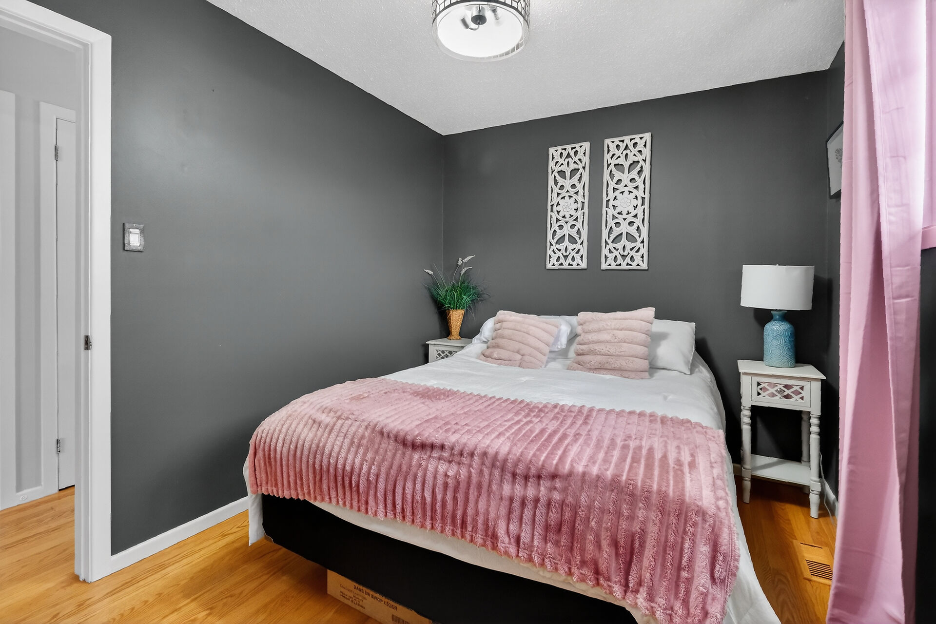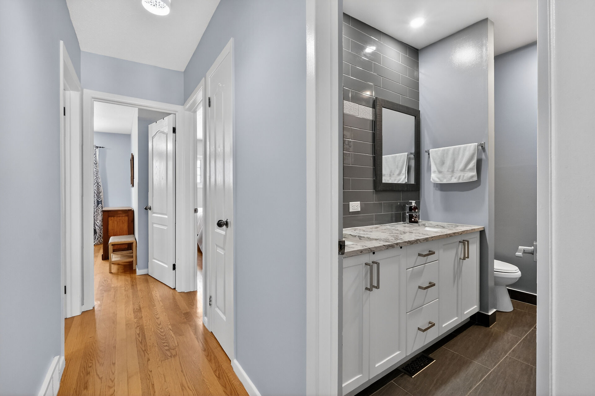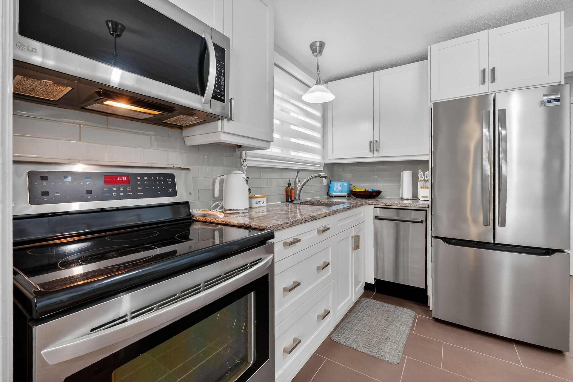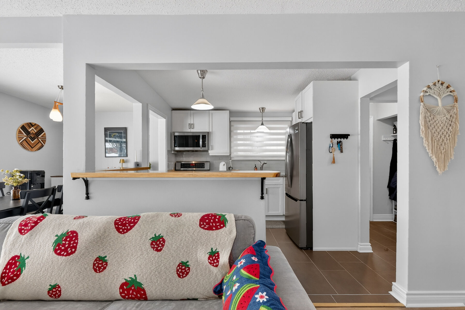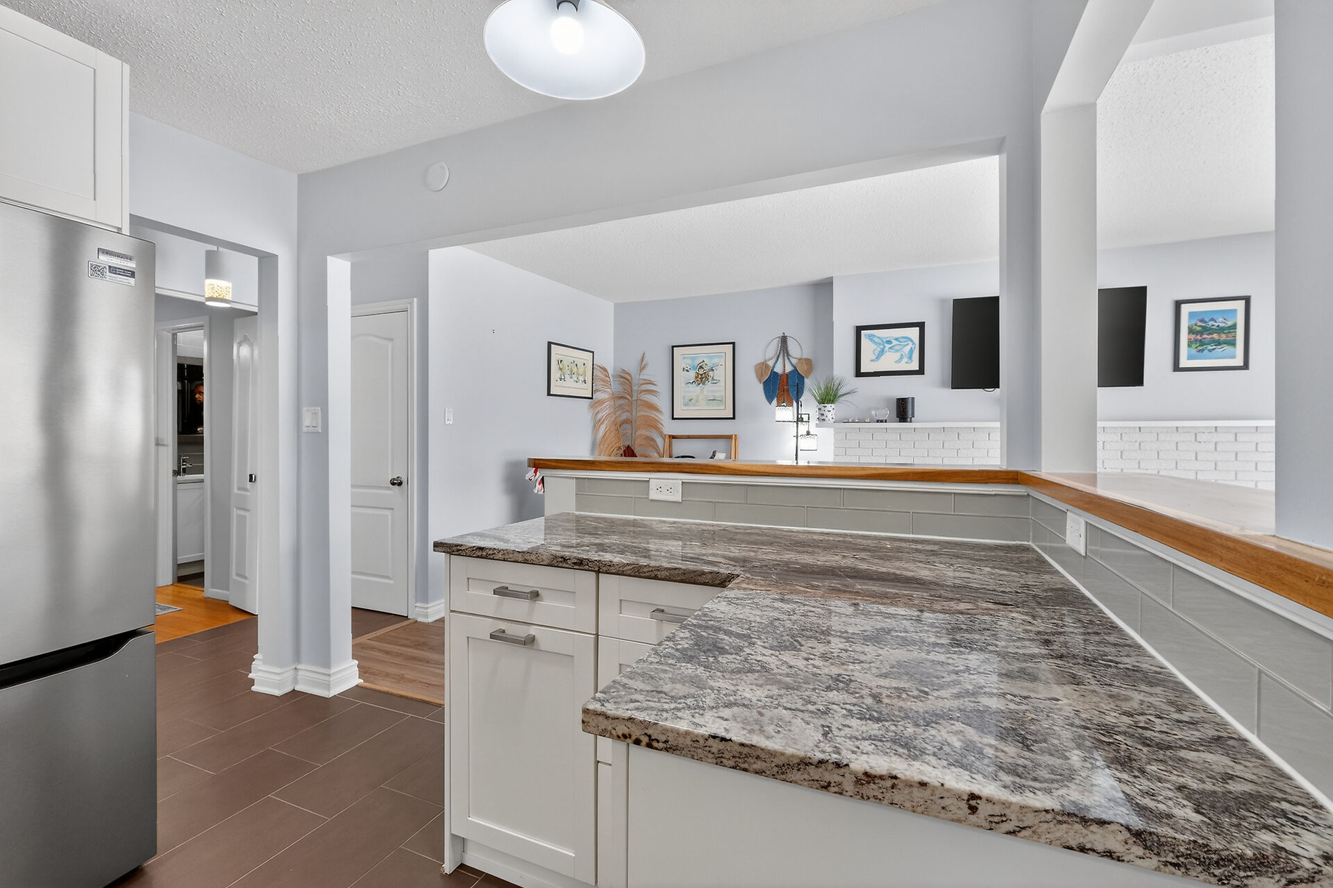 Welcome to this move-in ready bungalow located on a quiet street & just down the road from Hawthorne Park. The bright and open-concept main level offers a renovated kitchen (2024) with Quartz countertops, Stainless steel appliances, modern backsplash & handy pantry. From the kitchen you have clear views of your dining room with built-in cabinet and of your living room with a cozy gas fireplace surrounded by a classic brick wall. Moving down the hall you find 2 well-sized secondary bedrooms and a spacious primary bedroom with closet organizers along with an updated & magazine-worthy 5pc bathroom with Quartz countertops, dual sinks and stylish tiled shower.
