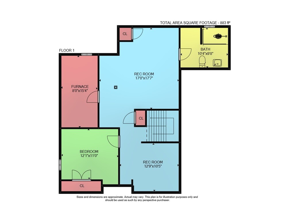Floor 1: 883 sq ft