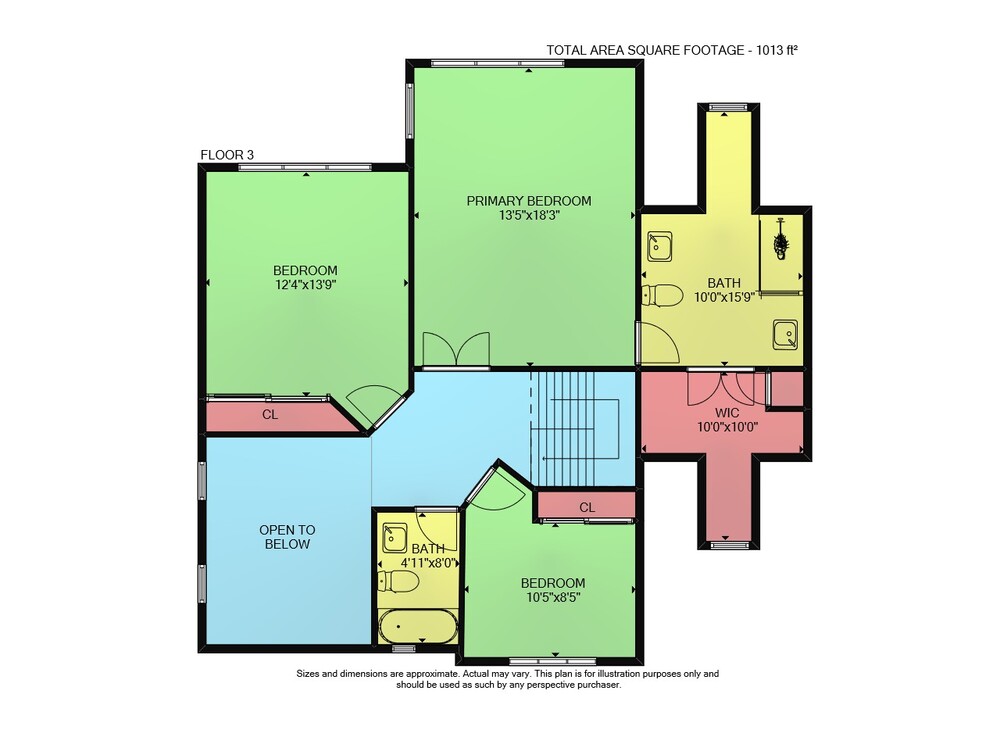 Floor 2: 1050 sq ft, Floor 3: 1013 sq ft,