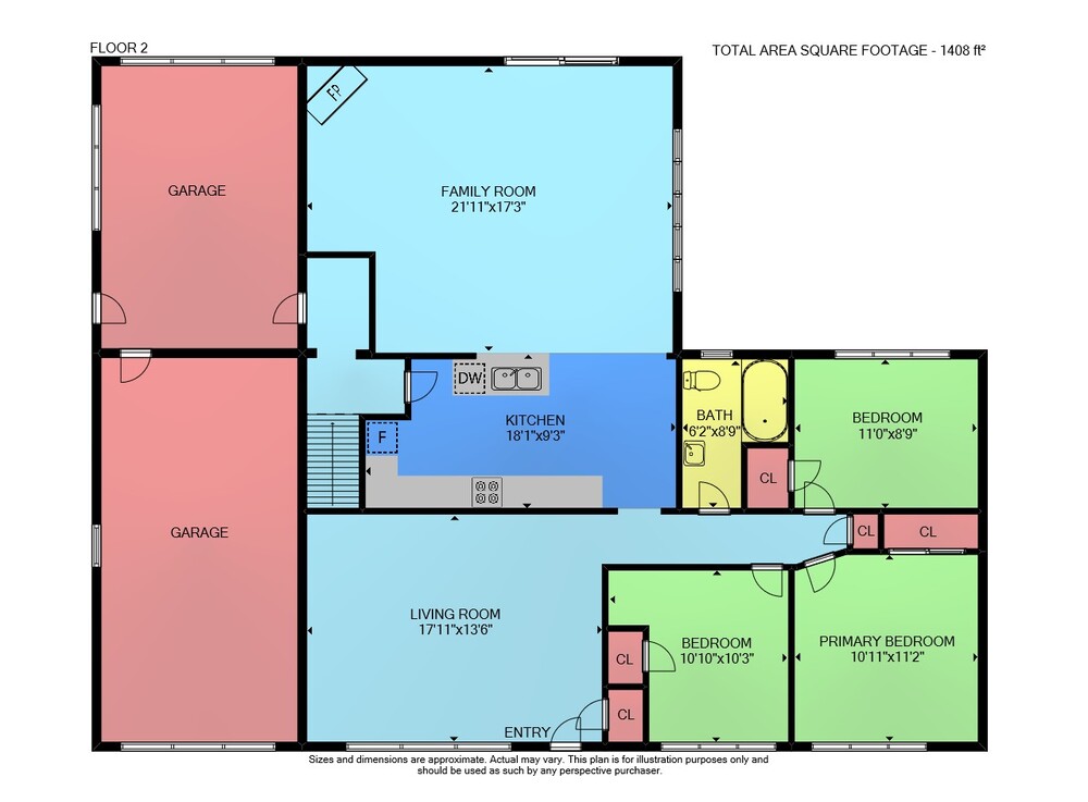 Floor 2: 1408 sq ft,