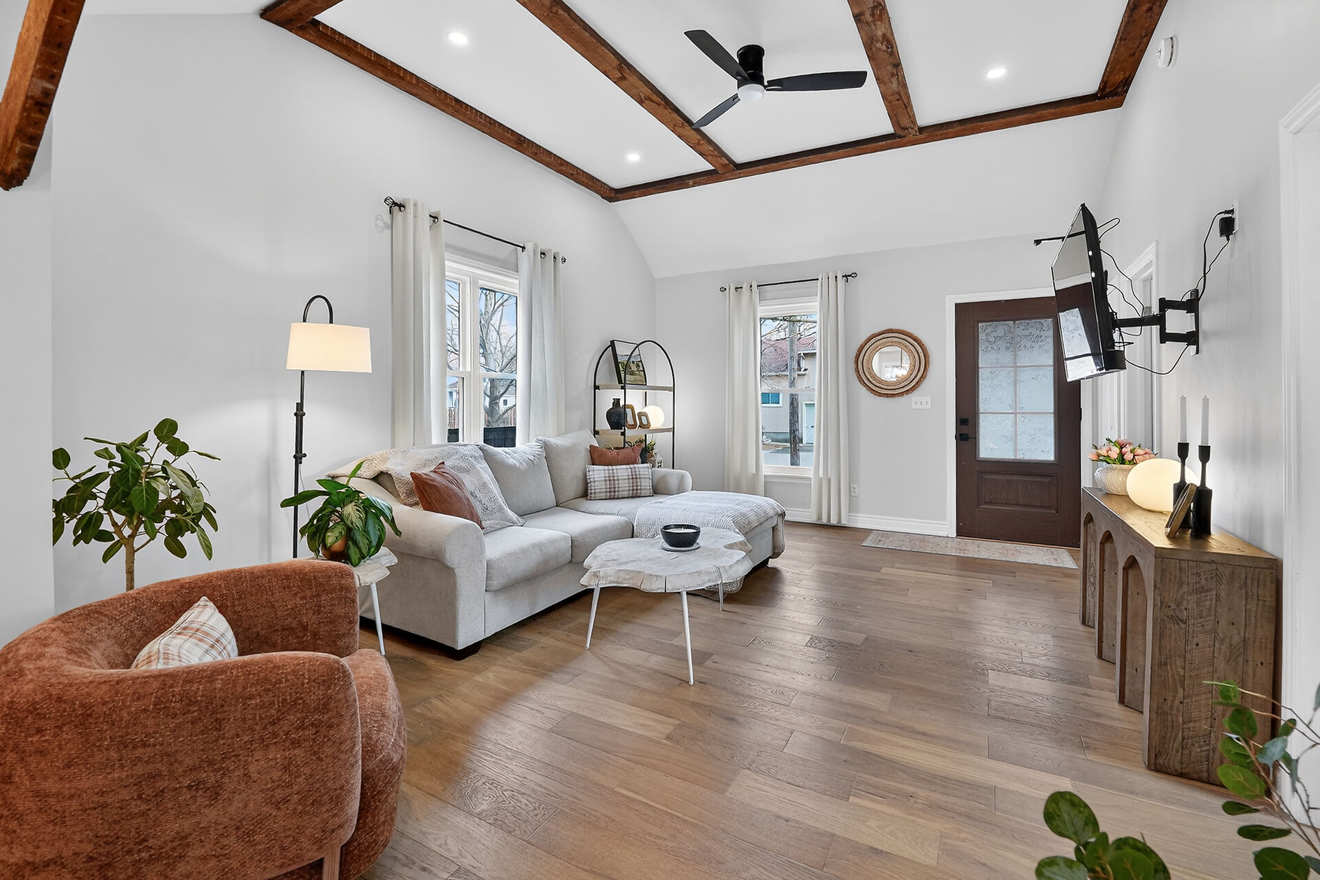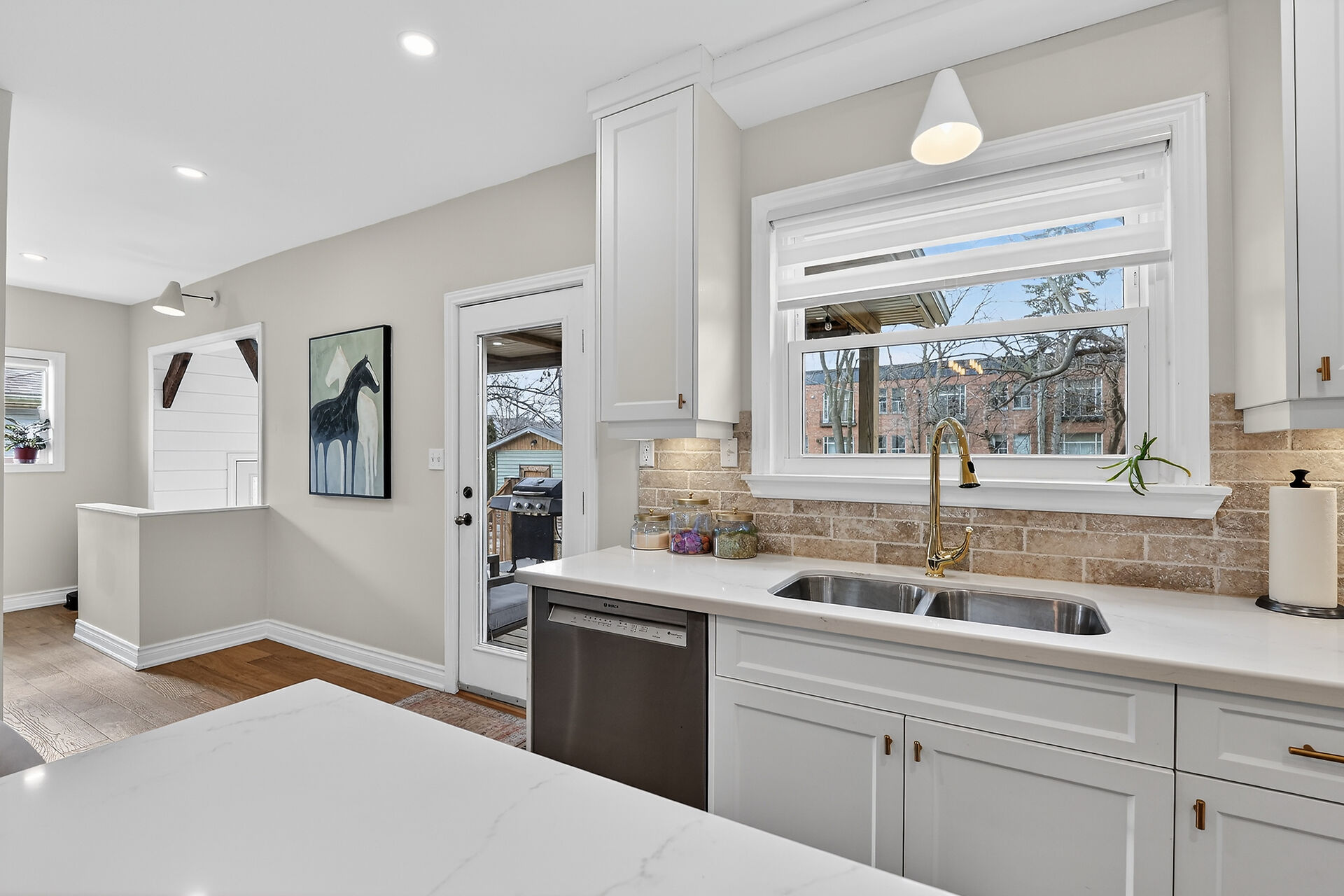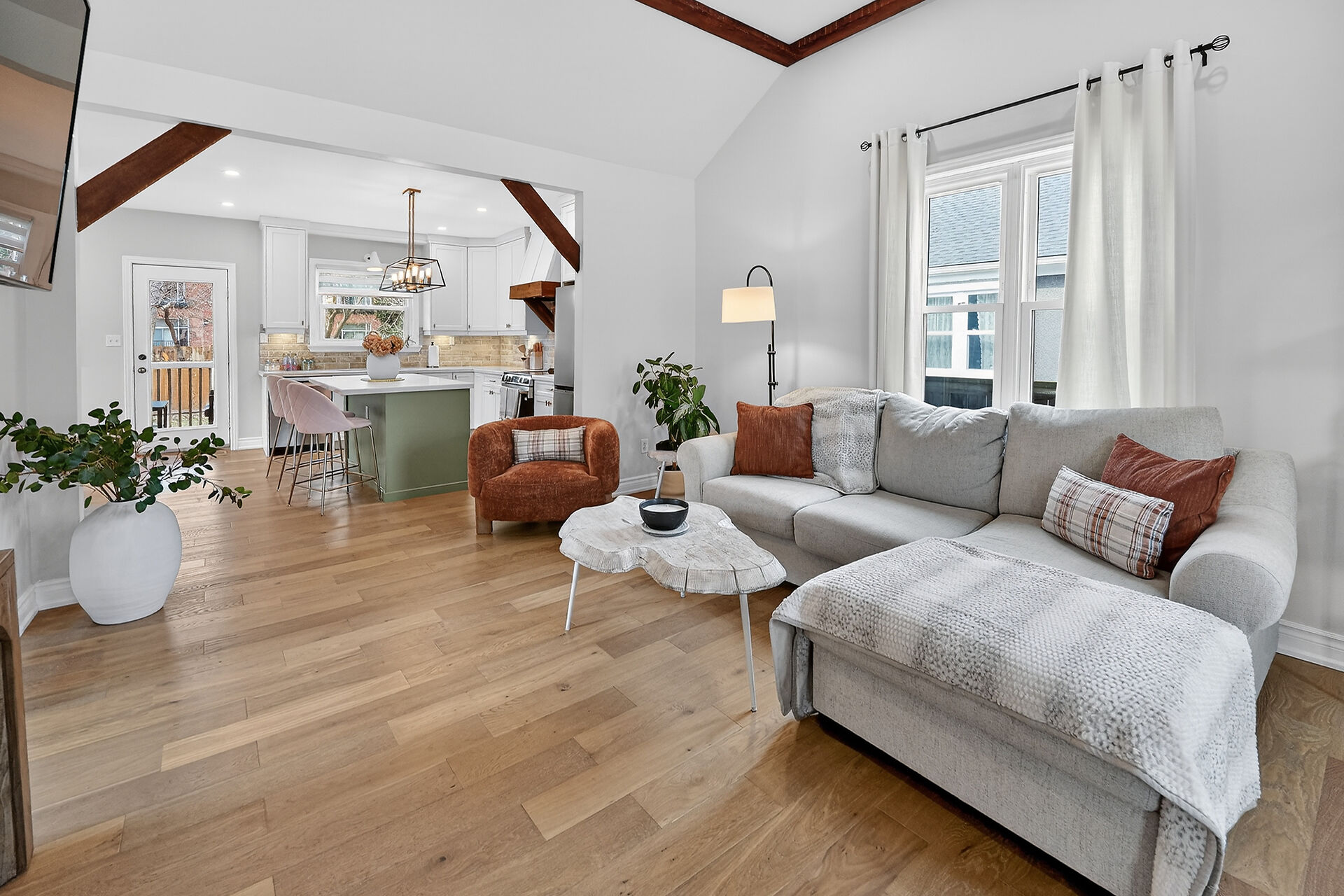 23 Rodman Street – Fully renovated top to bottom with closed permits available. Great curb appeal with concrete sidewalk, side-by-side parking plus street parking, and a newly fenced yard with space to build a garage. Stunning great room with vaulted ceilings and timber barn beams. Trendy kitchen with island, coffee bar, stainless steel appliances (dishwasher 2025), and walkout to covered patio. Primary with ensuite privilege and custom closet. Partially finished basement with rec room and 2-pc. Roof 2023, A/C 2025. Walk to Terry Fox Path, Park, Picque Nique cafe Tangerine Tortoise