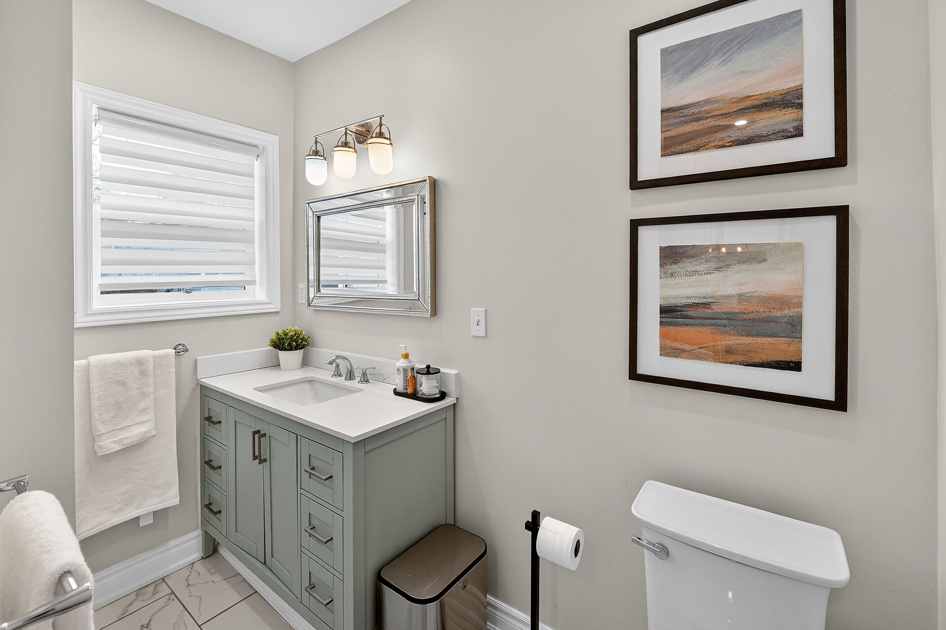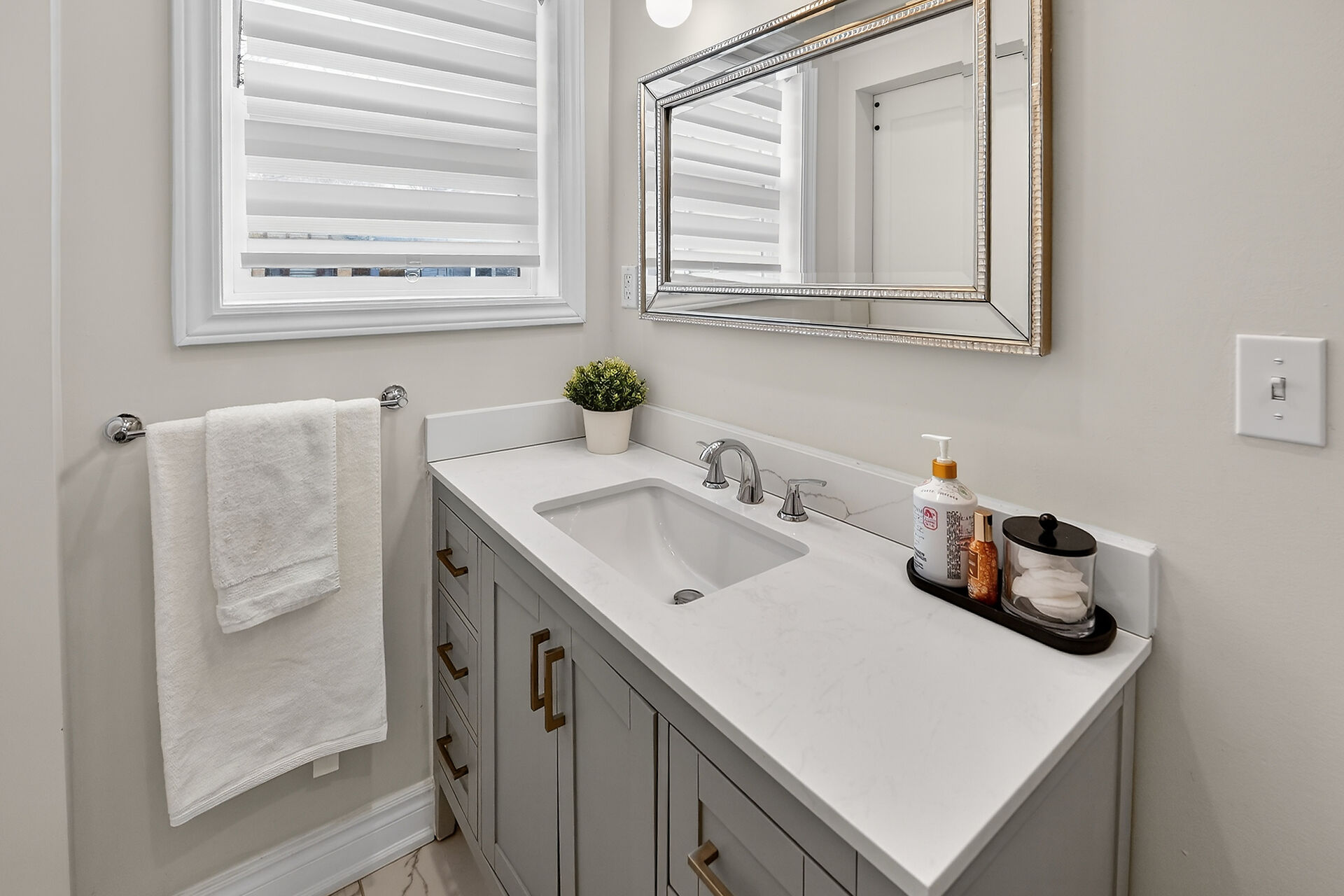 • Quartz contertop/ undermount light
