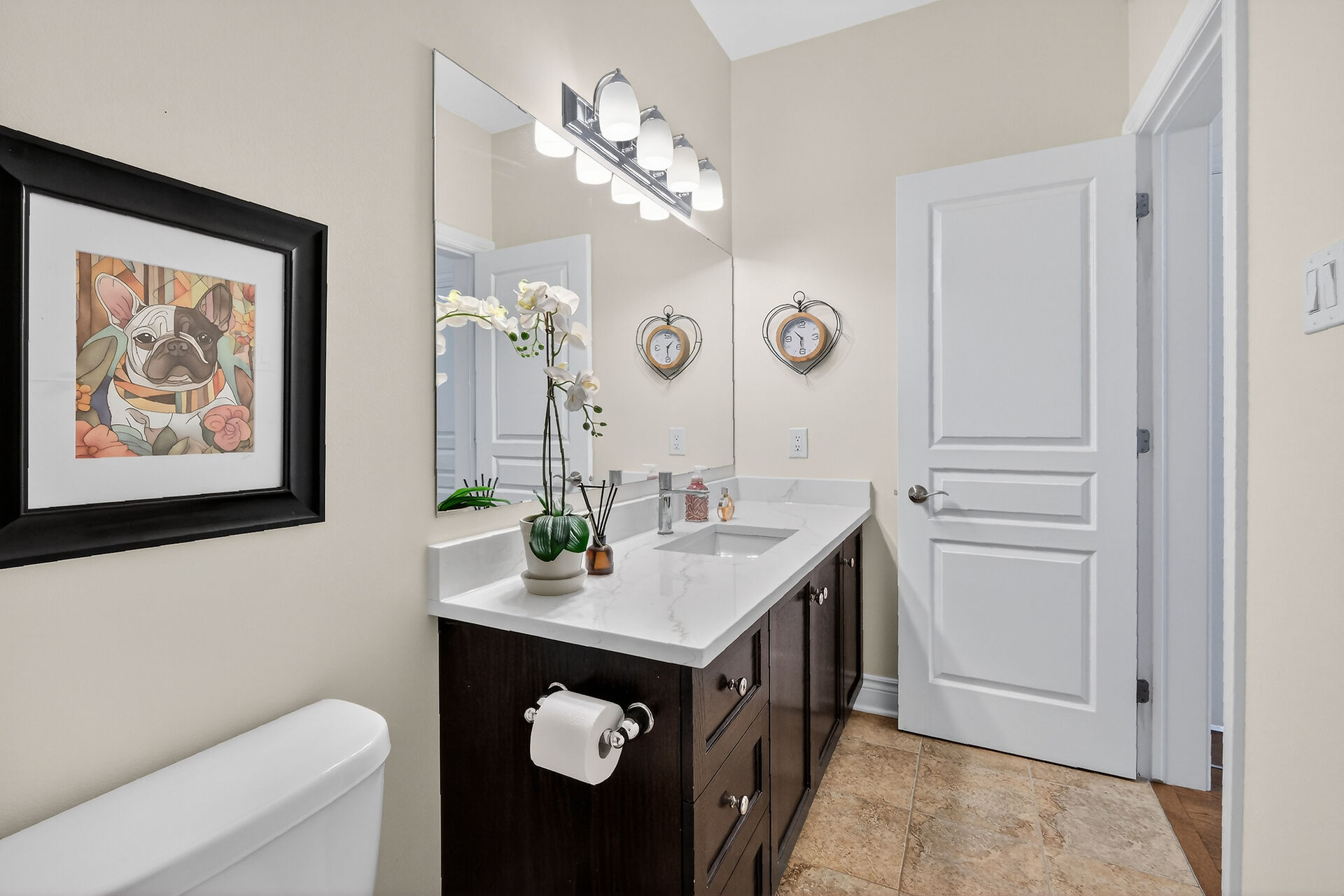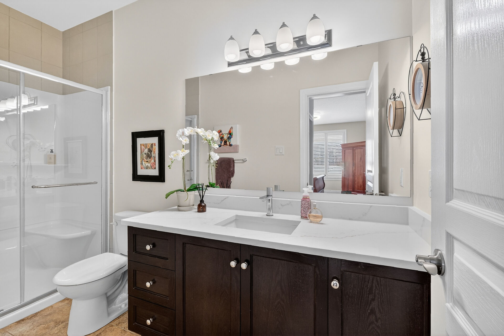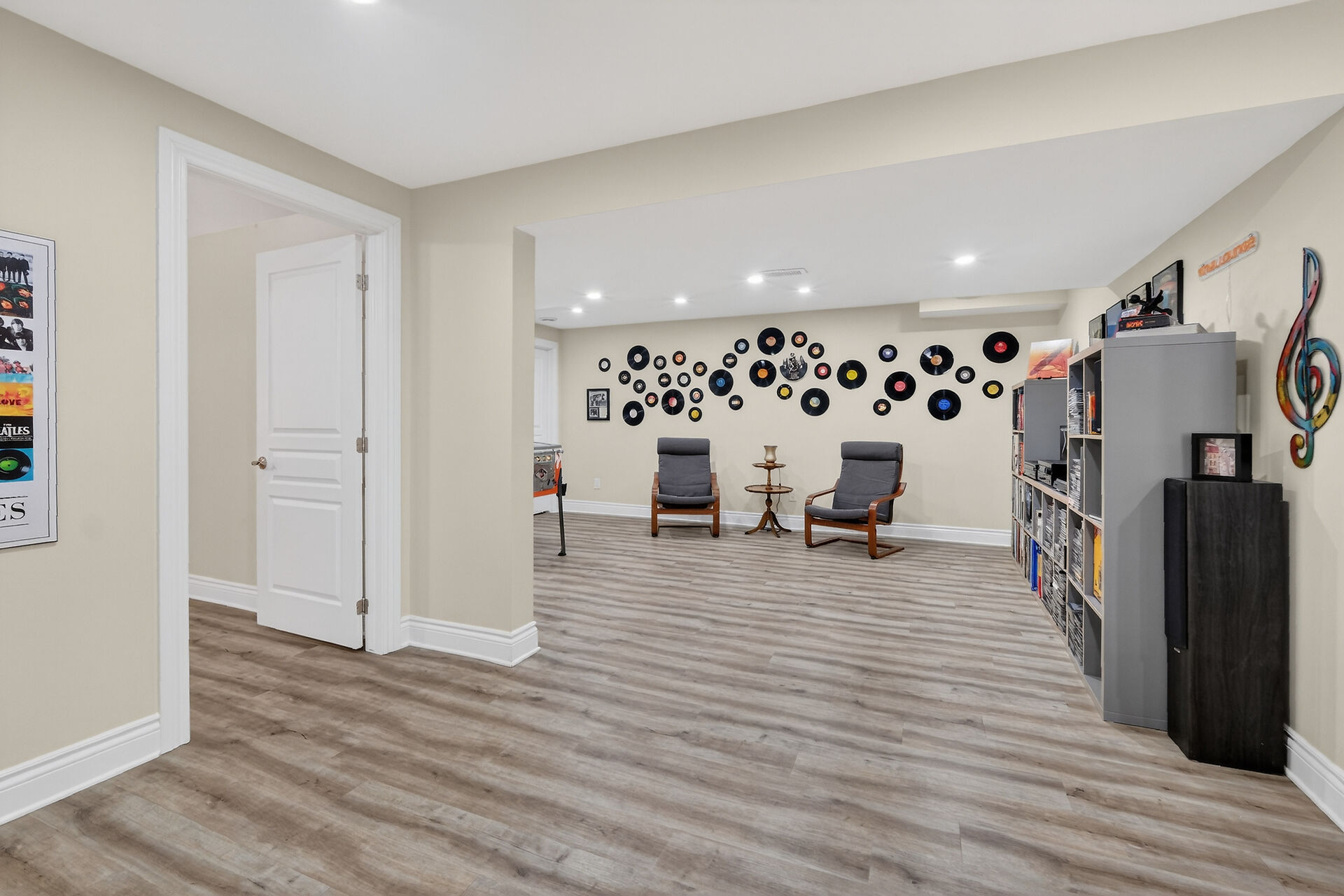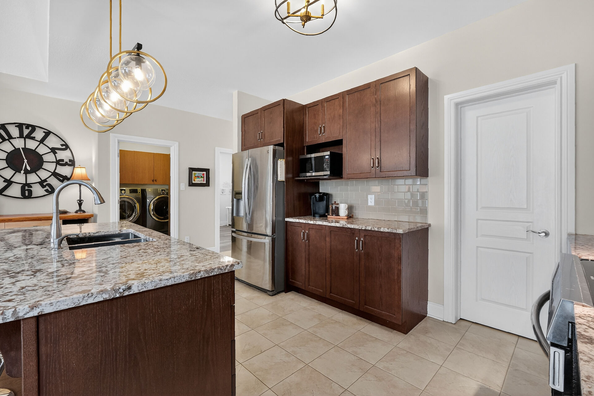 This inviting bungalow blends comfort and style in all the right ways. Rich hardwood flooring and a vaulted ceiling set the tone as you step into the open-concept living and dining area, anchored by a natural gas fireplace. The kitchen is ready for gatherings with stainless steel appliances, a breakfast bar, stone countertops, and a large pantry. A main-floor den offers a quiet retreat, while the primary bedroom features a walk-in closet and a private three-piece bathroom. A secondary bedroom and main-floor laundry complete the level. Downstairs, a generous recreation room with luxury vinyl flooring. Guests will appreciate the additional bedroom and full 3piece bathroom. Fenced yard with an interlocking stone patio.