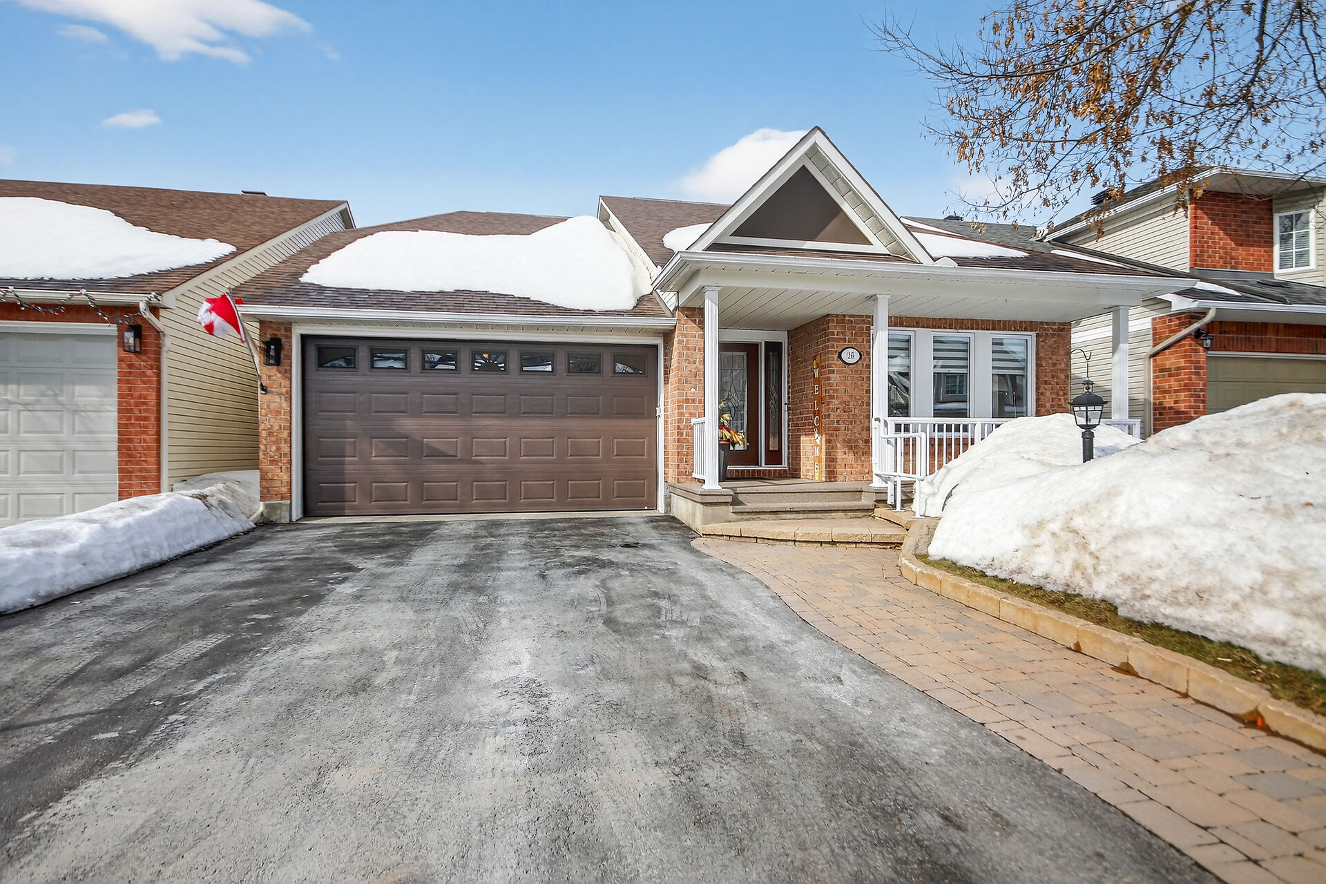 Welcome to this outstanding bungalow on one of Barrhaven's most desirable streets. The Minto-built Rivington model offers 1,531 sq. ft. on main level plus a fully finished basement, providing excellent space for everyday living & entertaining. The open-concept main floor features a renovated kitchen, bright eating area, spacious great room w/gas fireplace, & formal dining room. The main level also includes a primary bedroom with walk-in closet & ensuite, 2nd bedroom/office, full bathroom, & laundry with garage access. The finished basement offers a large family room, bedroom, full bath, hobby area, & storage. Landscaped yard w/interlock patio, gardens, vinyl fencing, & canopy. Close to transit, shopping & more!