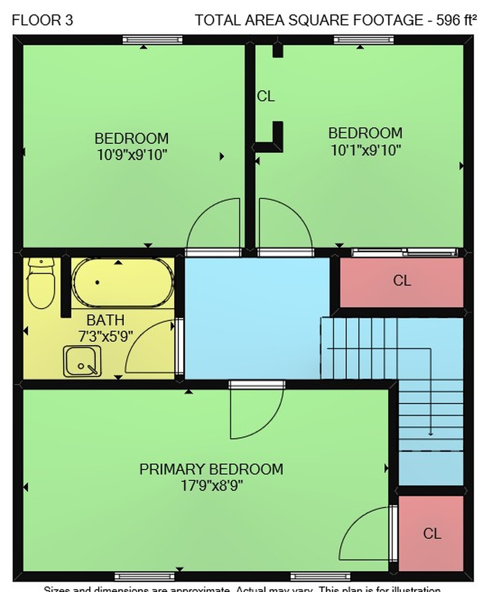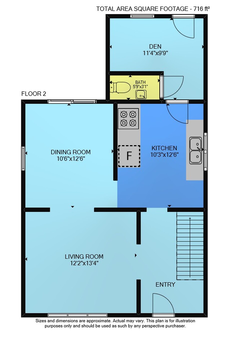 Floor 2: 716 sq ft, Floor 3: 596 sq ft,