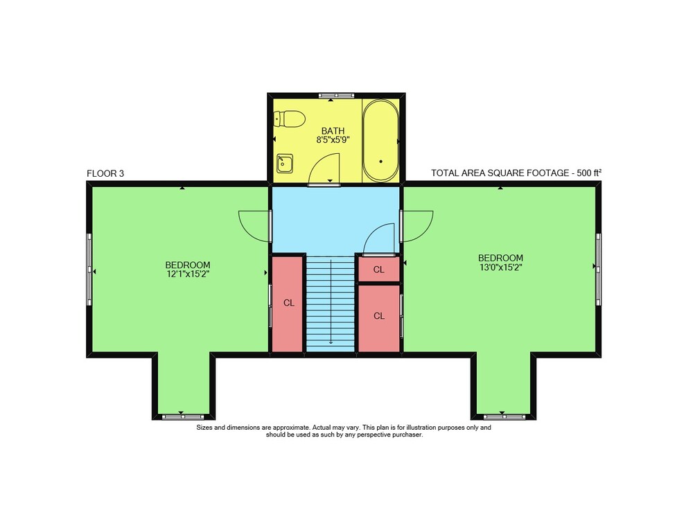 Floor 2: 865 sq ft, Floor 3: 500 sq ft,