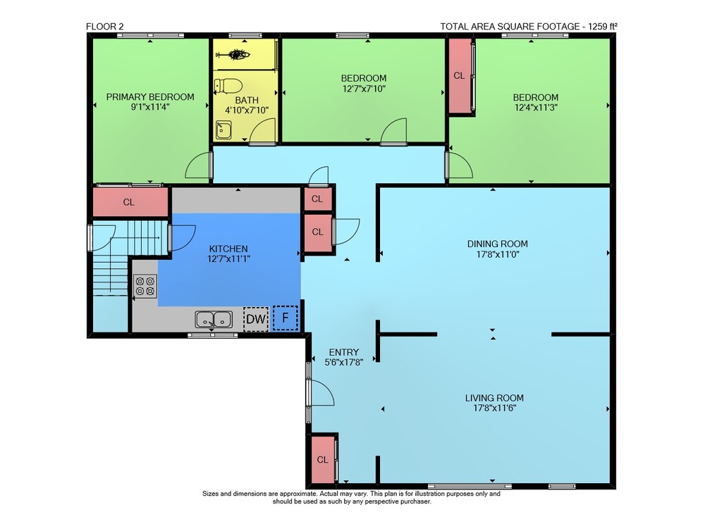 Floor 2: 1259 sq ft,