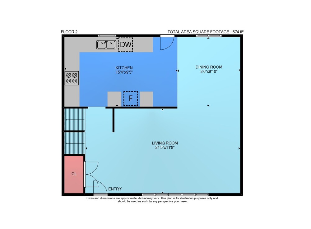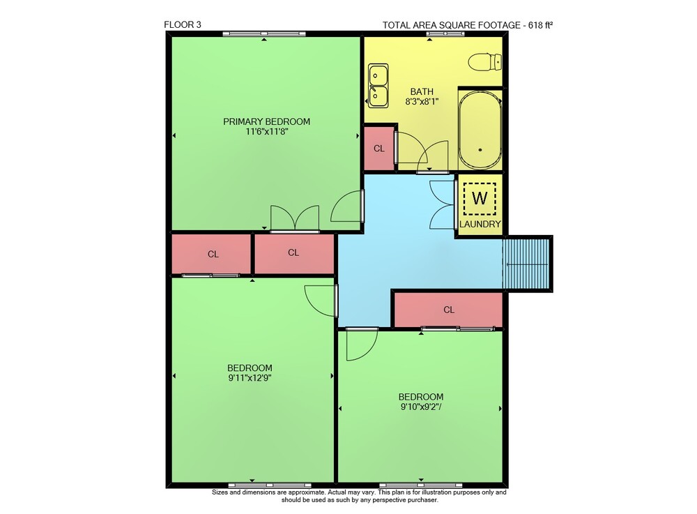 Floor 2: 574 sq ft, Floor 3: 618 sq ft,