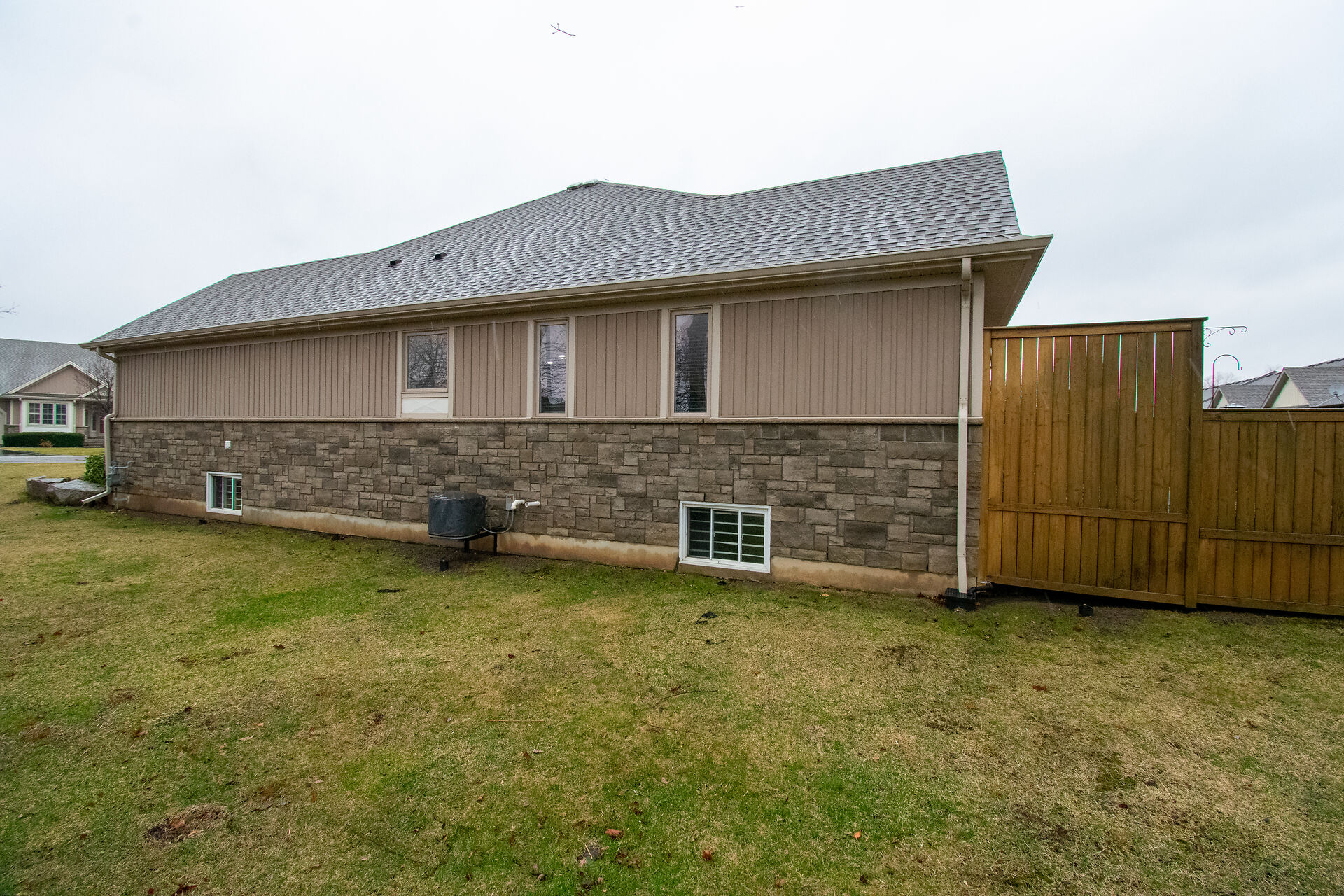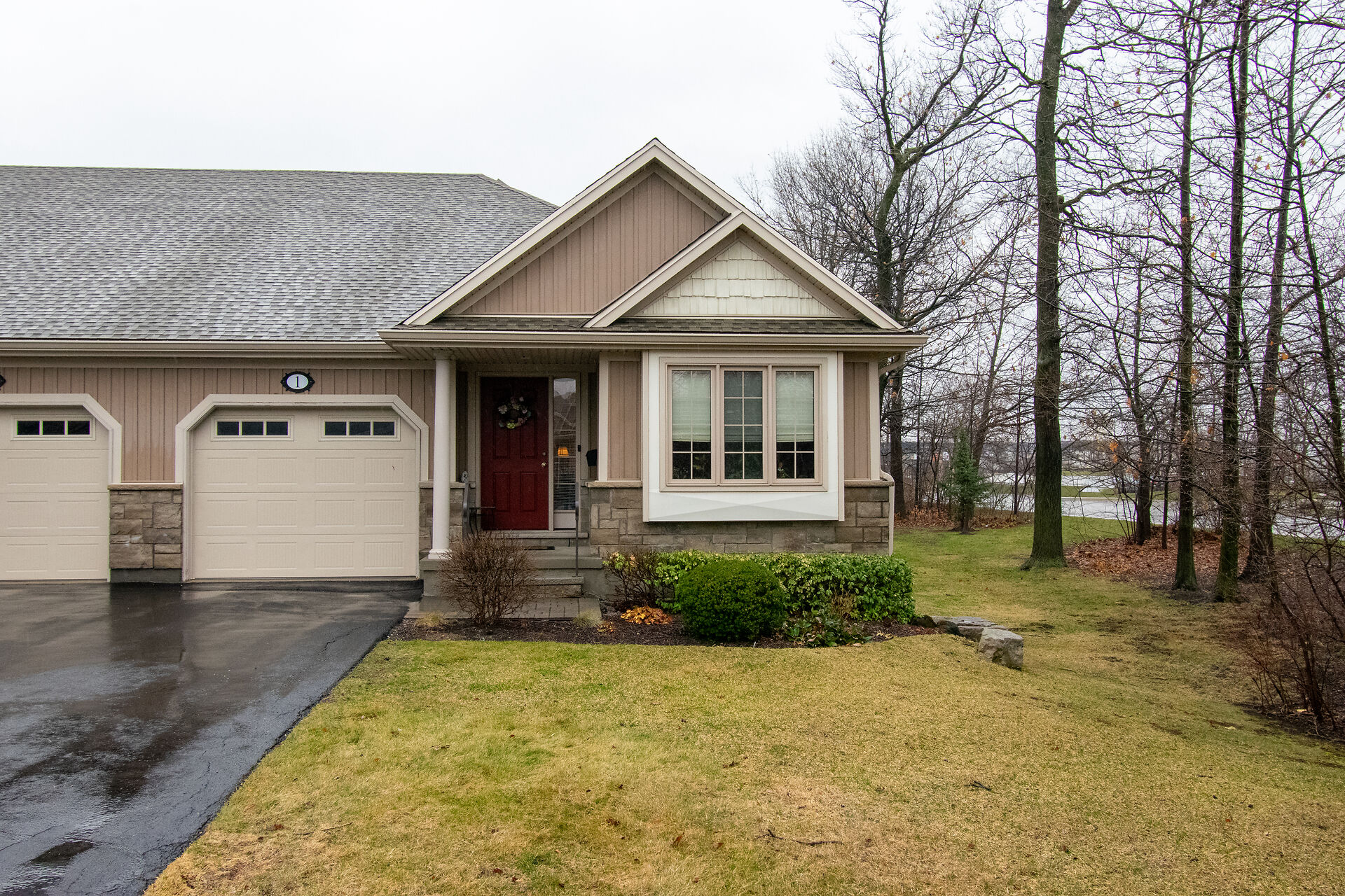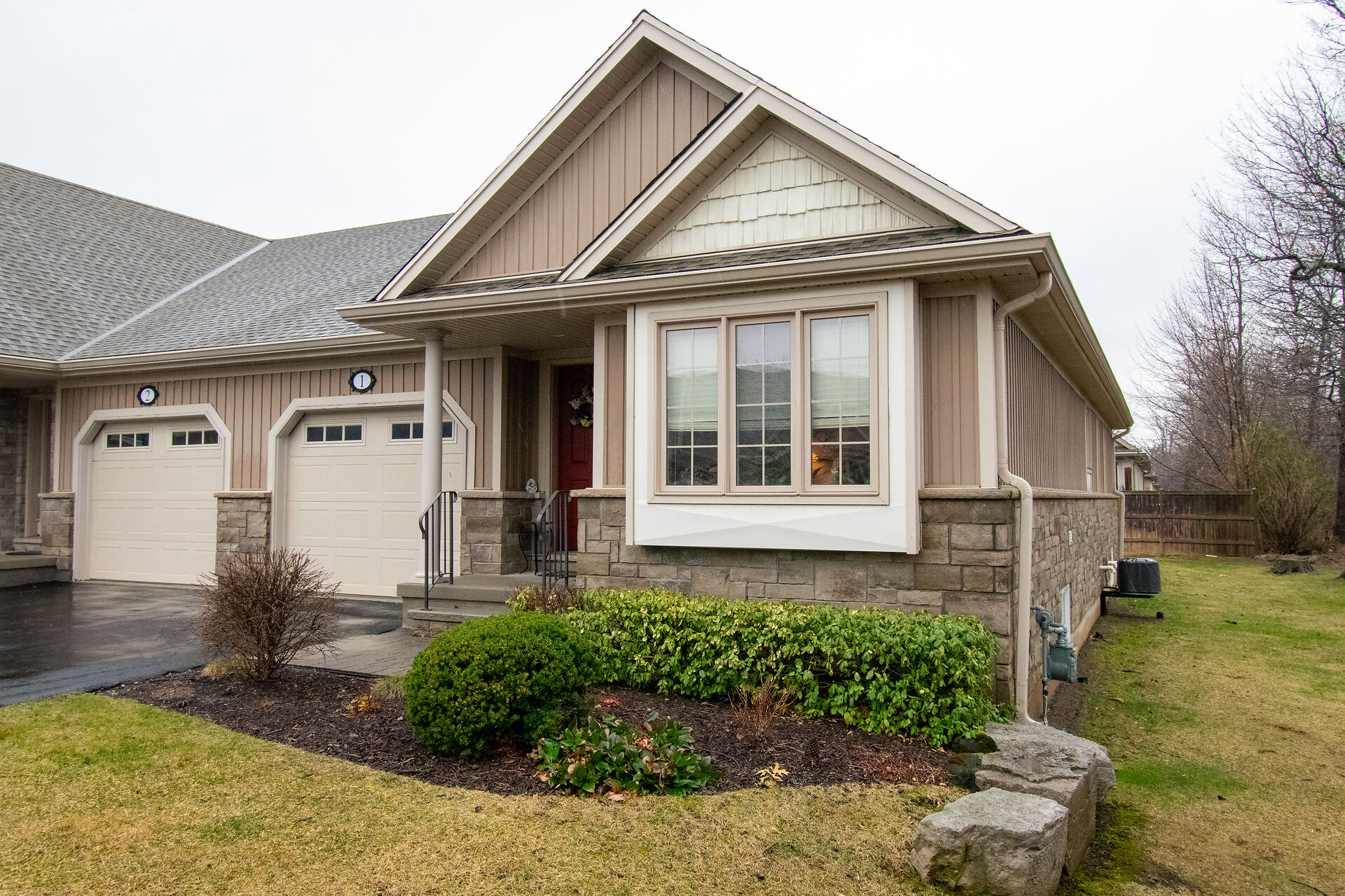 "WELL CARED FOR END UNIT VACANT LAND CONDO TOWNHOME IN QUIET BROCKWOOD TERRACE 16 UNIT COMPLEX. THIS WELL CARED FOR 2 BEDROOM AND 2 BATH END UNIT VACANT LAND CONDO TOWNHOME WITH SINGLE ATTACHED GARAGE WITH INSIDE ACCESS IS A GREAT OPPORTUNITY FOR SOMEONE LOOKING TO DOWNSIZE"", As you enter into the large foyer, you are greeted with a spacious area with tray ceiling & tile floors & inside access to the garage. Continue on, you will notice a good sized guest bedroom/ seating area with large closet and off the bedroom you have main floor laundry and separate 4pc main bath. At the end of the foyer, you head into the stunning Open Concept Elmwood Kitchen and Great Room area with vaulted ceiling & hardwood flooring & gas