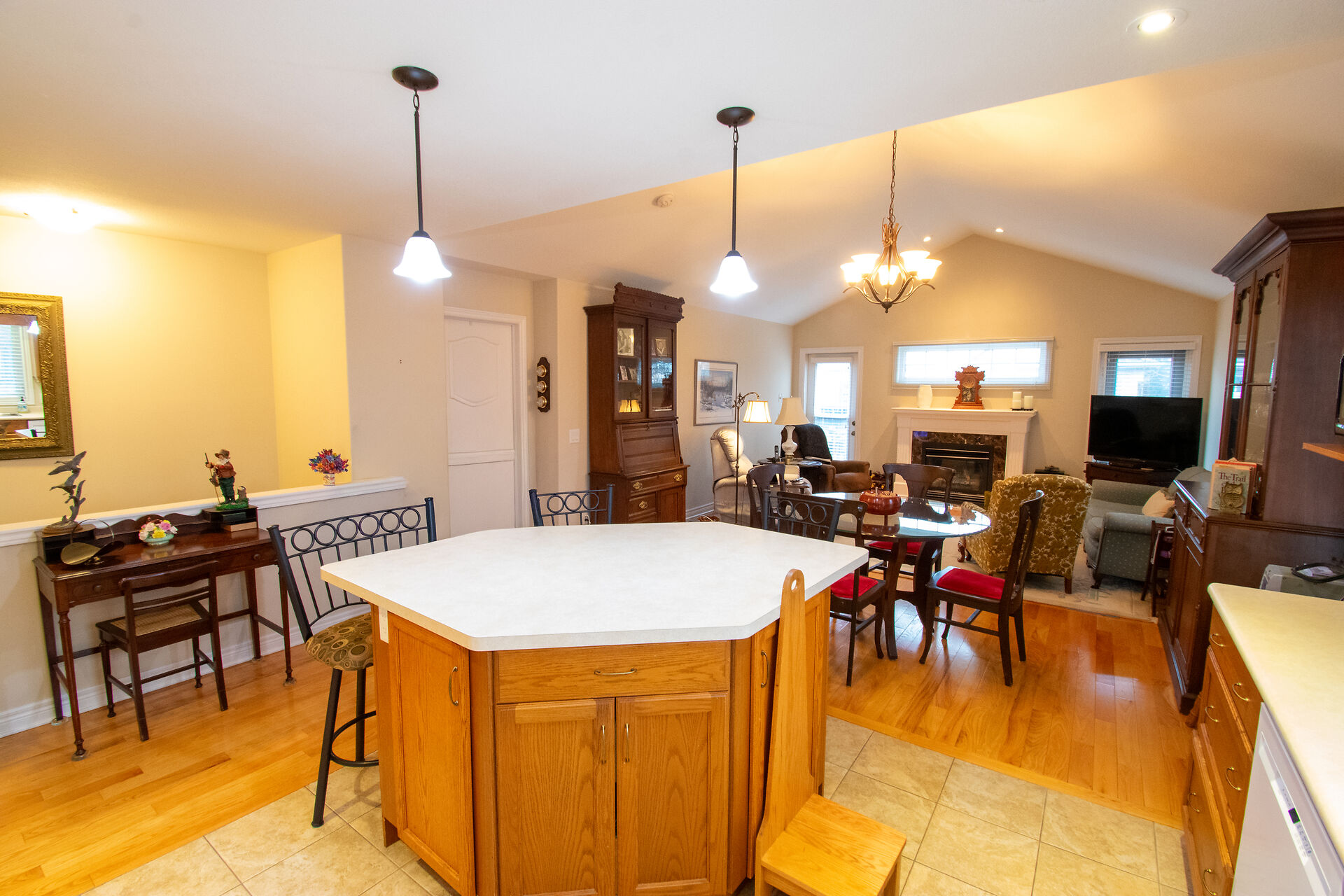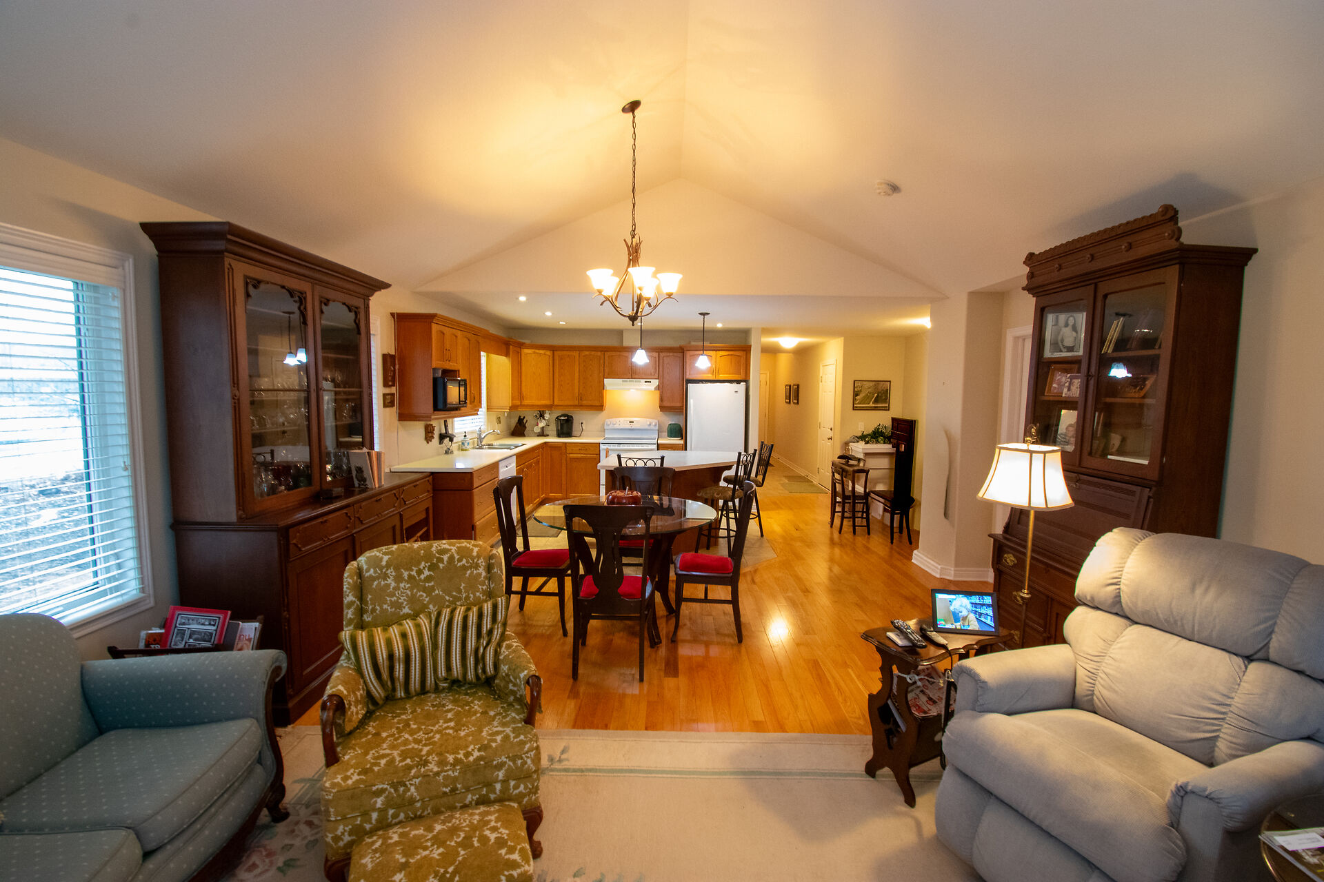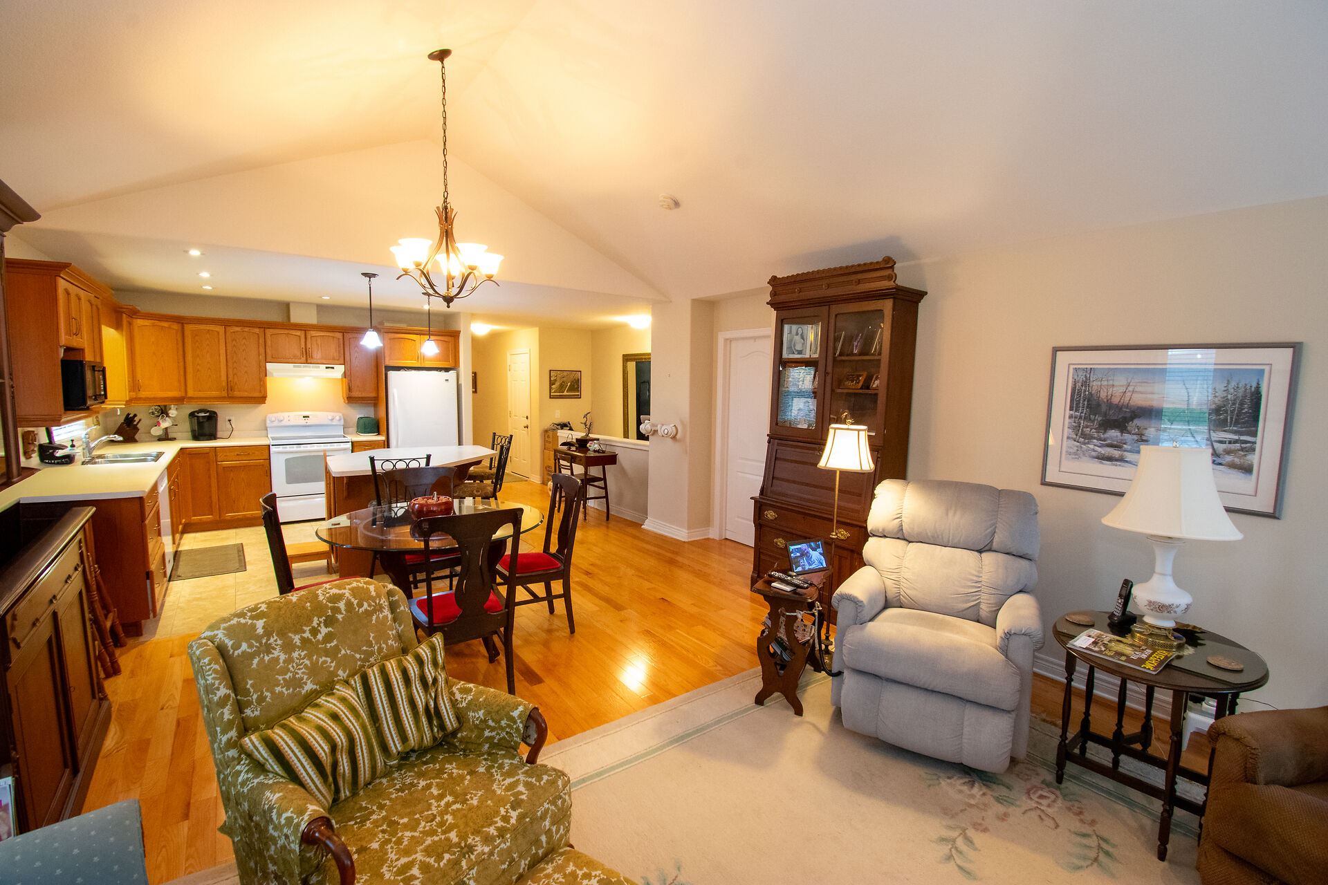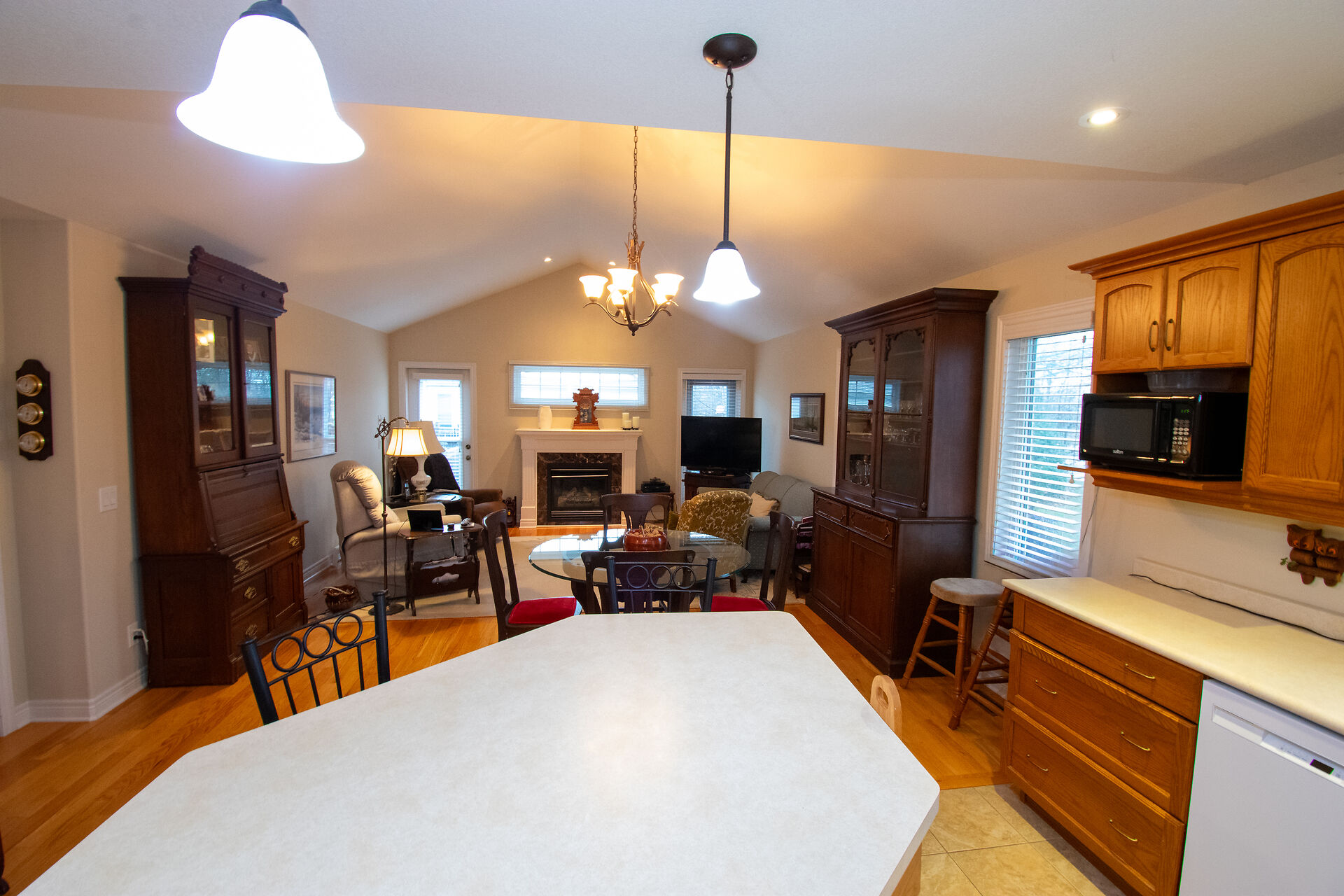 "WELL CARED FOR END UNIT VACANT LAND CONDO TOWNHOME IN QUIET BROCKWOOD TERRACE 16 UNIT COMPLEX. THIS WELL CARED FOR 2 BEDROOM AND 2 BATH END UNIT VACANT LAND CONDO TOWNHOME WITH SINGLE ATTACHED GARAGE WITH INSIDE ACCESS IS A GREAT OPPORTUNITY FOR SOMEONE LOOKING TO DOWNSIZE"", As you enter into the large foyer, you are greeted with a spacious area with tray ceiling & tile floors & inside access to the garage. Continue on, you will notice a good sized guest bedroom/ seating area with large closet and off the bedroom you have main floor laundry and separate 4pc main bath. At the end of the foyer, you head into the stunning Open Concept Elmwood Kitchen and Great Room area with vaulted ceiling & hardwood flooring & gas