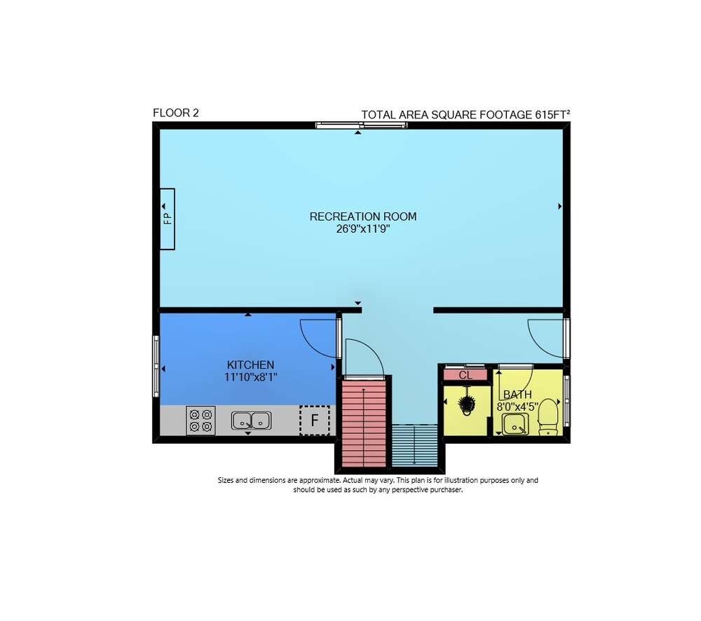 Floor 2: 615 sq ft,